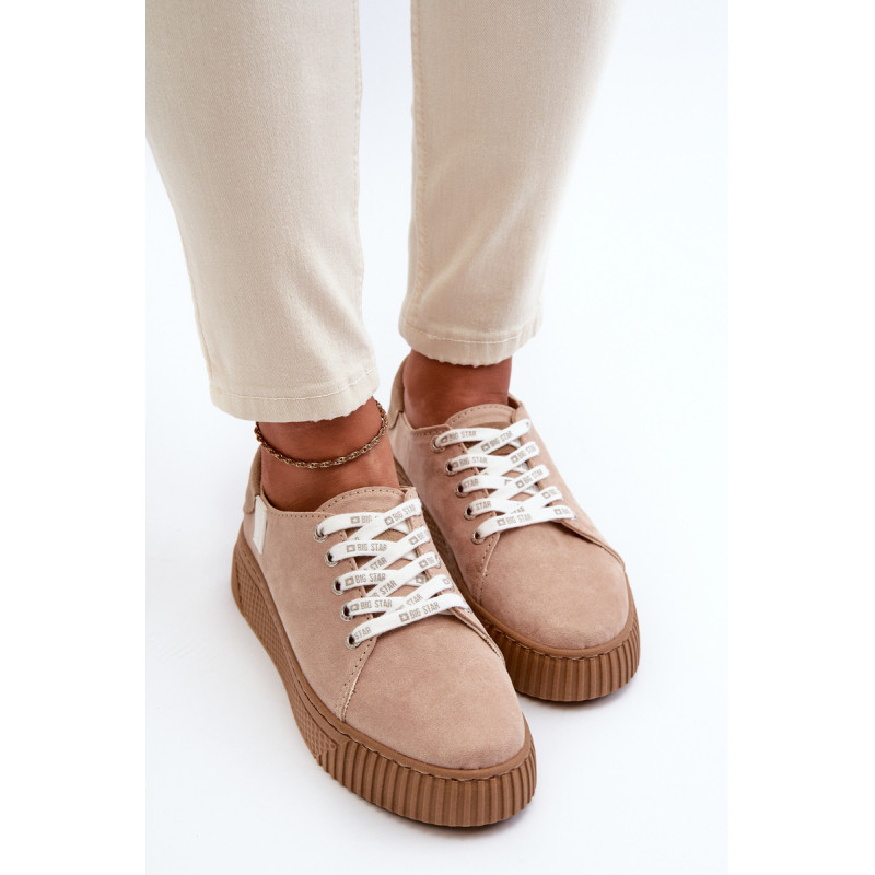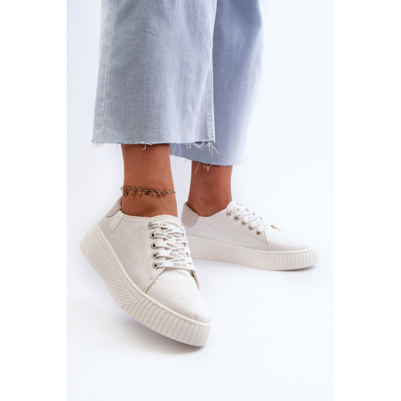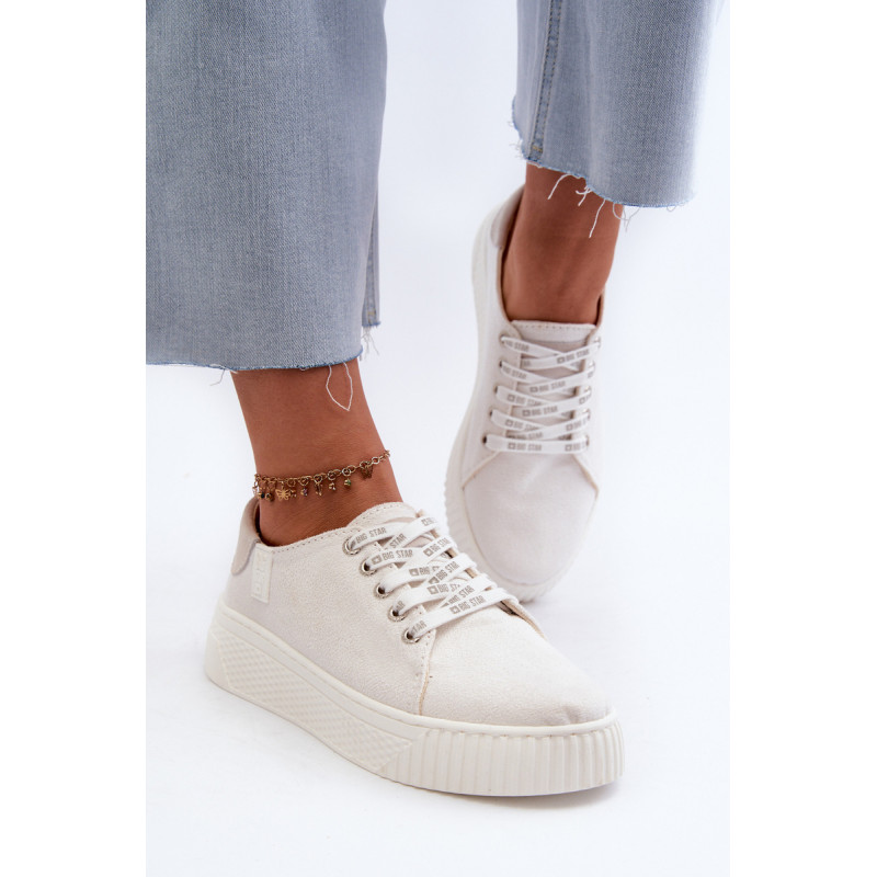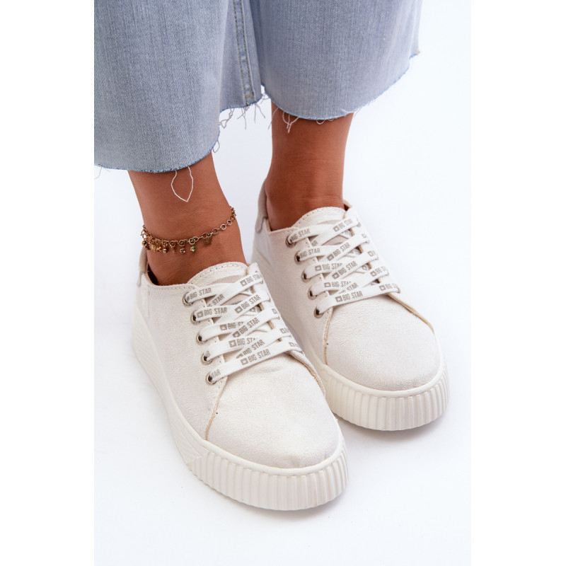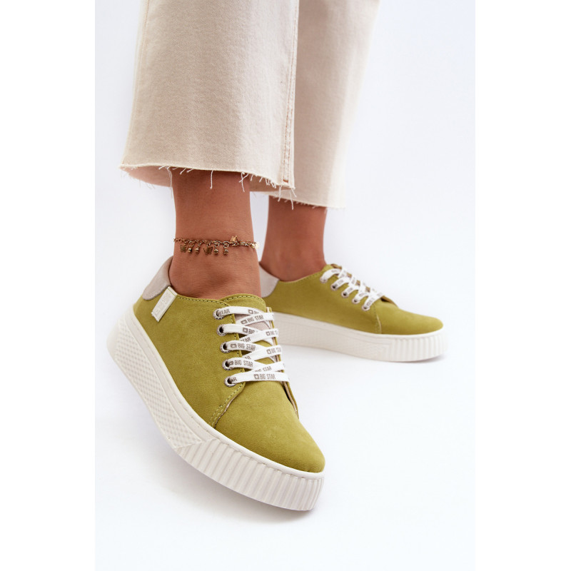 Big Star prekės ženklo moteriški sportbačiai, pagaminti iš ekologiškos odos. Pastatykite ant storos platformos, pagamintos iš guminės medžiagos. Apvalūs kojų pirštai. Šis modelis turi unikalų MEMORY FOAM SYSTEM vidpadį, kuris prisimena pėdos formą, puikiai priglunda, sugeria smūgius, yra atsparus deformacijai. Be to, putplasčio struktūra leidžia išgaruoti drėgmę ir reguliuoti temperatūrą. Šis itin stilingas dizainas privalo būti jūsų pavasario-vasaros garderobo dalimi! Rinkdamiesi dydį, vadovaukitės dydžių lentele.