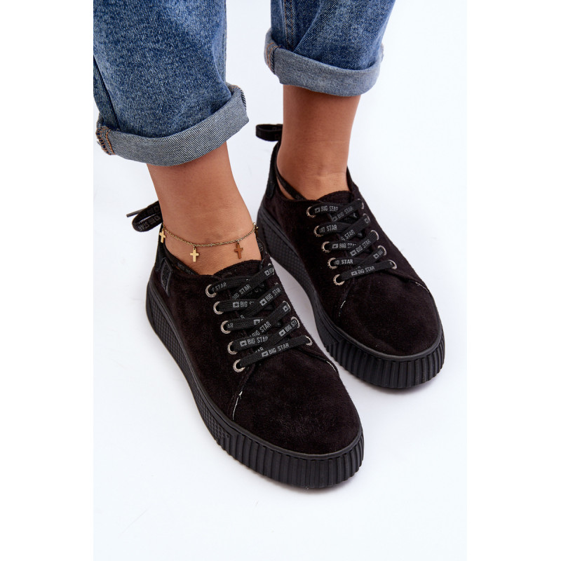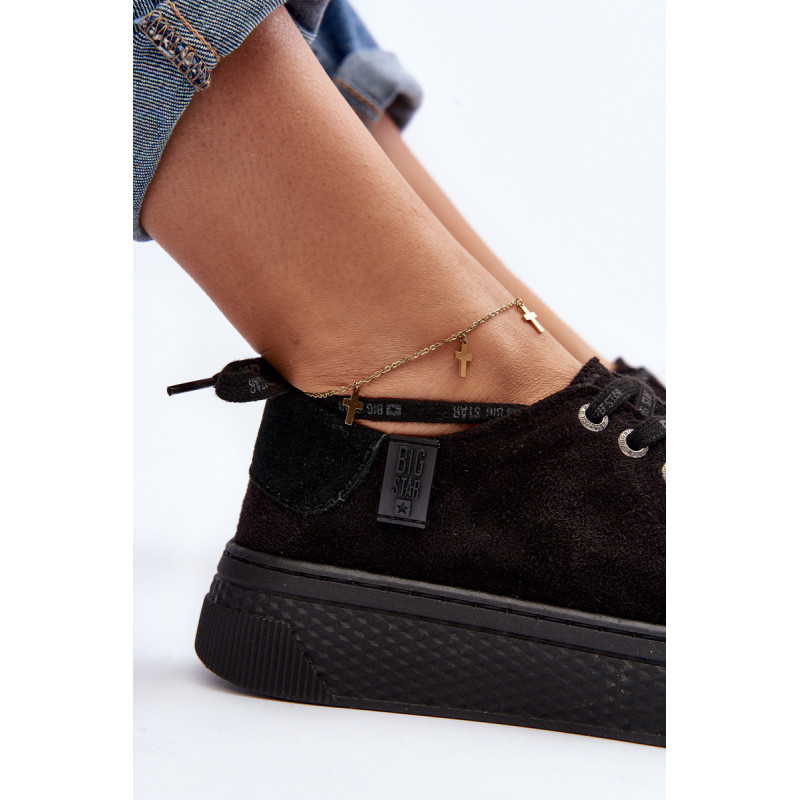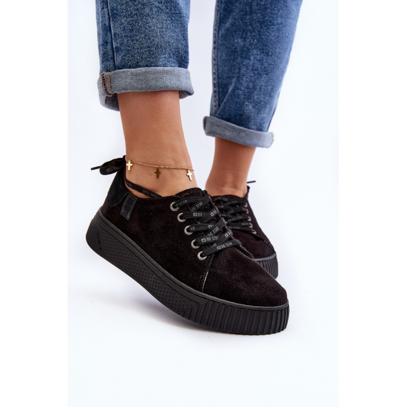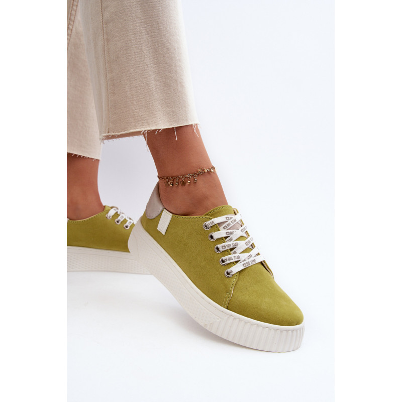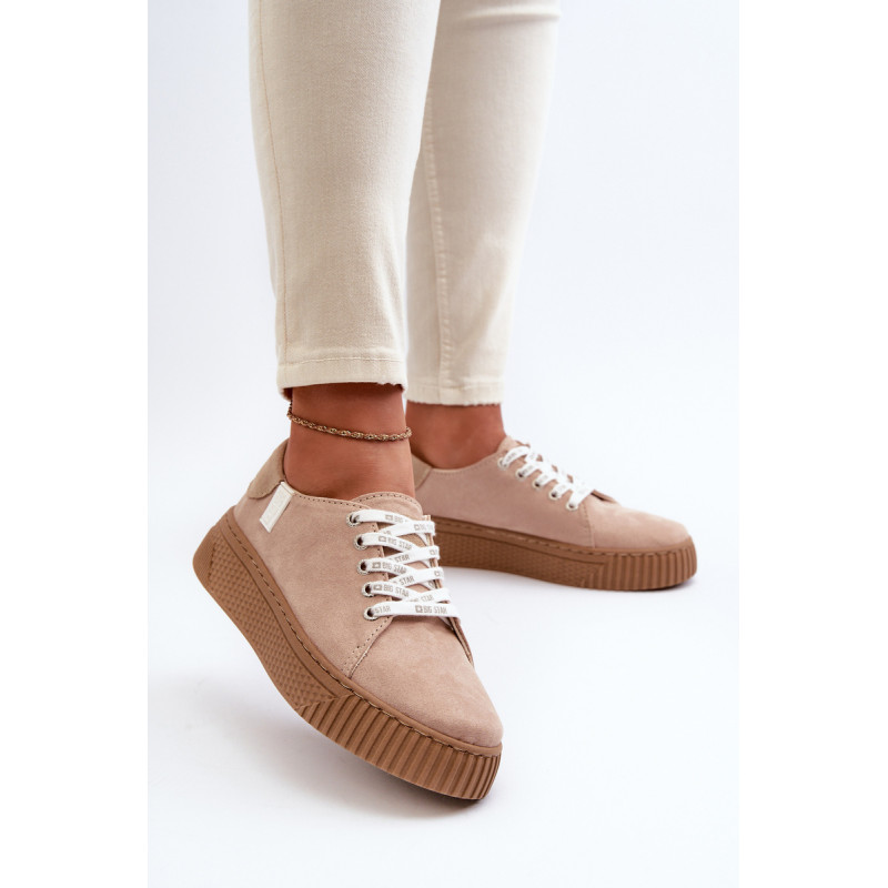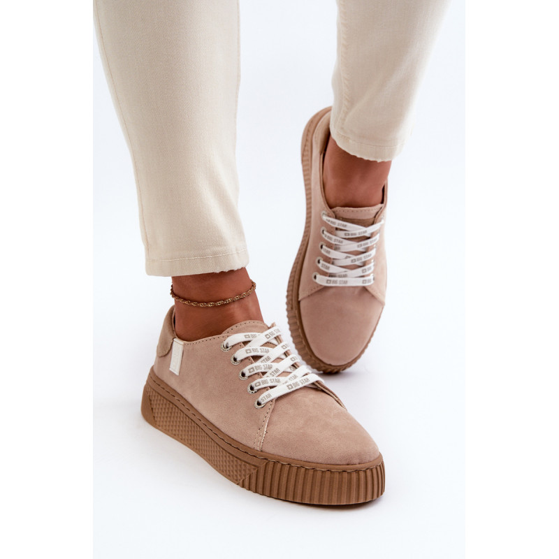 Big Star prekės ženklo moteriški sportbačiai, pagaminti iš ekologiškos odos. Pastatykite ant storos platformos, pagamintos iš guminės medžiagos. Apvalūs kojų pirštai. Šis modelis turi unikalų MEMORY FOAM SYSTEM vidpadį, kuris prisimena pėdos formą, puikiai priglunda, sugeria smūgius, yra atsparus deformacijai. Be to, putplasčio struktūra leidžia išgaruoti drėgmę ir reguliuoti temperatūrą. Šis itin stilingas dizainas privalo būti jūsų pavasario-vasaros garderobo dalimi! Rinkdamiesi dydį, vadovaukitės dydžių lentele.