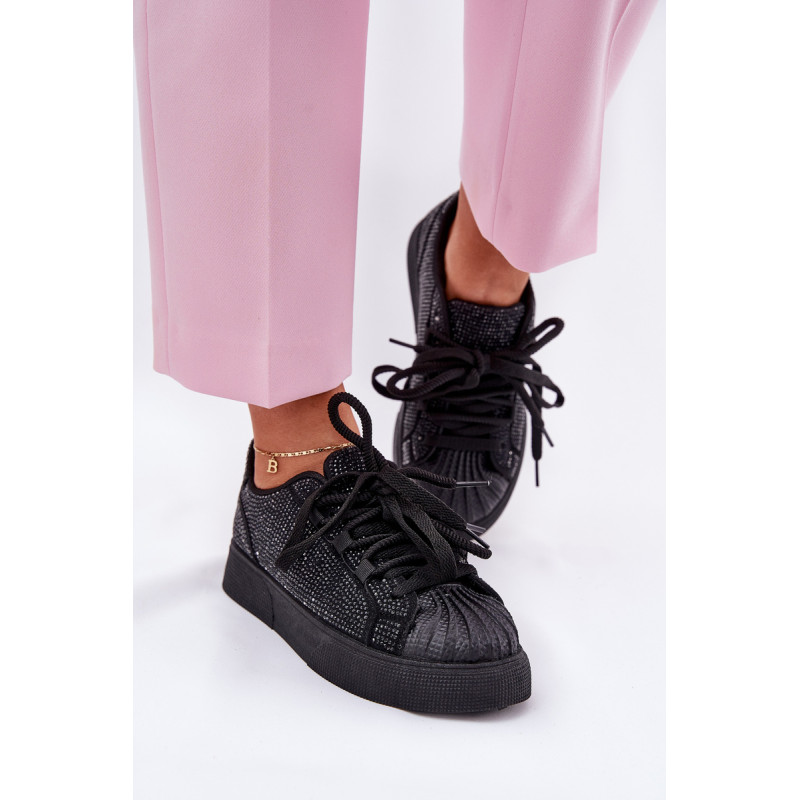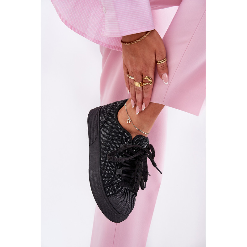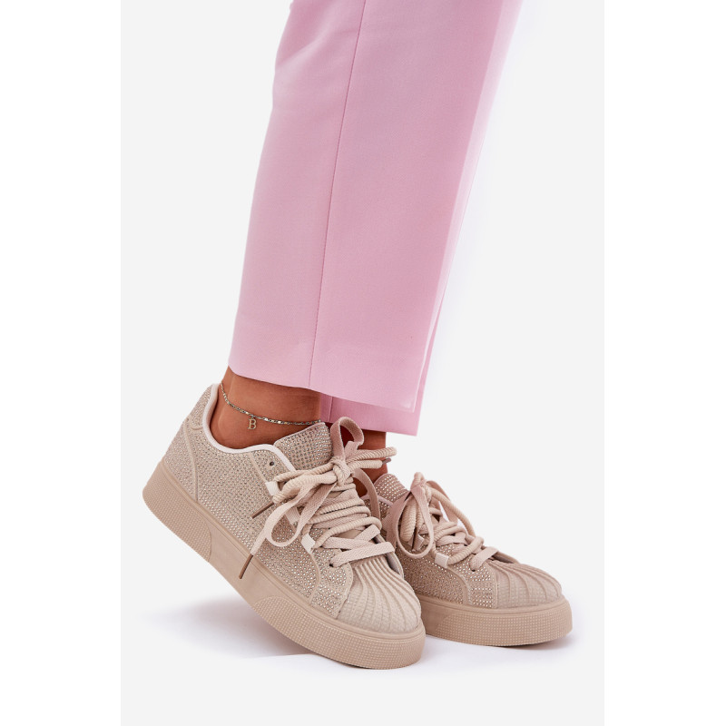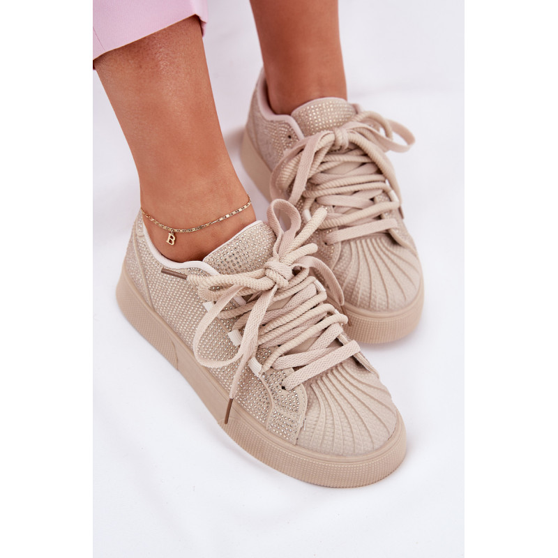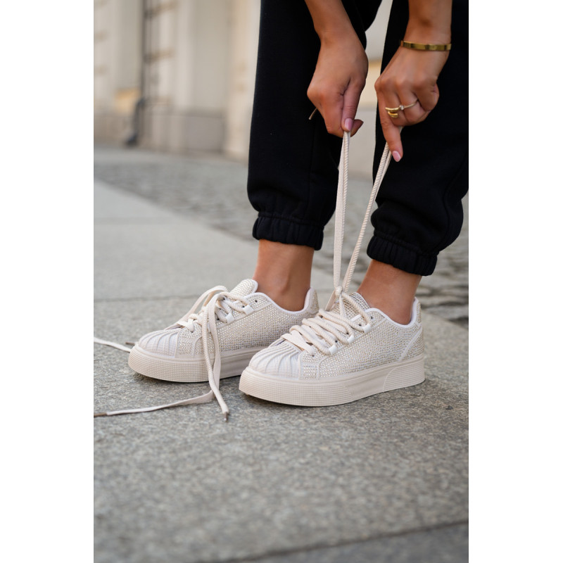 Moteriški platforminiai sportbačiai yra puikus pasirinkimas tiems, kurie ieško madingų, bet kartu ir patogių avalynės. Jie pagaminti iš ekologiško zomšo. Putų padas, padengtas medžiaga, užtikrina komfortą net ir ilgos vaikščiojimo metu. Viršutinė dalis puošia daugybė cirkonijų. Jie turi apvalius pirštus. Tai puikus pasirinkimas kasdieniniams stiliams! Renkantis dydį, vadovaukitės dydžių lentele.