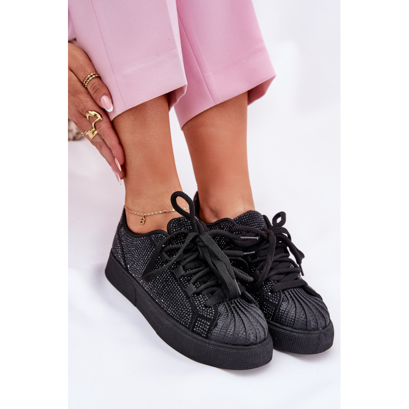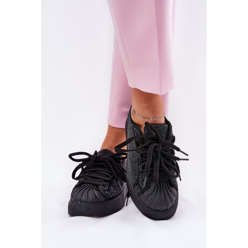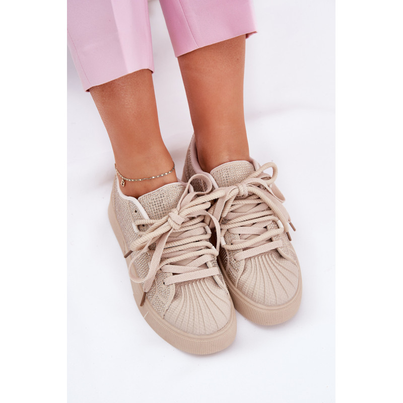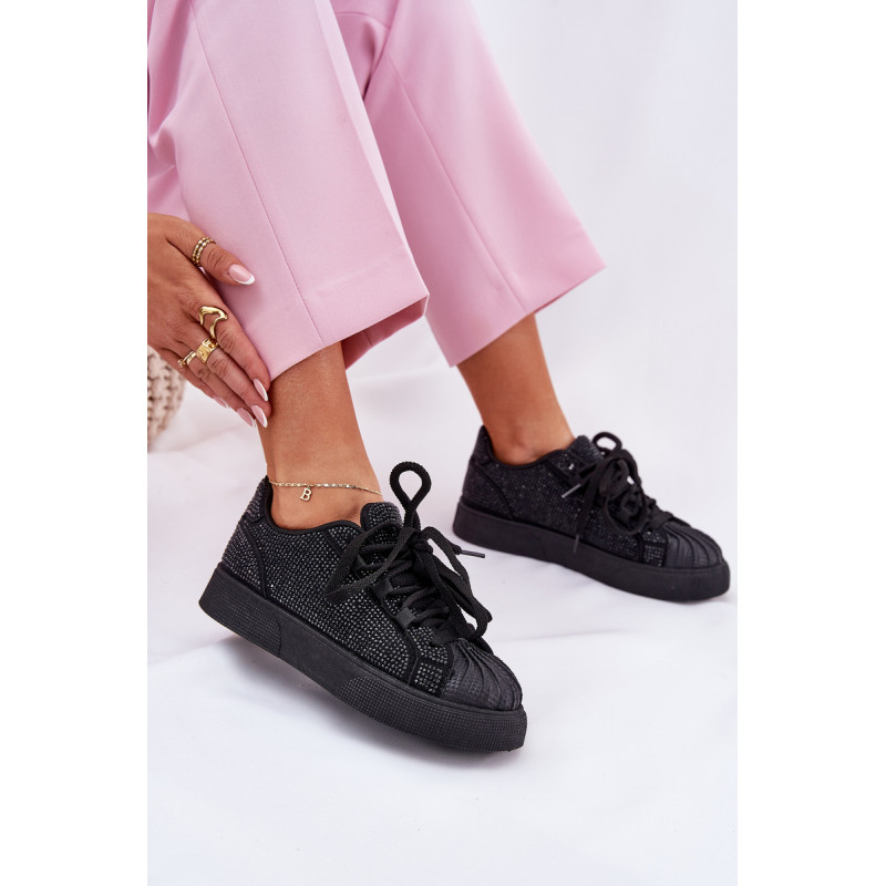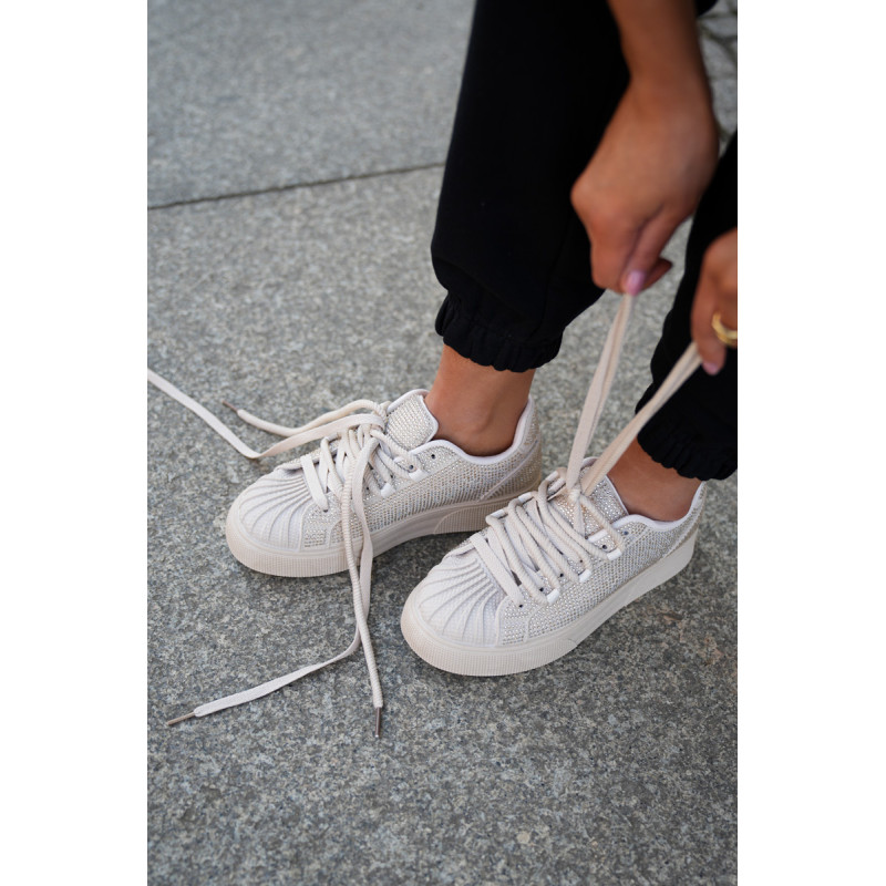 Moteriški platforminiai sportbačiai yra puikus pasirinkimas tiems, kurie ieško madingų, bet kartu ir patogių avalynės. Jie pagaminti iš ekologiško zomšo. Putų padas, padengtas medžiaga, užtikrina komfortą net ir ilgos vaikščiojimo metu. Viršutinė dalis puošia daugybė cirkonijų. Jie turi apvalius pirštus. Tai puikus pasirinkimas kasdieniniams stiliams! Renkantis dydį, vadovaukitės dydžių lentele.
