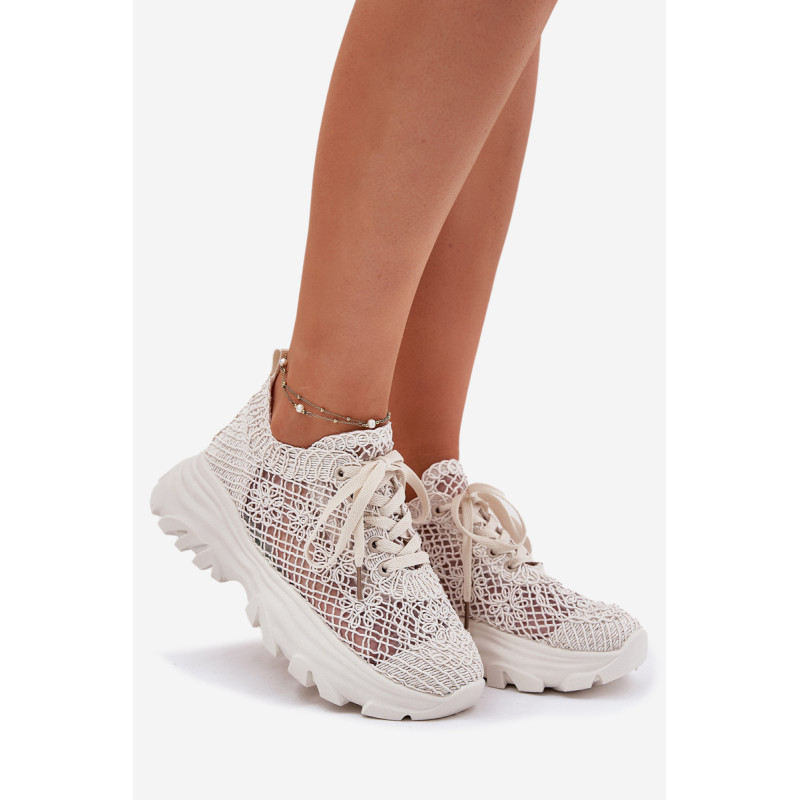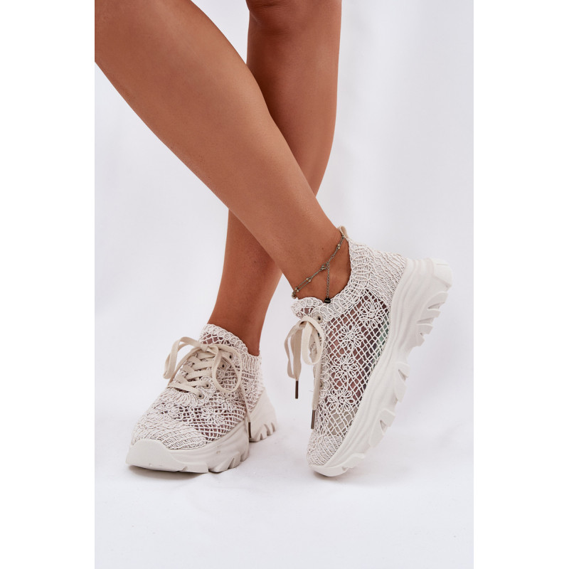 Moteriški sportbačiai su madinga, nėriniuota viršutine dalimi, sujungta su kvėpuojančia tinkleliu, yra pasiūlymas, kuris jungia originalų stilių ir komfortą. Įrengti ant storos padangos, jie puikiai tinka kasdieniam dėvėjimui. Minkšta putų padas užtikrina komfortą net ir ilgai dėvint. Tai batai, kurie puikiai įsilies į kasdienius, vasaros stilius! Renkantis dydį, vadovaukitės dydžių lentele.