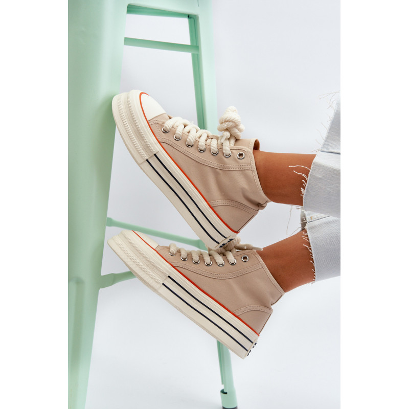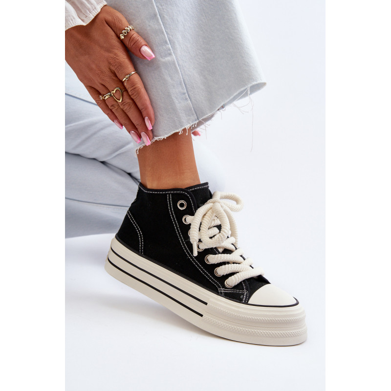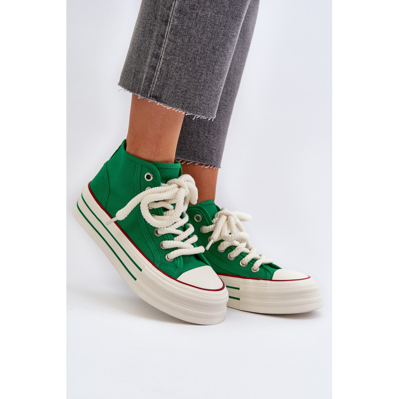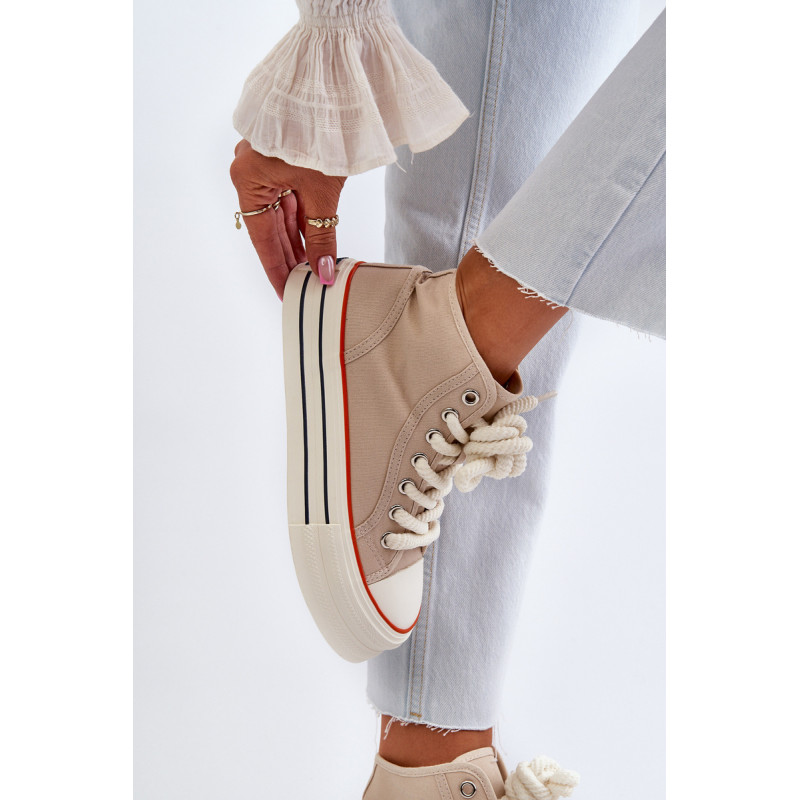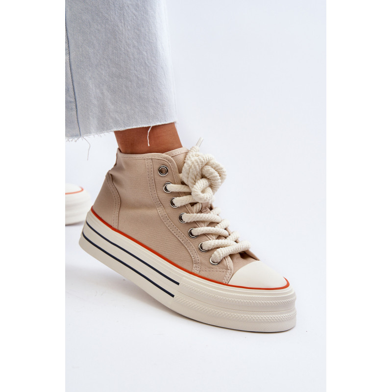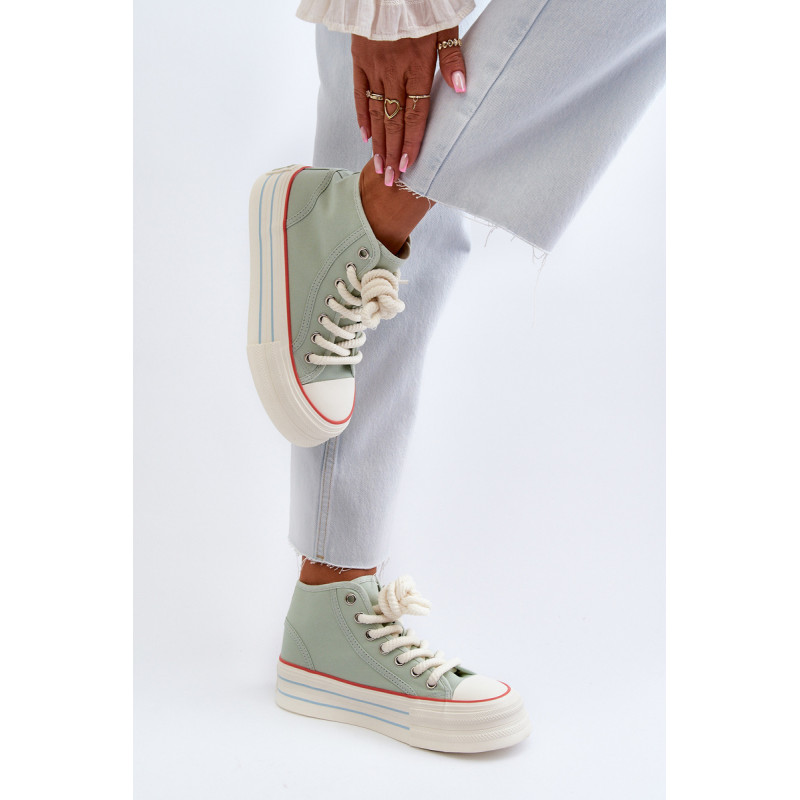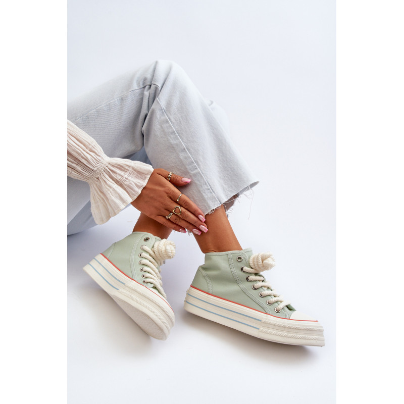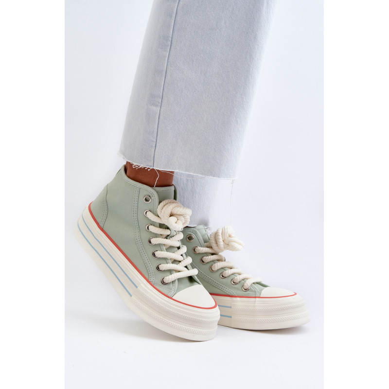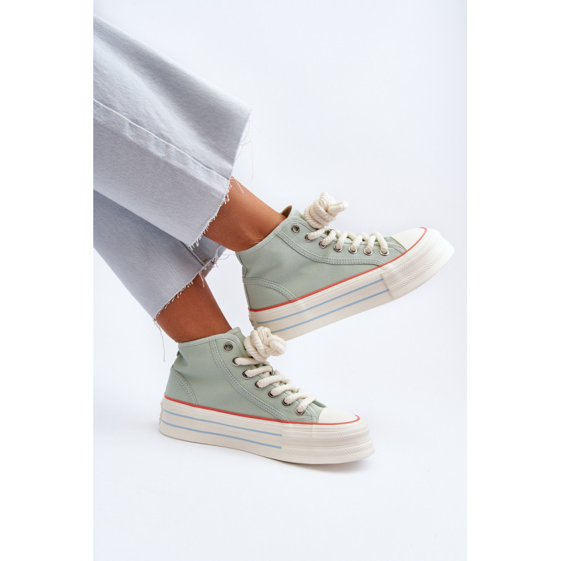Moteriški sportbačiai, pagaminti iš tekstilės. Masyvi guminė platforma suteikia madingą išvaizdą ir užtikrina stabilumą einant. Suapvalinti pirštai ir klasikiniai suvarstyti juos universaliai papildo prie daugelio kasdienių stilių. Nesvarbu, ar einate pasivaikščioti mieste, ar susitikti su draugais, šie sportbačiai bus puikus pasirinkimas. Rinkdamiesi dydį, žiūrėkite dydžių lentelę.