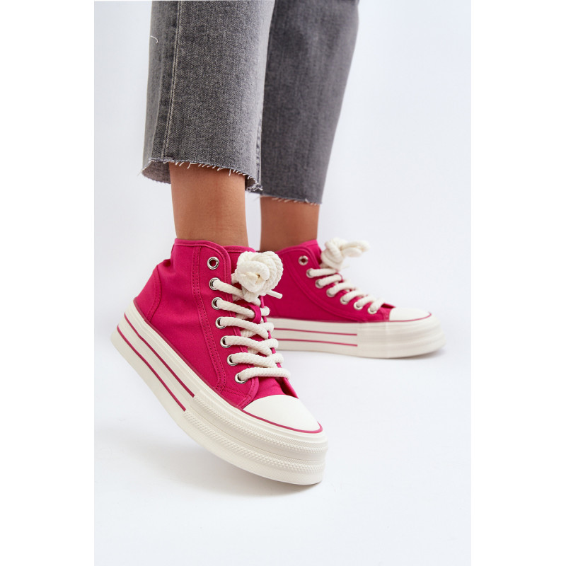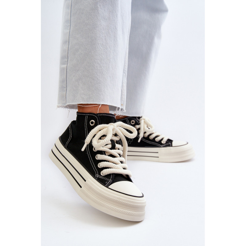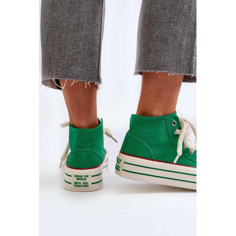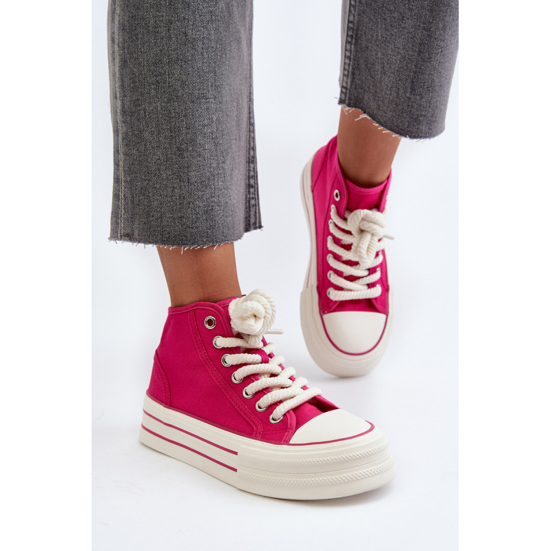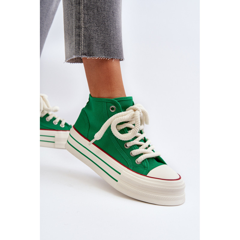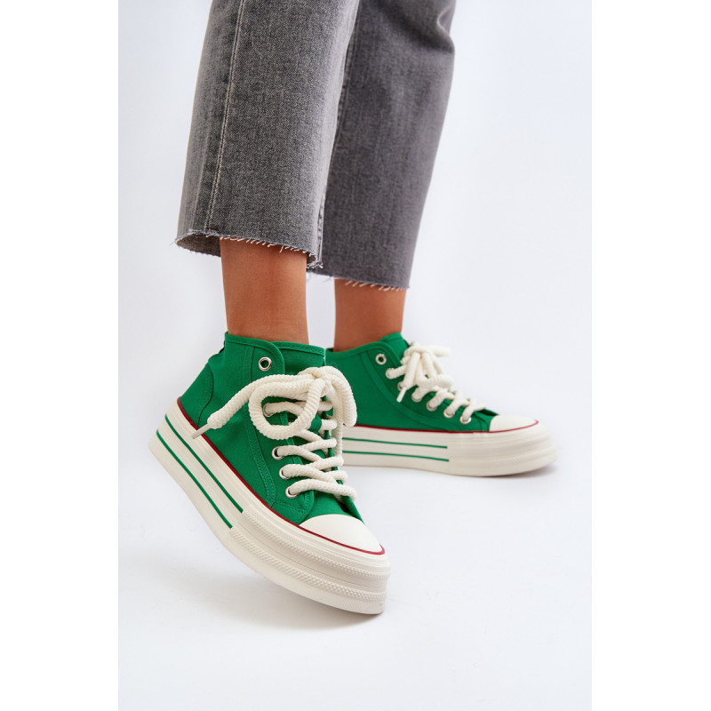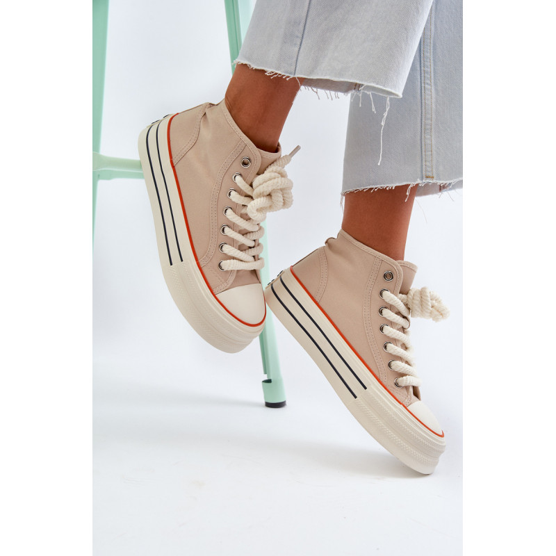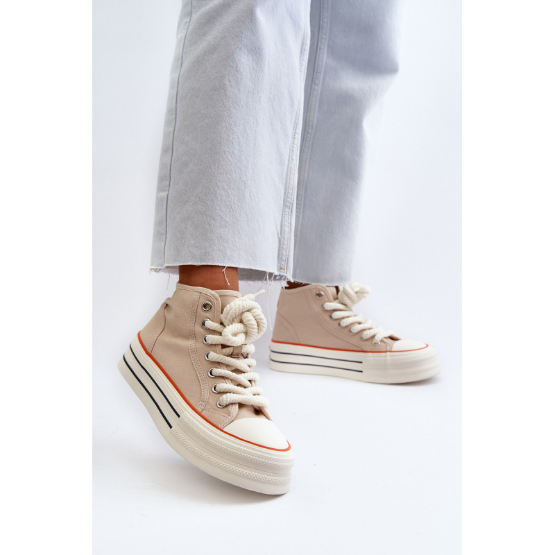 Moteriški sportbačiai, pagaminti iš tekstilės. Masyvi guminė platforma suteikia madingą išvaizdą ir užtikrina stabilumą einant. Suapvalinti pirštai ir klasikiniai suvarstyti juos universaliai papildo prie daugelio kasdienių stilių. Nesvarbu, ar einate pasivaikščioti mieste, ar susitikti su draugais, šie sportbačiai bus puikus pasirinkimas. Rinkdamiesi dydį, žiūrėkite dydžių lentelę.