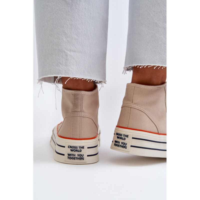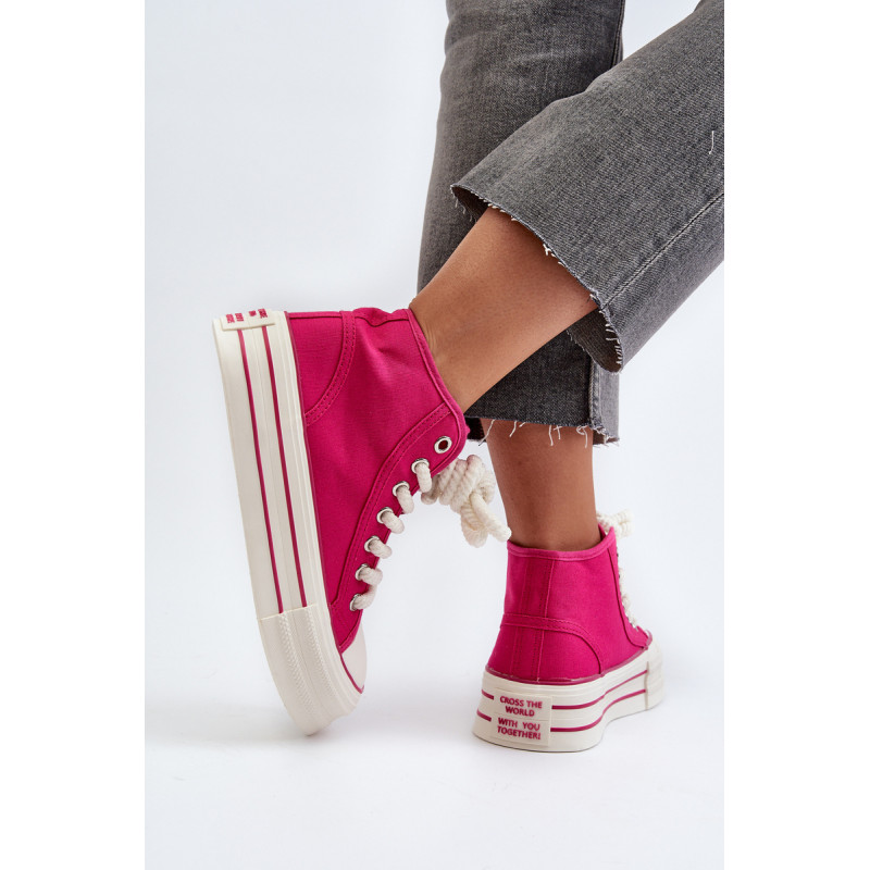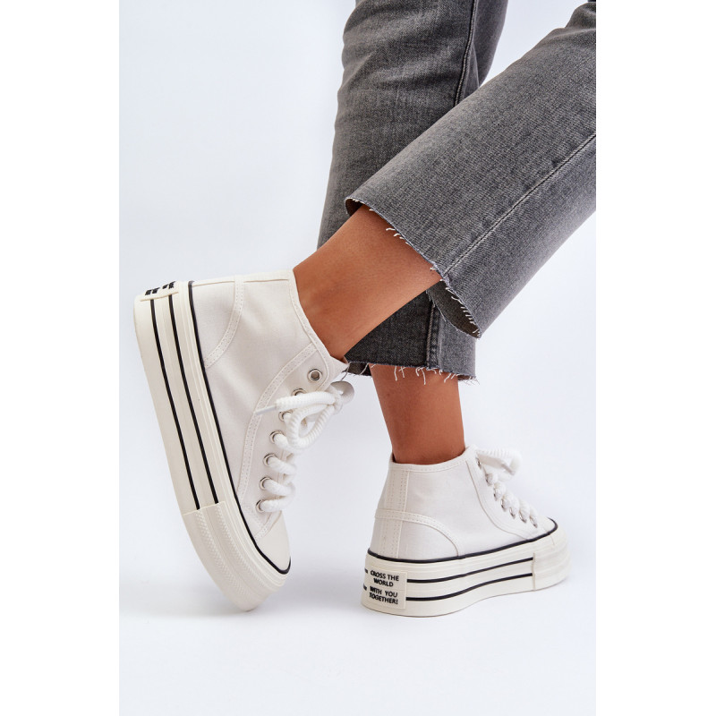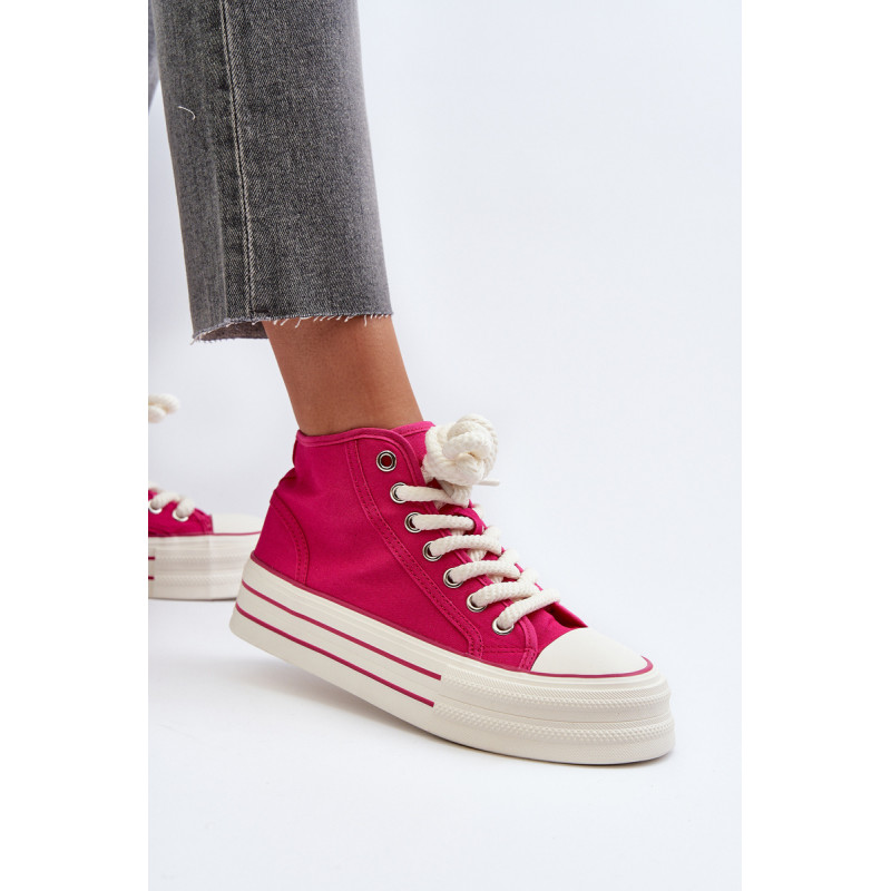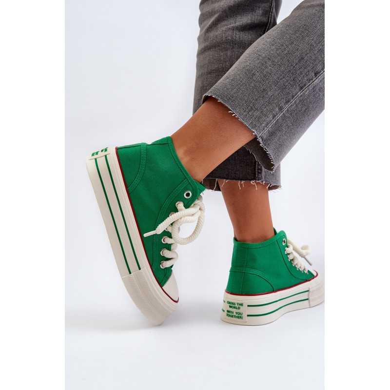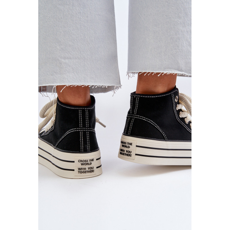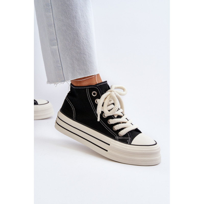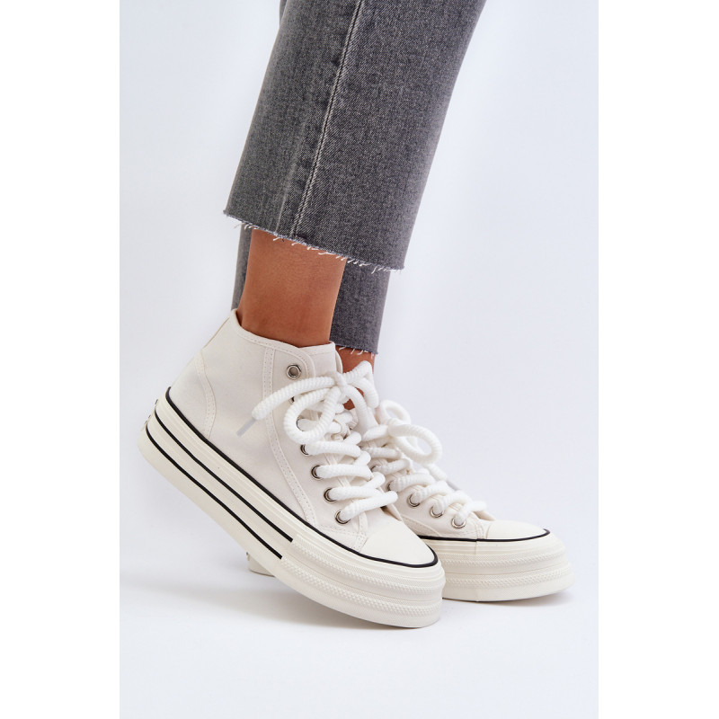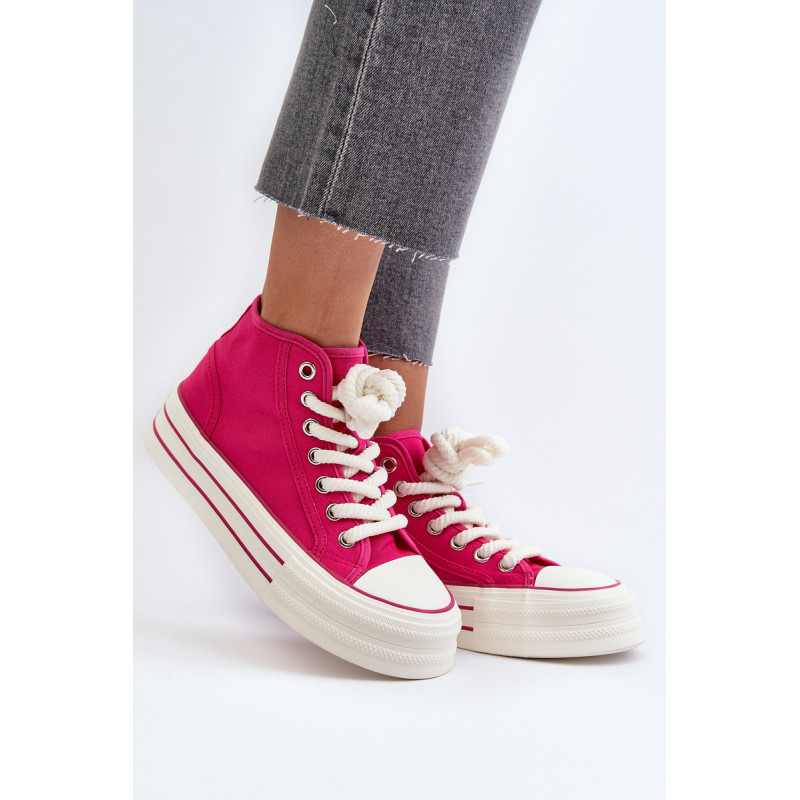 Moteriški sportbačiai, pagaminti iš tekstilės. Masyvi guminė platforma suteikia madingą išvaizdą ir užtikrina stabilumą einant. Suapvalinti pirštai ir klasikiniai suvarstyti juos universaliai papildo prie daugelio kasdienių stilių. Nesvarbu, ar einate pasivaikščioti mieste, ar susitikti su draugais, šie sportbačiai bus puikus pasirinkimas. Rinkdamiesi dydį, žiūrėkite dydžių lentelę.