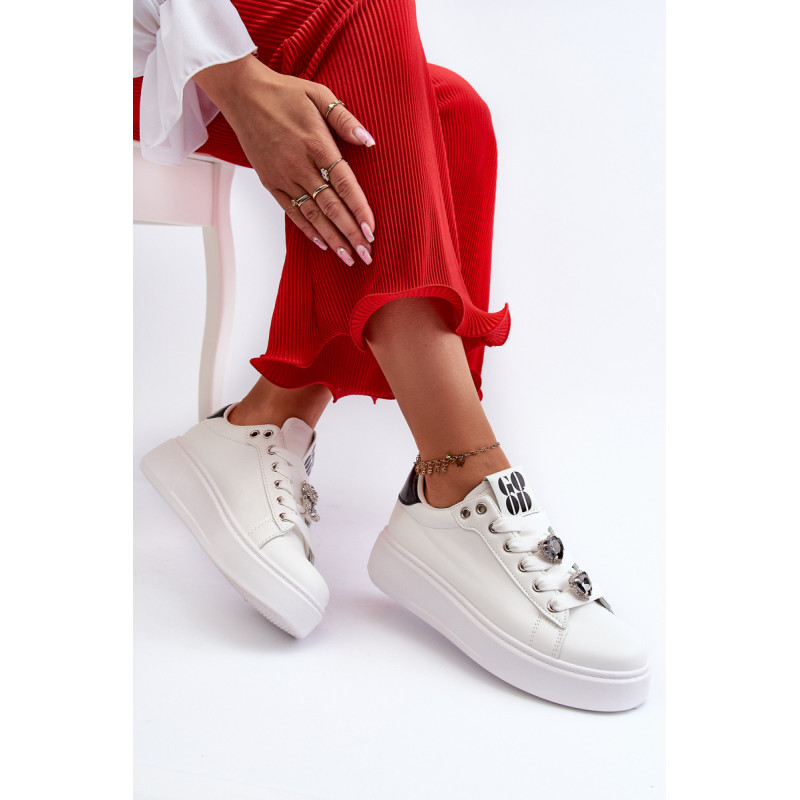 Sneakers su madingais širdelės formos žavesiais yra mielas vasaros garderobo papildymas. Pagaminta iš eko odos. Nustatyti ant platformos, jie užtikrina stabilumą ir komfortą dėvint. Jie tikrai pritrauks dėmesį ir suteiks žavesio bet kokiai aprangai. Rinkdamiesi dydį žiūrėkite dydžių lentelę.
