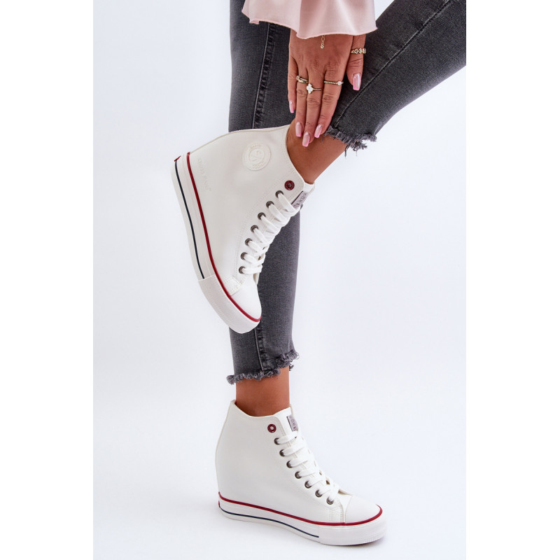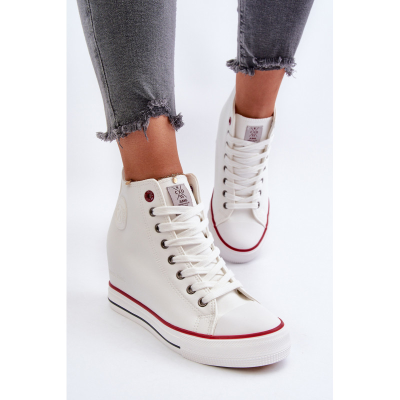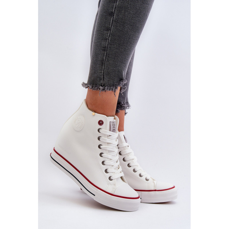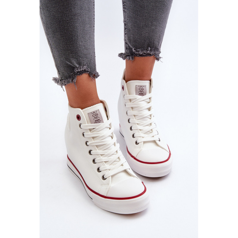 Moteriški sportbačiai iš prekės ženklo Cross Jeans. Pagaminta iš eko odos. Jų paslėptas pleištas padidina aukštį ir išlaiko patogumą. Šis modelis suvarstytas, todėl puikiai priglunda prie pėdos. Šis itin madingas stilius puikiai papildys laisvalaikio aprangą! Rinkdamiesi dydį, žiūrėkite dydžių lentelę.
