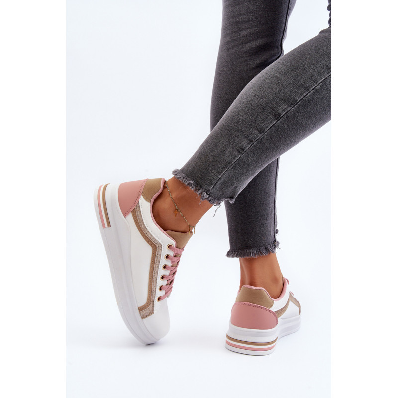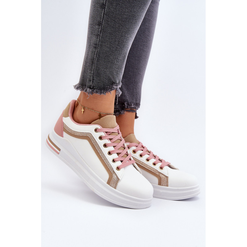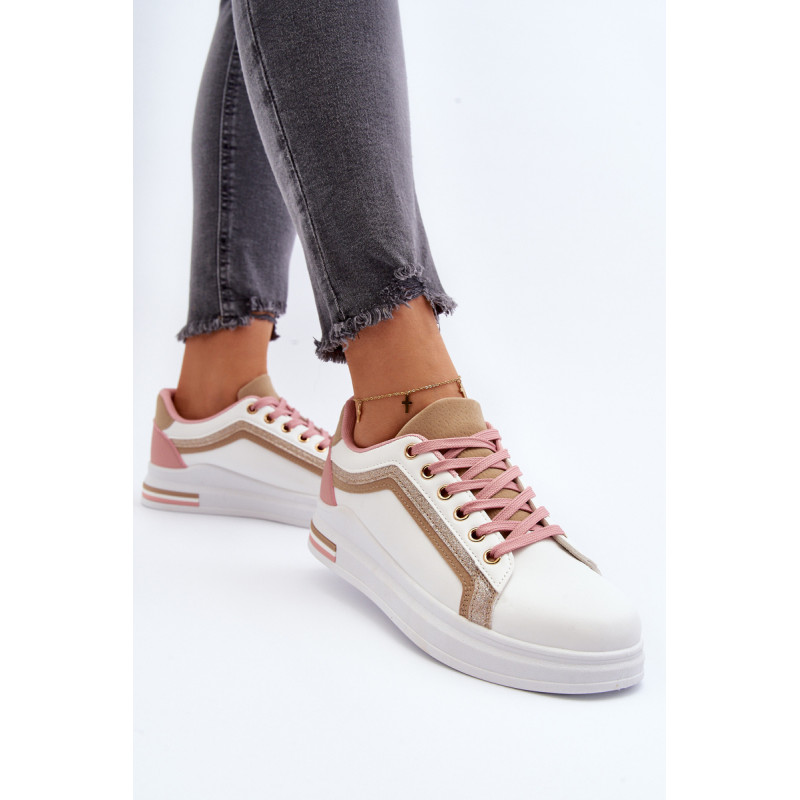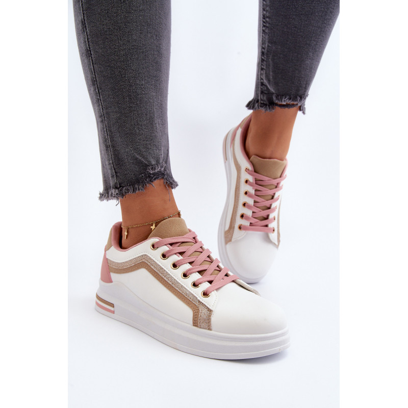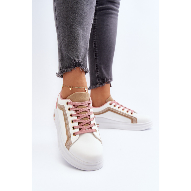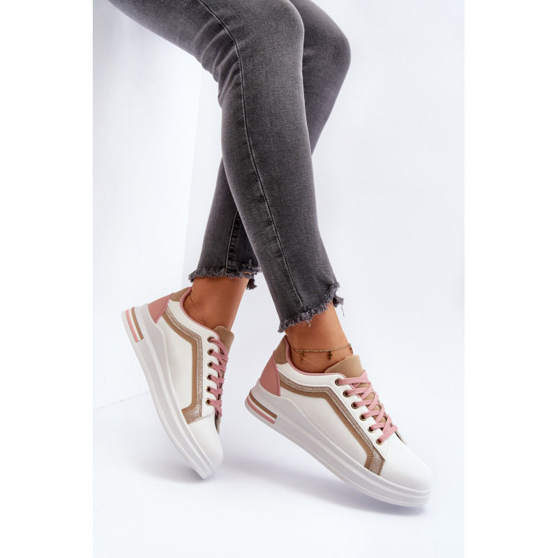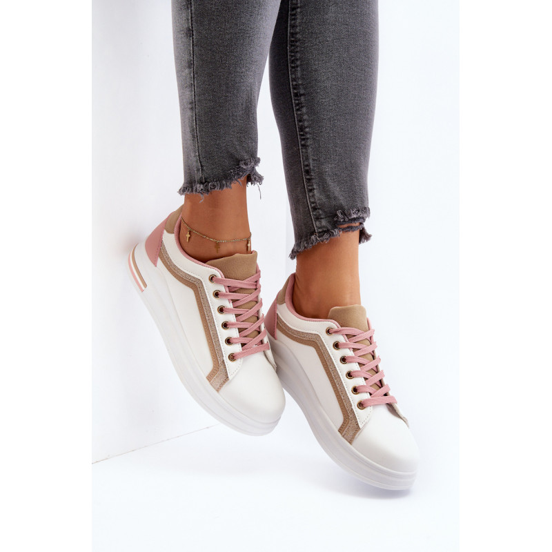 Moteriški sportiniai batai yra pagaminti iš ekologiškos odos. Šis modelis puikiai tinka kasdieniam naudojimui, darbui ar mokyklai. Sportiniai bateliai turi masyvią platformą ir medžiaginį vidpadį. Klasikinis suvarstomas modelis leis tinkamai priderinti avalynę prie kojos pločio. Rinkdamiesi dydį, žiūrėkite dydžių lentelę.