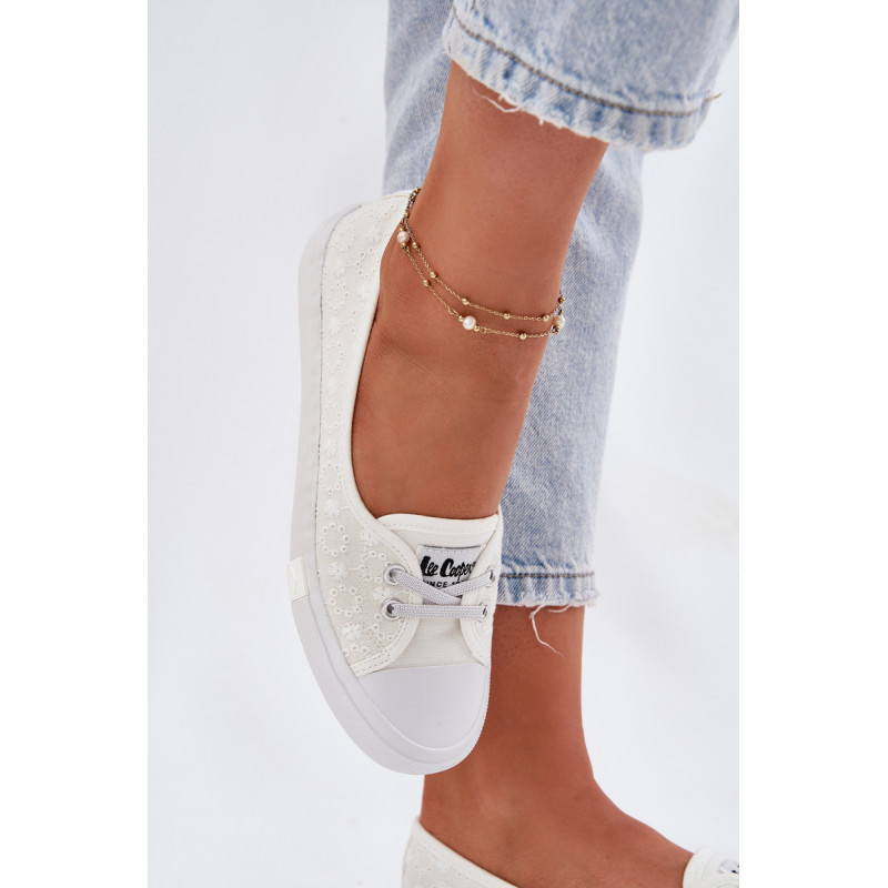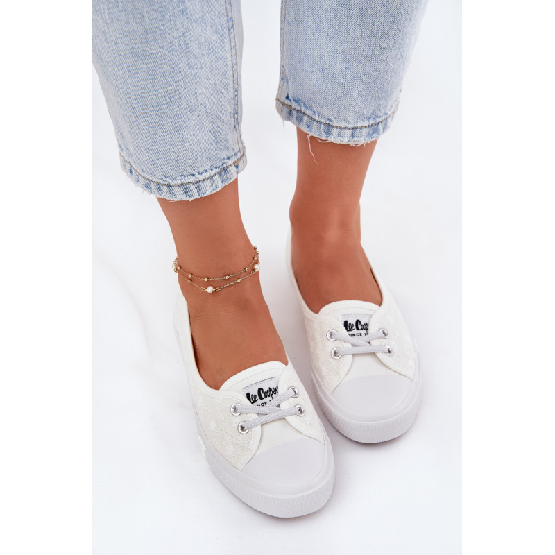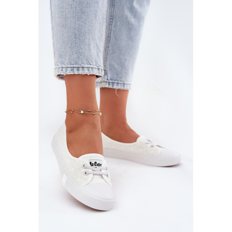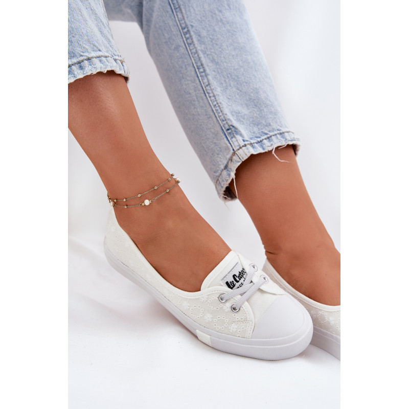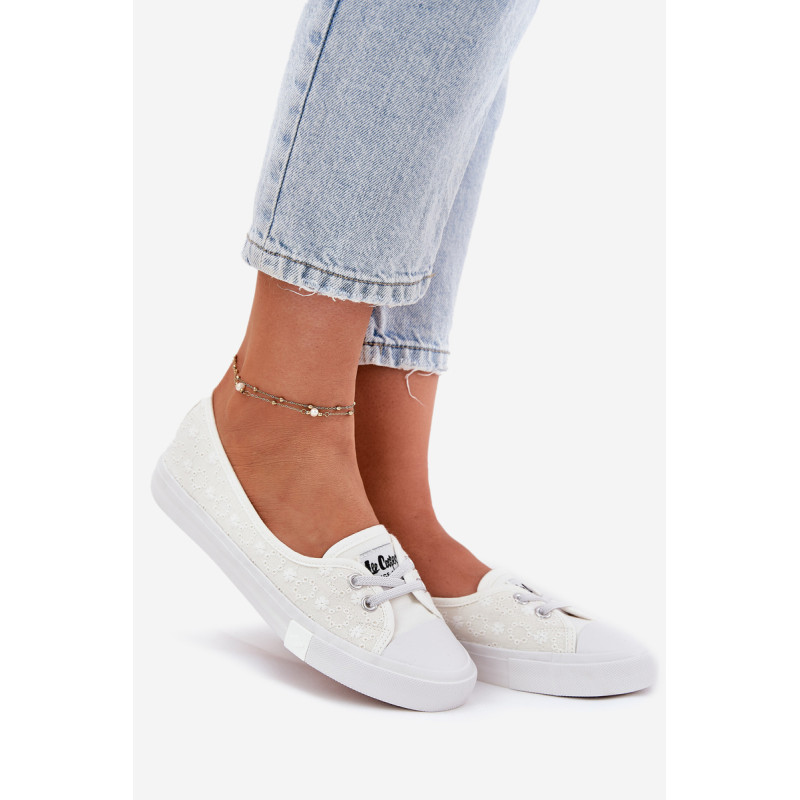 Moteriški bateliai „Lee Cooper“, pagaminti iš tekstilės. Viršus, papuoštas siuvinėjimu, suteikia unikalų žavesį, puikiai derantį su vasaros stiliais. Modelis yra be raištelių, su guminėmis juostomis, imituojančiomis raištelius, kas palengvina batų užsidėjimą ir nusėmimą. Minkšta vidpadis užtikrina komfortą visą dieną, todėl šie bateliai yra puikus pasirinkimas kasdieniam dėvėjimui. Lengvas ir stilingas siluetas užtikrina, kad jie tiks prie daugelio skirtingų aprangų. Renkantis dydį, vadovaukitės dydžių lentele.