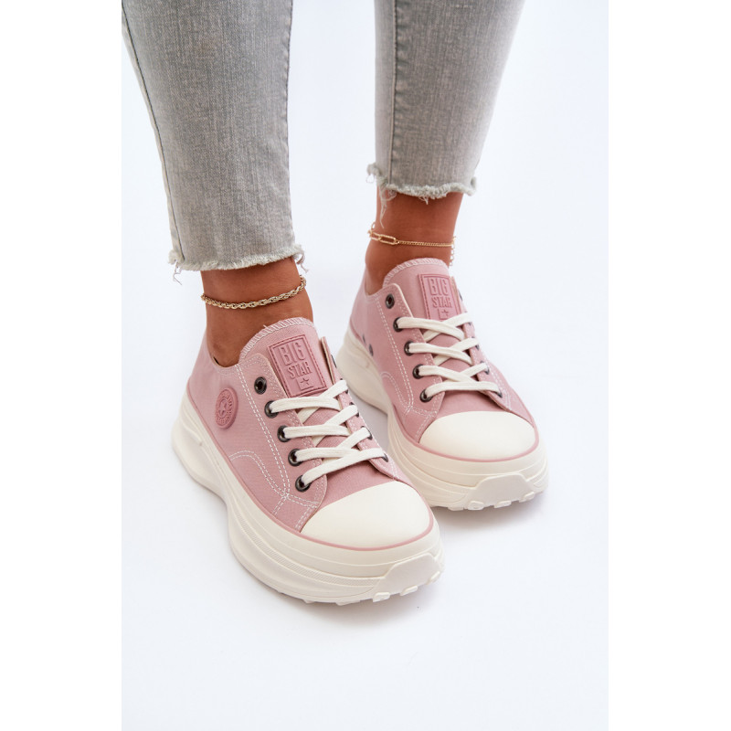 Platforminiai sportbačiai su Big Star logotipu yra būtini tiems, kurie vertina madą ir patogumą. Dėl platformos batai ne tik puikiai atrodo, bet ir suteikia pėdai stabilumo bei atramos, todėl yra idealus pasirinkimas ilgiems pasivaikščiojimams ar vakarinėms išvykoms. Dėl švelnios rožinės spalvos jie puikiai tinka daugeliui stilių, suteikia gaivumo ir originalumo.