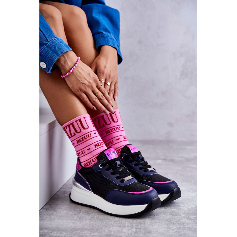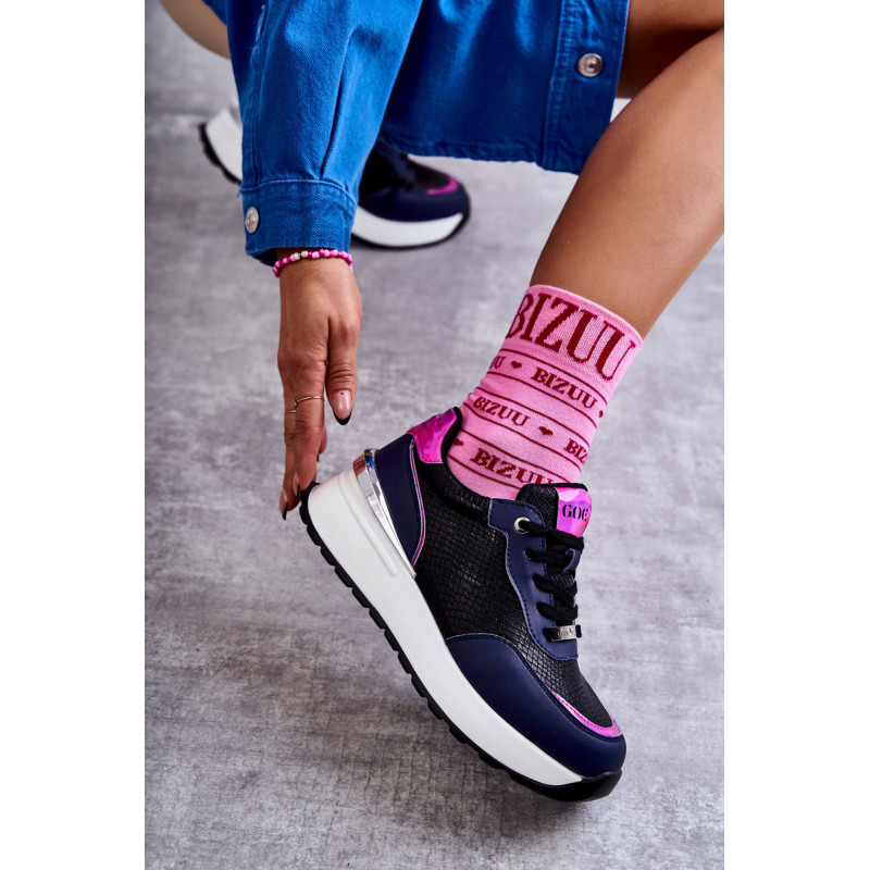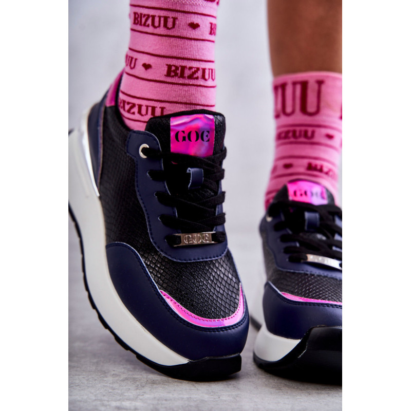 Unikali GOE sportinė avalynė yra pagaminta iš aukštos kokybės ekologiškos odos. Įdomus dizainas išskiria šiuos batus iš kitų. Virš kulno yra dekoratyvinis elementas. Klasikinis nėriniuotas modelis su ženkleliu su išgraviruotu žodžiu GOE. Sportbačiai buvo montuojami ant masyvios platformos ir pleištų. Itin minkštas, eko odos vidpadis užtikrins komfortą naudojimo metu. Renkantis dydį, naudokite dydžių lentelę.