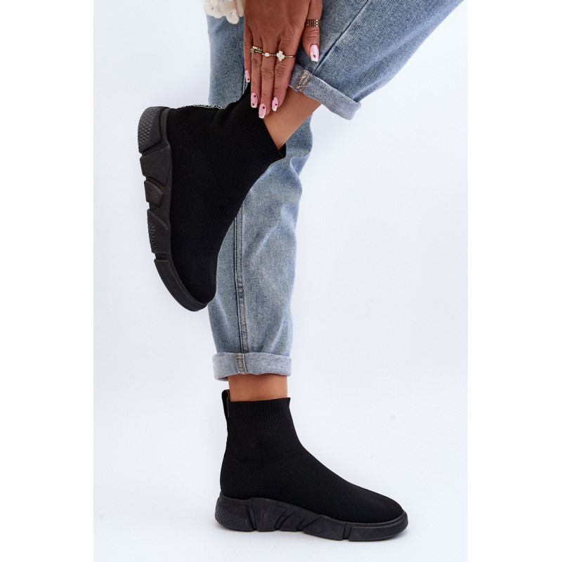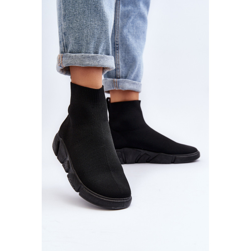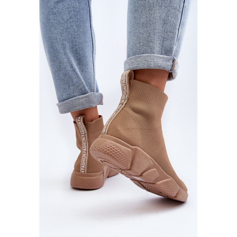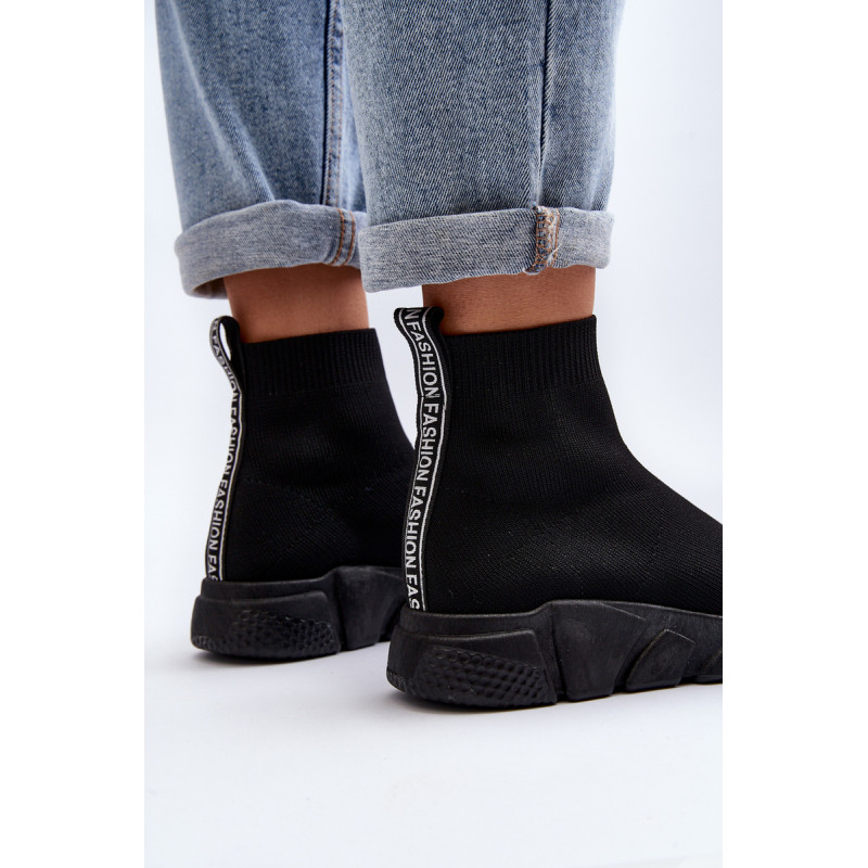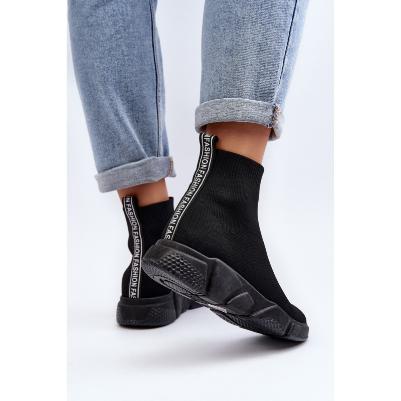 Moteriški sportiniai batai su kojinių viršumi. Pagaminta iš tekstilės medžiagos. Suapvalinti kojų pirštai. Tekstas ant nugaros. Šis modelis turi minkštą, išimamą vidpadį. Šį madingą kirpimą tikrai naudosite daugeliui stilių! Rinkdamiesi dydį žiūrėkite dydžių lentelę.
