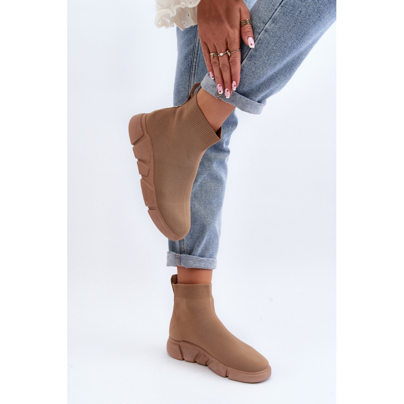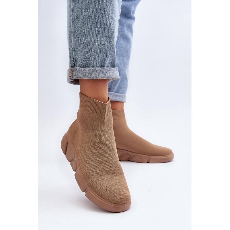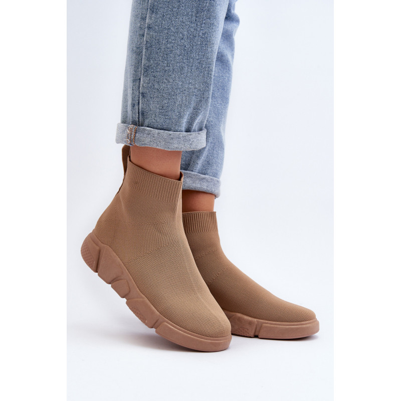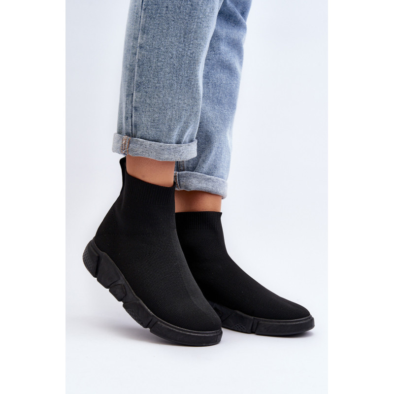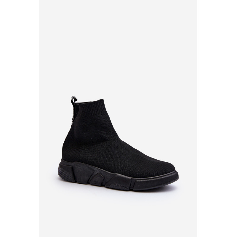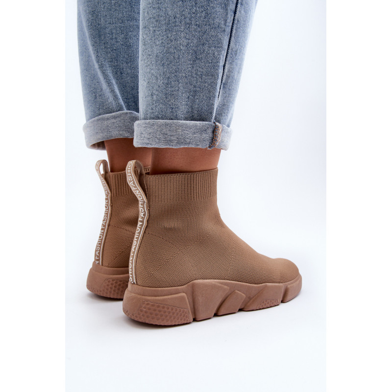 Moteriški sportiniai batai su kojinių viršumi. Pagaminta iš tekstilės medžiagos. Suapvalinti kojų pirštai. Tekstas ant nugaros. Šis modelis turi minkštą, išimamą vidpadį. Šį madingą kirpimą tikrai naudosite daugeliui stilių! Rinkdamiesi dydį žiūrėkite dydžių lentelę.