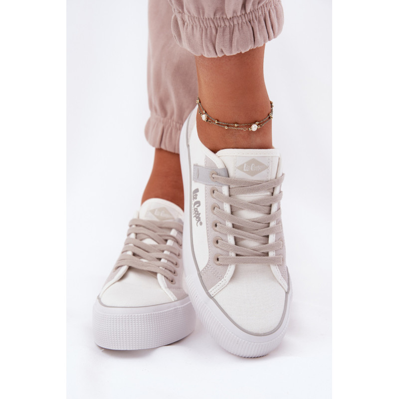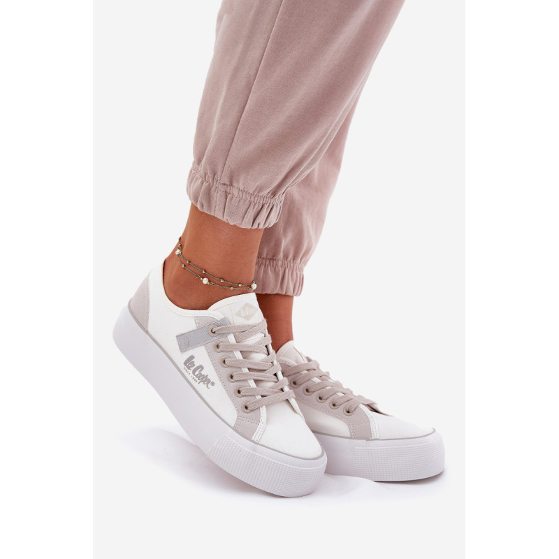 Moteriški sportiniai bateliai „Lee Cooper“, pagaminti iš tekstilės, yra puikus pasirinkimas tiems, kurie vertina komfortą ir stilių. Ant platformos įrengti bateliai užtikrina papildomą stabilumą ir komfortą visą dieną. Apvalūs pirštai garantuoja judėjimo laisvę, o minkšta pado įkrova užtikrina tinkamą amortizaciją. Klasikinis raištelis leidžia idealiai pritaikyti batelius prie pėdos, o šoninis subtilus logotipas suteikia batams madingo akcento. Šie sportiniai bateliai yra puikus pasirinkimas kasdieninėms stilizacijoms! Renkantis dydį, vadovaukitės dydžių lentele.