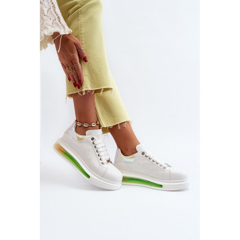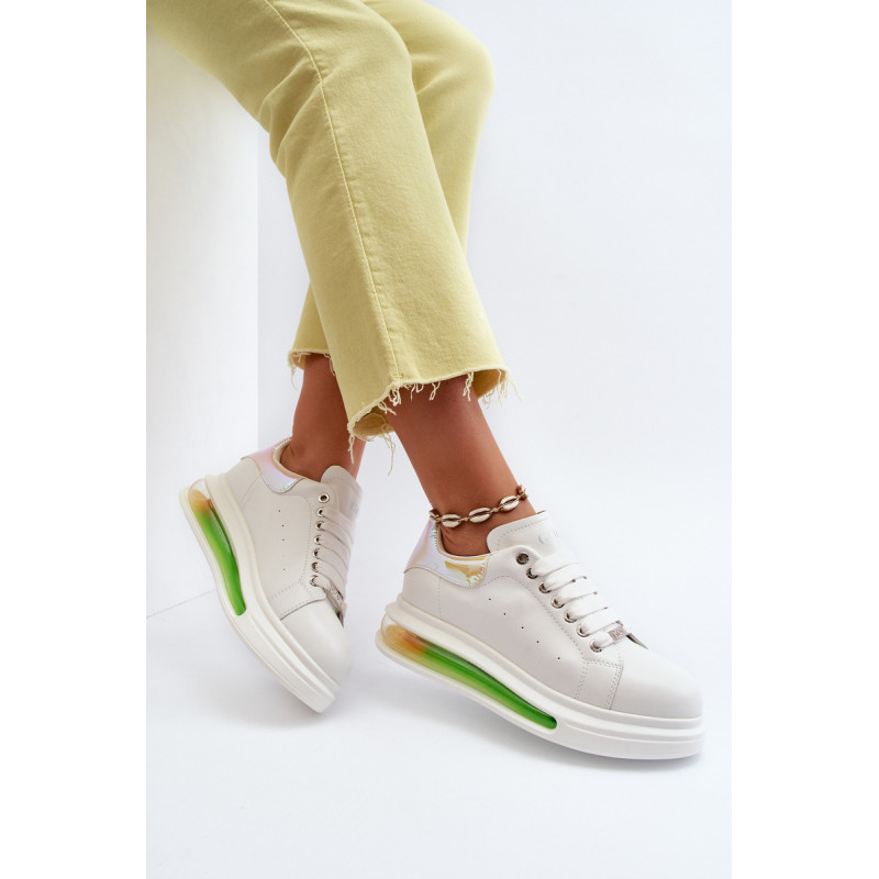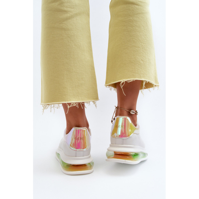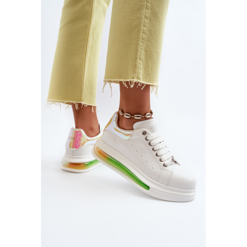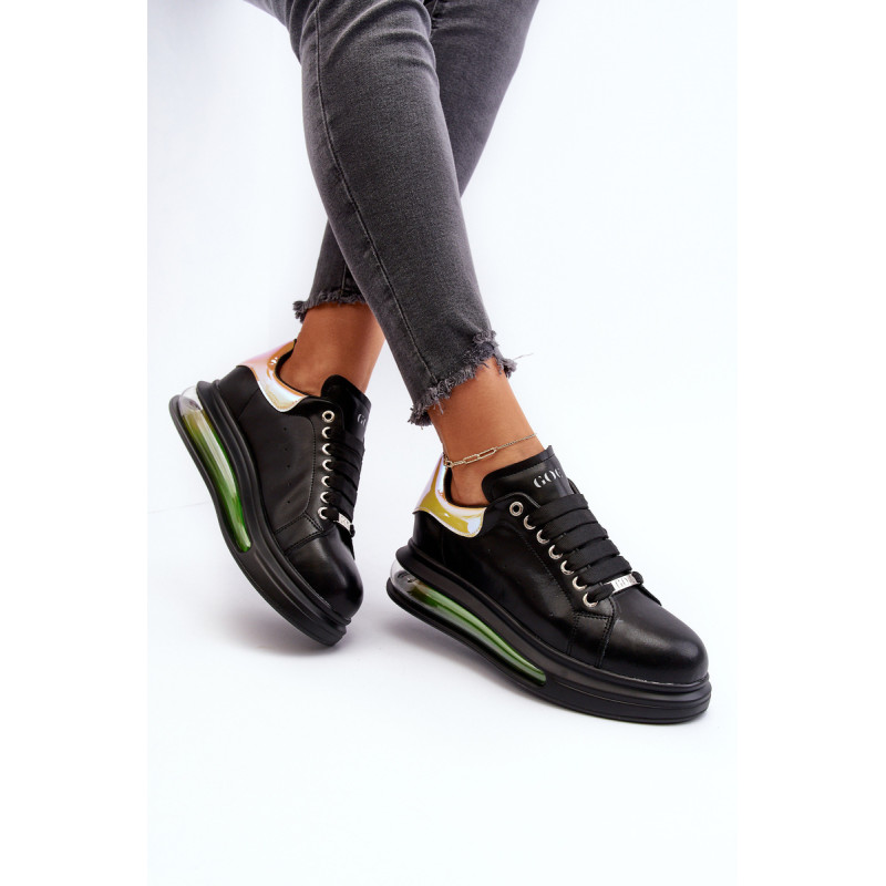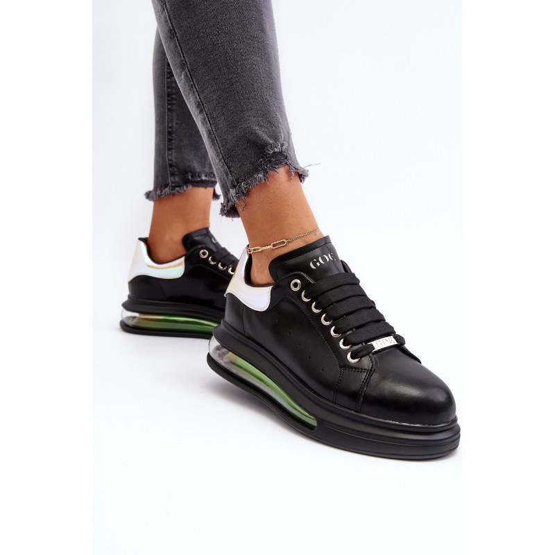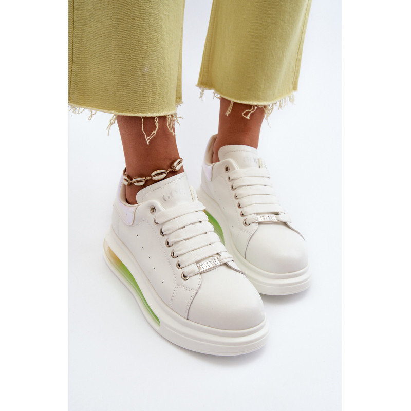 Unikalūs GOE sportiniai bateliai, pagaminti iš aukštos kokybės natūralios odos. Viršutinės dalies gale yra dekoratyvus, veidrodinis įdėklas su GOE logotipu. Minkštas, ekologiškos odos vidpadis garantuoja komfortą visą dieną. Įterptas į platformą. Klasikinis suvarstymas leis tinkamai priderinti avalynę prie kojų pločio. Šį nuostabų modelį tikrai turėtumėte turėti savo garderobe! Renkantis dydį, naudokite dydžių lentelę.