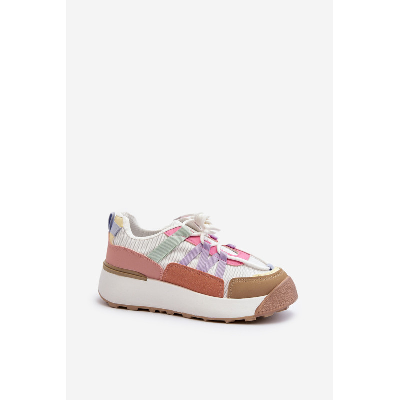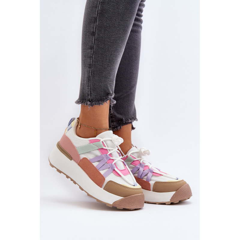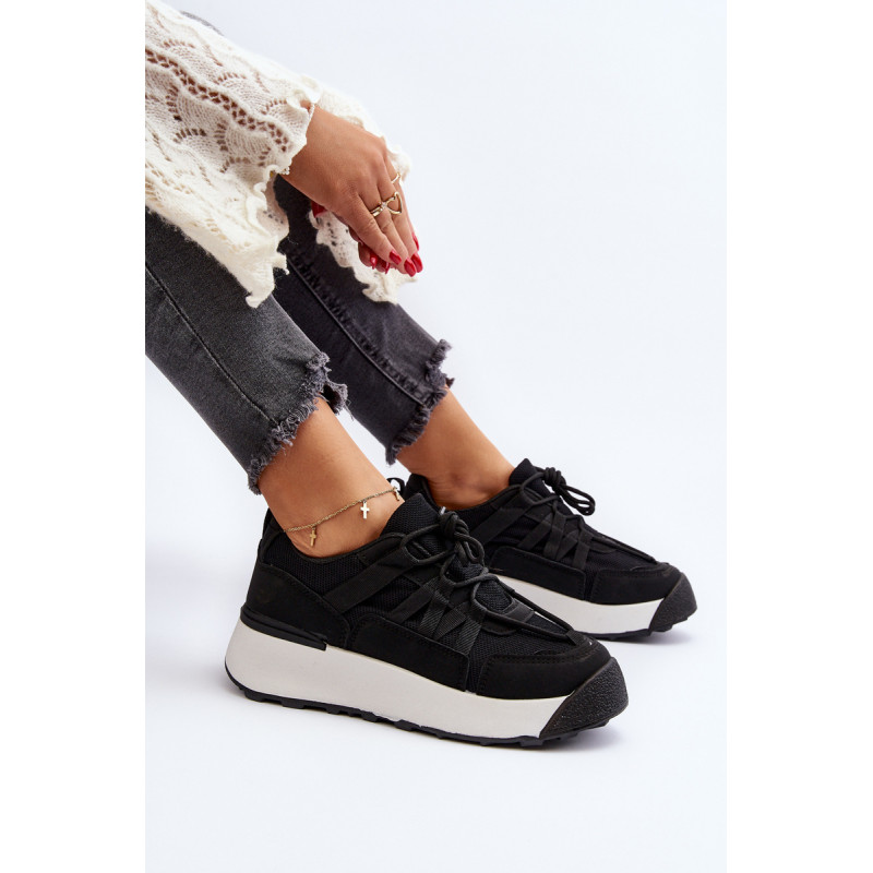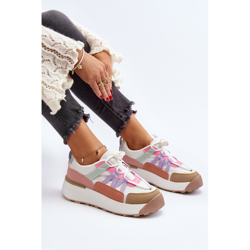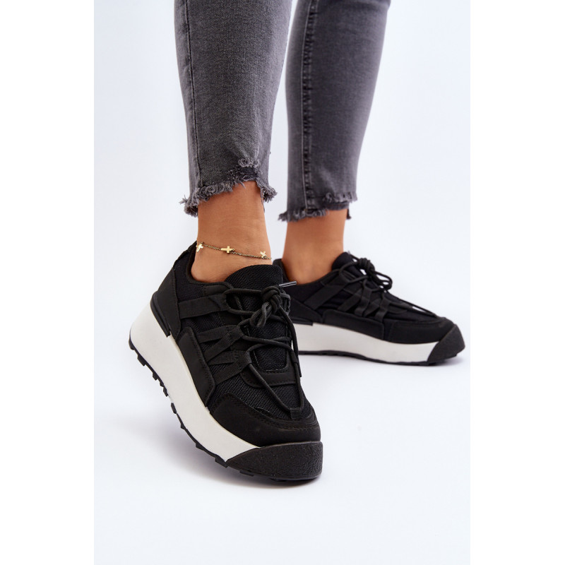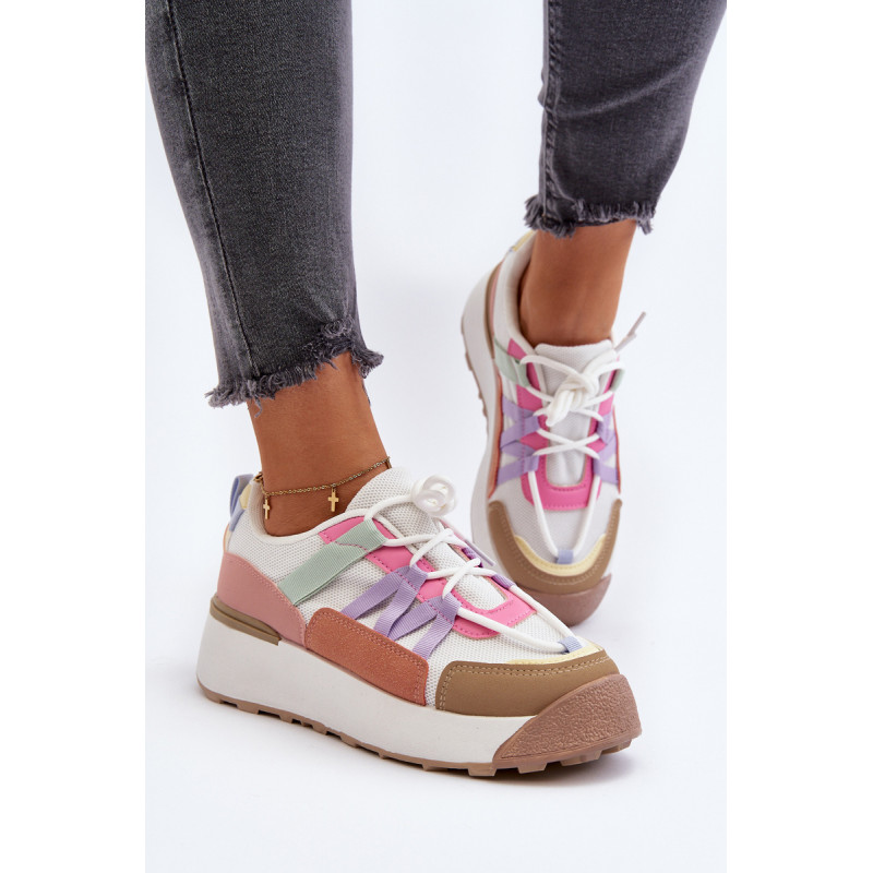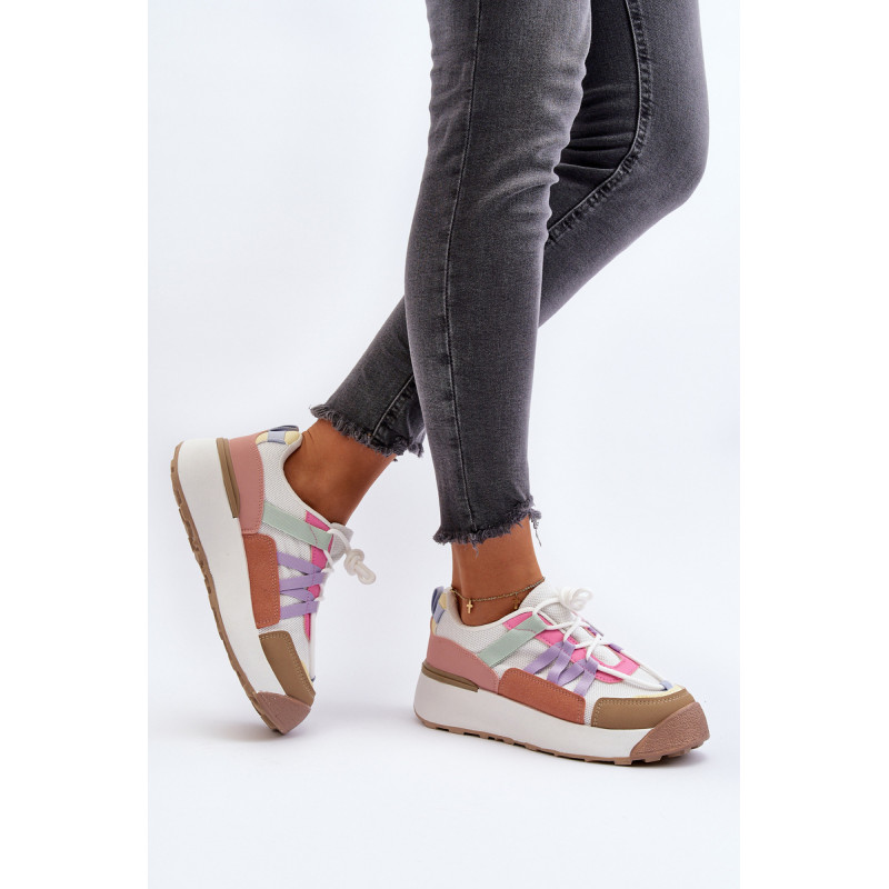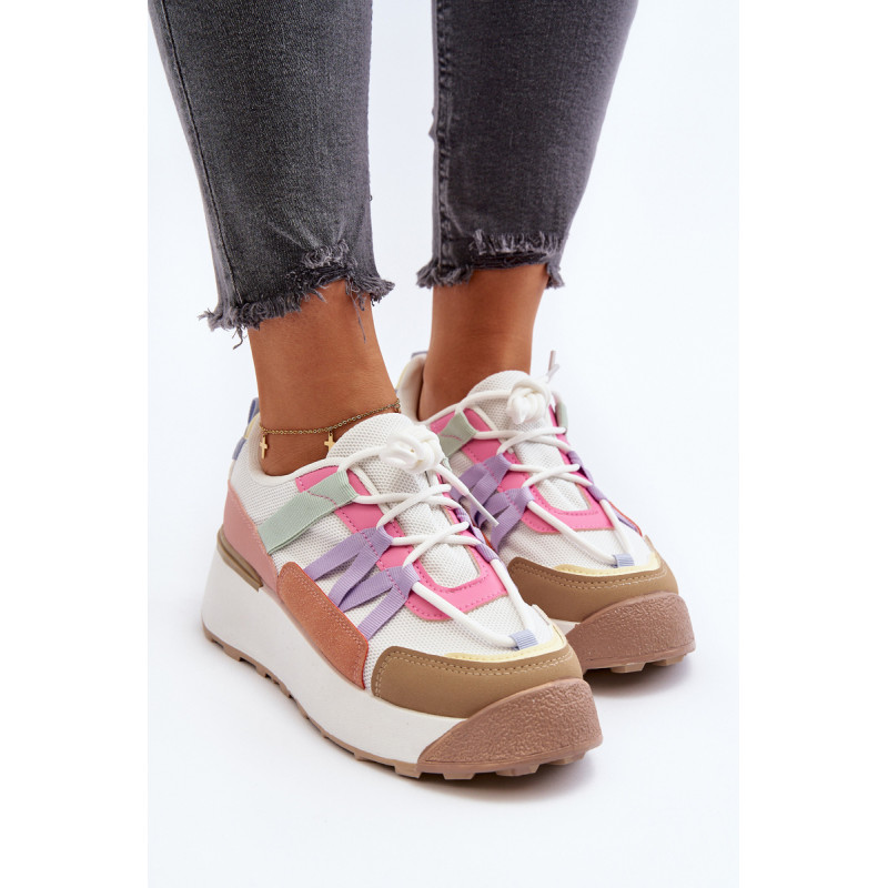 Moteriški sportiniai batai, pagaminti iš tekstilės medžiagos ir ekologiškos odos derinio. Pastatykite ant didžiulės platformos, kuri subtiliai pakels jūsų siluetą. Suvarstomas modelis. Putplasčio vidpadis suteiks komforto naudojimo metu. Jūs tikrai turite juos turėti! Rinkdamiesi dydį, žiūrėkite dydžių lentelę.
