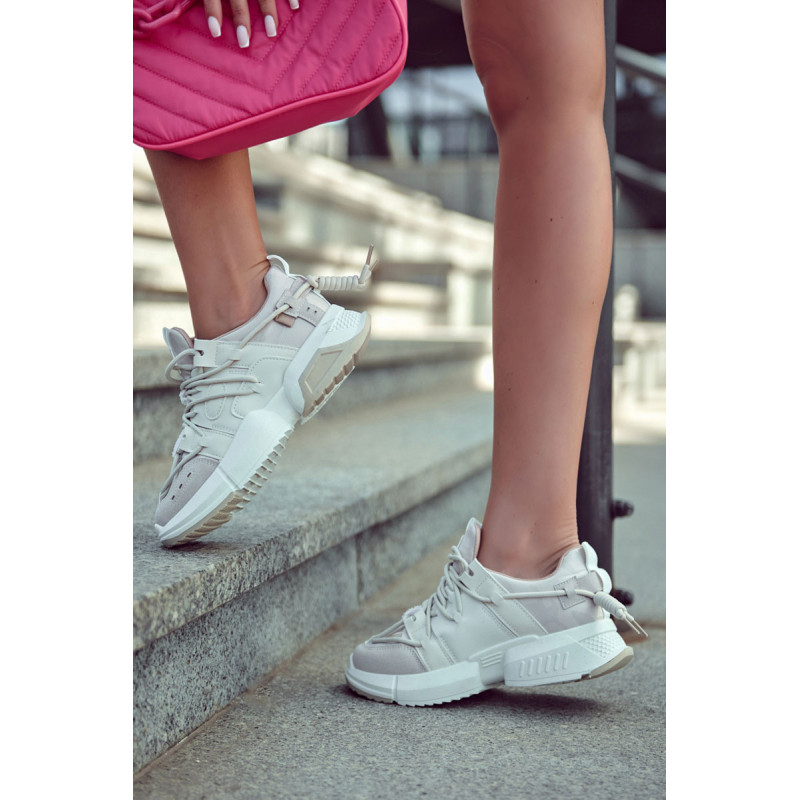 Moteriški sportiniai bateliai turi įrišimą, leidžiantį tinkamai priderinti avalynę prie kojų pločio. Pagaminta iš eko odos. Apvalus pirštas leis jūsų kojoms patogiai. Viršutinė kulkšnis. Ant masyvios platformos montuojami sportbačiai ir plokščiakulniai. Vidpadis pagamintas iš audinio. Modelis itin patogus ir stilingas. Su šiais batais galite sukurti daug įdomių stilių! Renkantis dydį, naudokite dydžių lentelę.