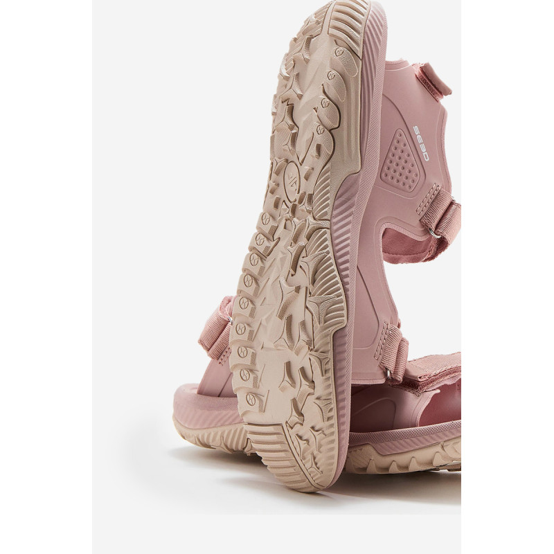 Sportiško stiliaus moteriški sandalai iš prekės ženklo 4F. Šiame modelyje yra trigubas Velcro užsegimas, užtikrinantis patikimą pėdos laikymą. Viršutinė dalis pagaminta iš sintetinės medžiagos, pamušta minkštu džersiu. EVA putplasčio vidpadis garantuoja išskirtinį komfortą, o padas užtikrina optimalų sukibimą su įvairių tipų paviršiais, todėl šios basutės yra idealus pasirinkimas vasaros pasivaikščiojimams, ekskursijoms ar laisvalaikio veiklai lauke. Rinkdamiesi dydį, žiūrėkite dydžių lentelę.