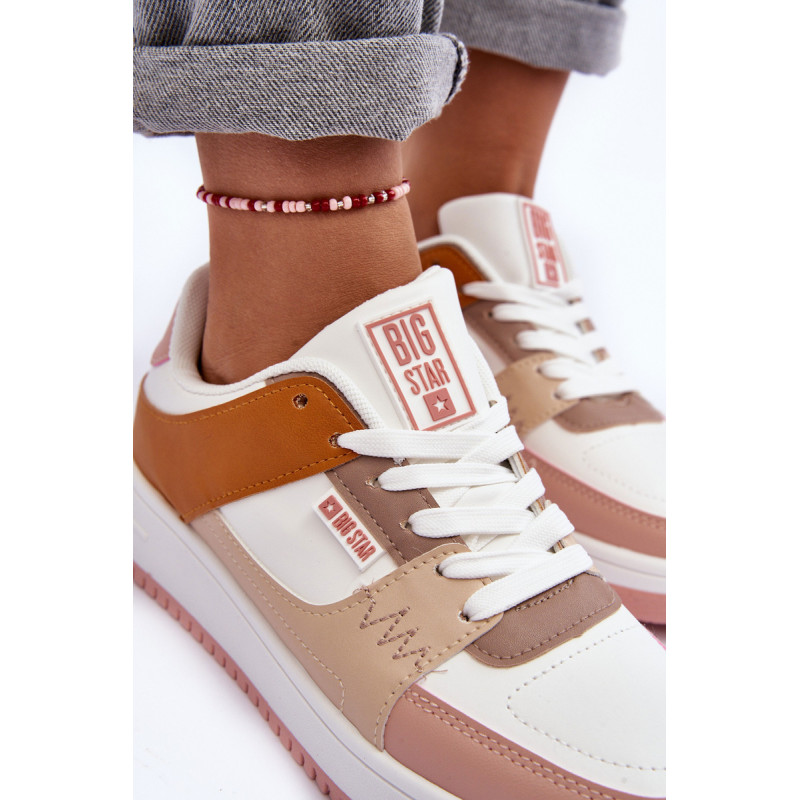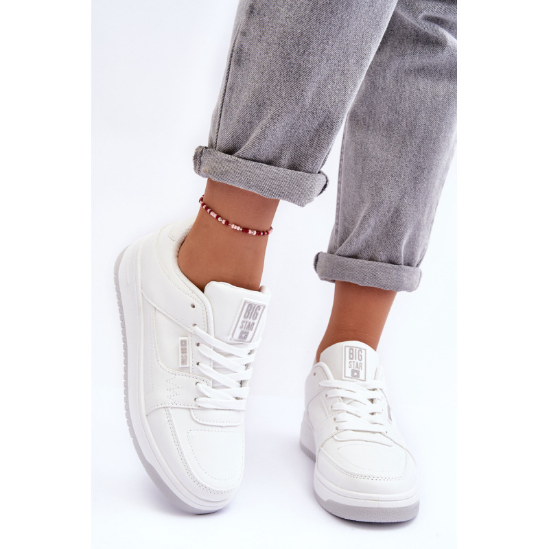 Big Star prekės ženklo moteriški sportbačiai pagaminti iš ekologiškos odos. Nustatyti ant platformos. Šis modelis turi klasikinį suvarstymą. Kojos pirštas sustingęs. Minkštas vidpadis suteiks patogumo naudojant avalynę. Rinkdamiesi dydį, vadovaukitės dydžių lentele.