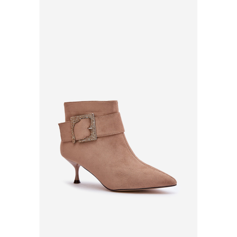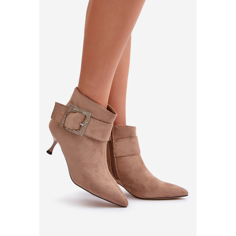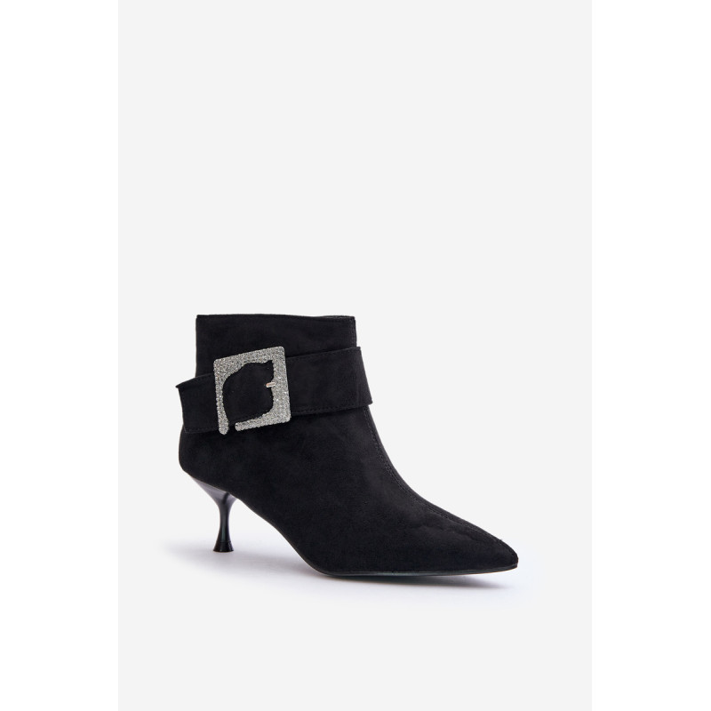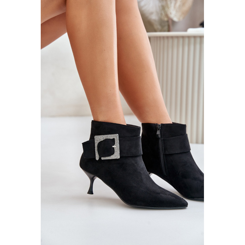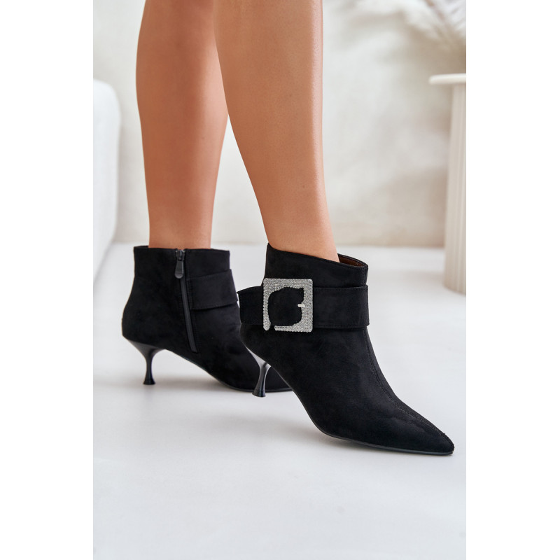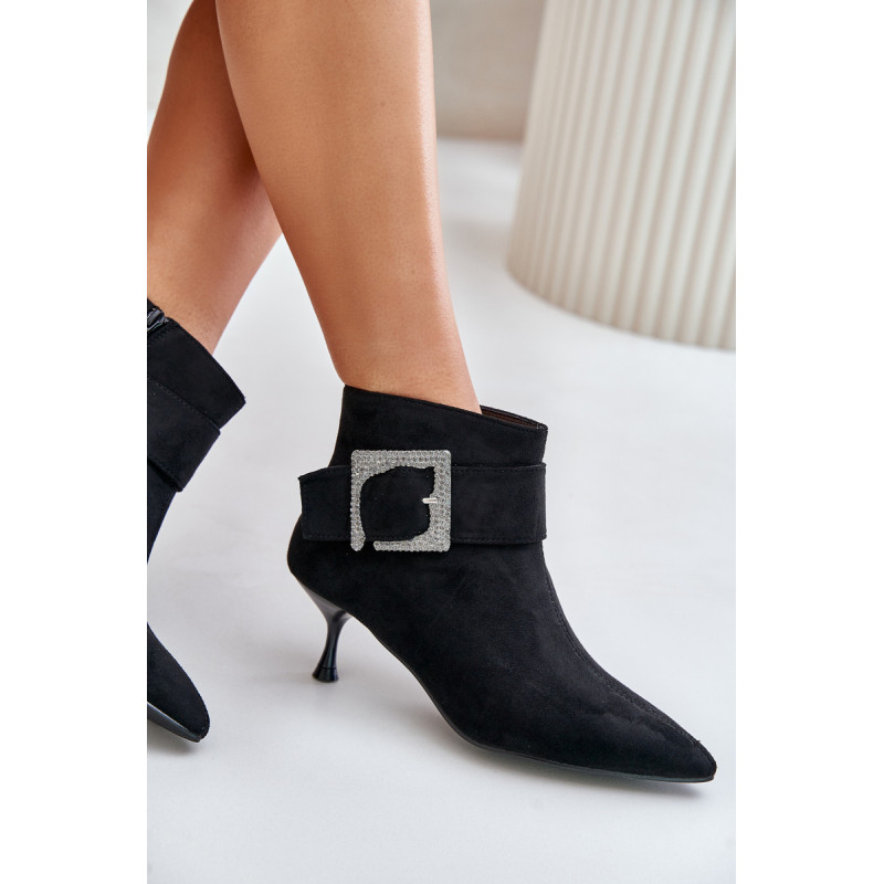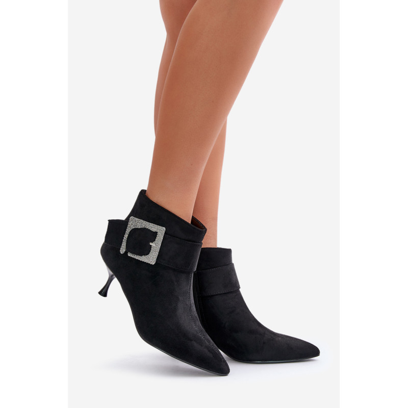 Stilingi batai ant aukštakulnio. Pagaminta iš ekologiškos zomšos. Užsegamas užtrauktuku, užtikrinantis patogumą ir lengvą užsidėjimą. Smailūs kojų pirštai suteikia rafinuoto charakterio, išryškina moteriškumą ir silueto lieknumą. Pagrindinis šio modelio privalumas – didelė dekoratyvinė sagtis koto šone. Puikiai tiks tiek ypatingoms progoms, tiek kasdieniniam stiliui! Rinkdamiesi dydį, žiūrėkite dydžių lentelę.