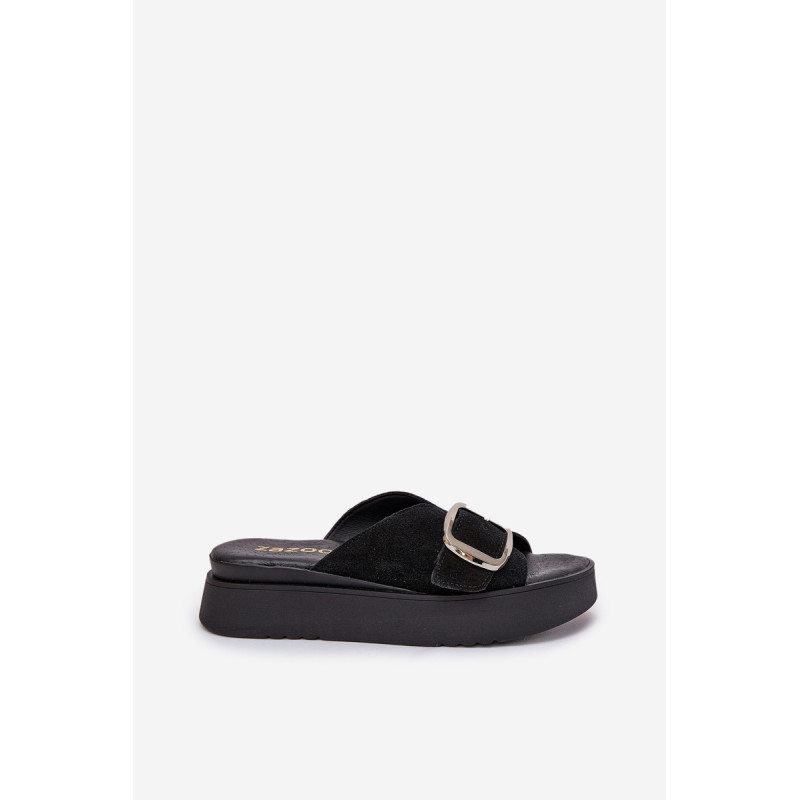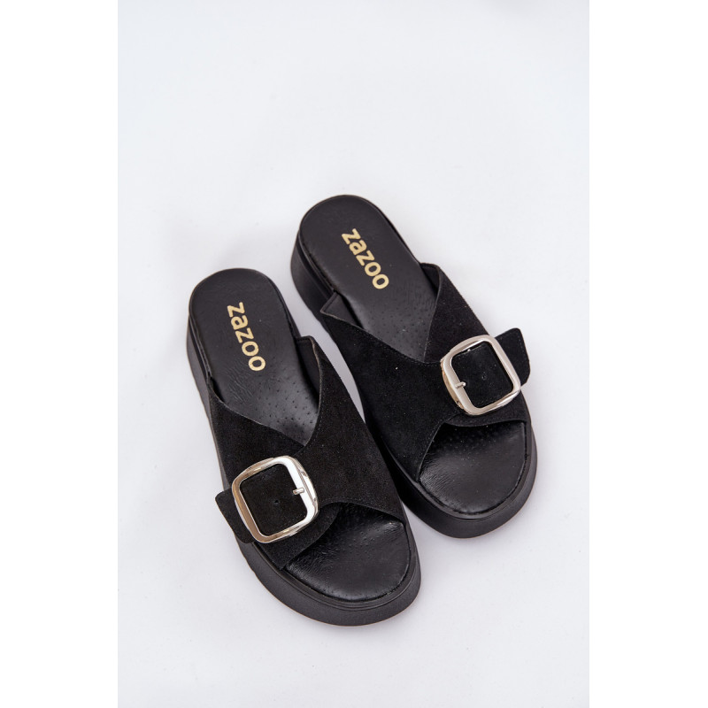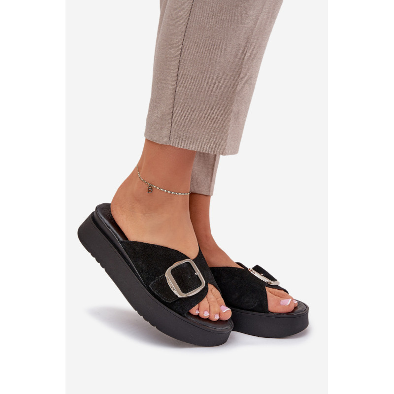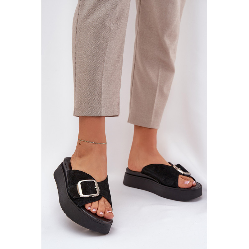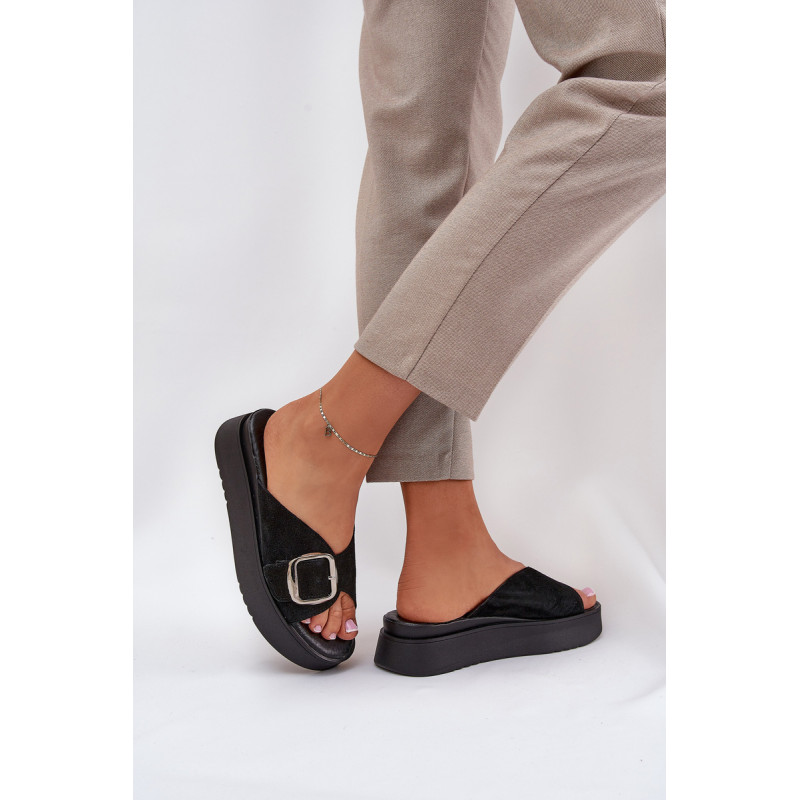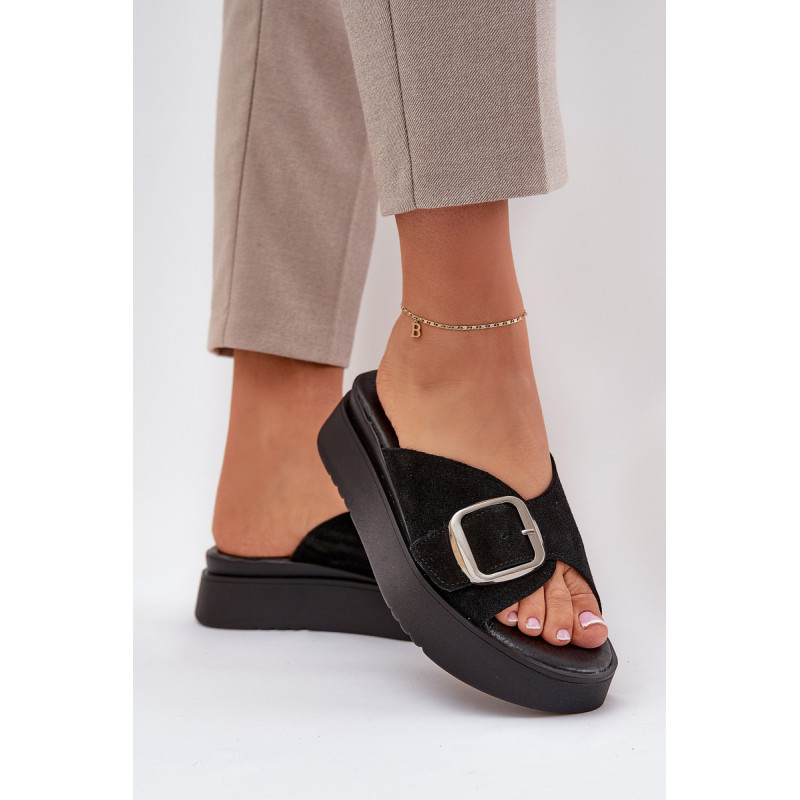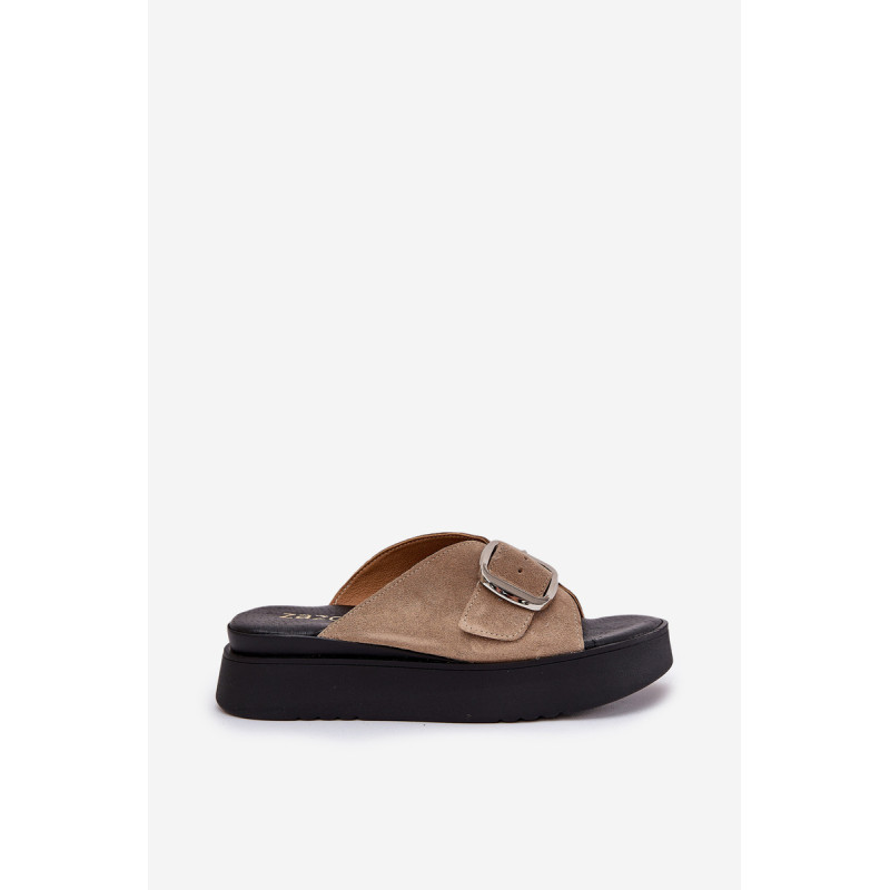 Natūralaus zomšo šlepetės yra elegantiškas pasirinkimas vasaros dienoms. Padėtos ant platformos, jos užtikrina komfortą ir stabilumą vaikščiojant. Didelis sagtis su reguliuojama juostele priekyje leidžia idealiai pritaikyti prie pėdos, o minkšta pado danga garantuoja komfortą visą dieną. Šios šlepetės yra puikus pasirinkimas daugeliui stilių! Renkantis dydį, vadovaukitės dydžių lentele.
