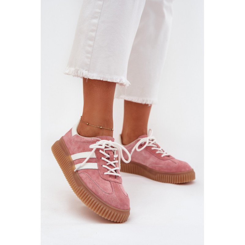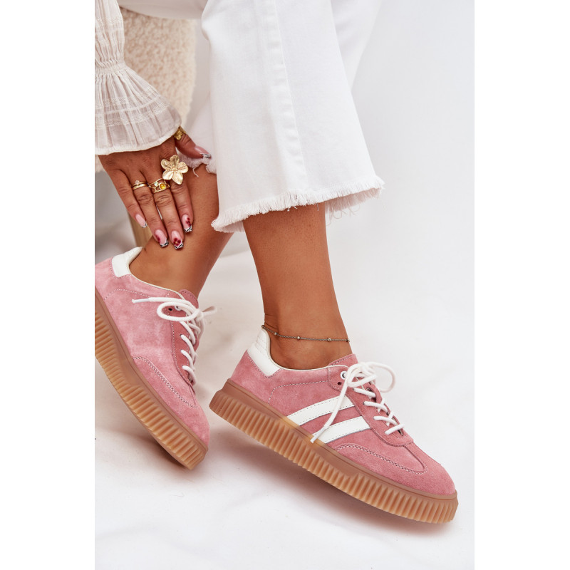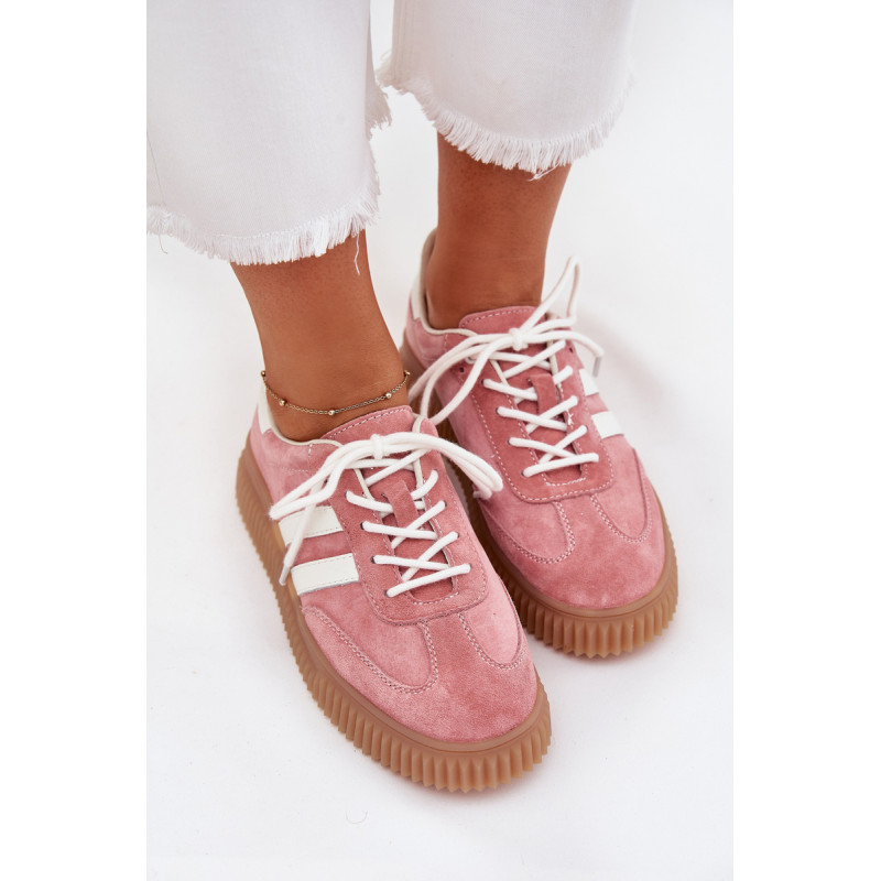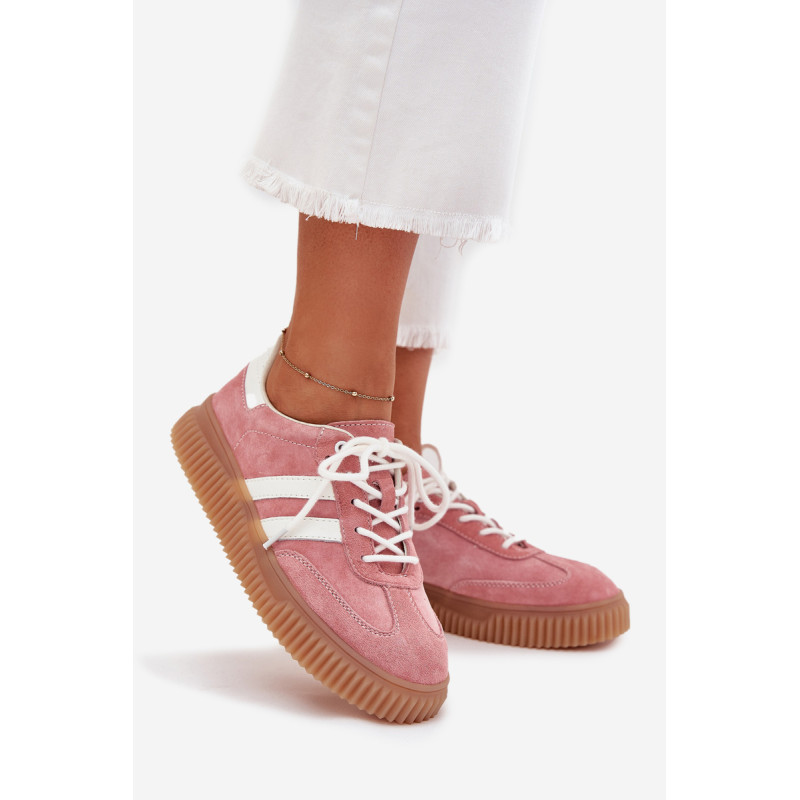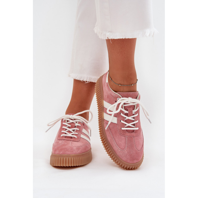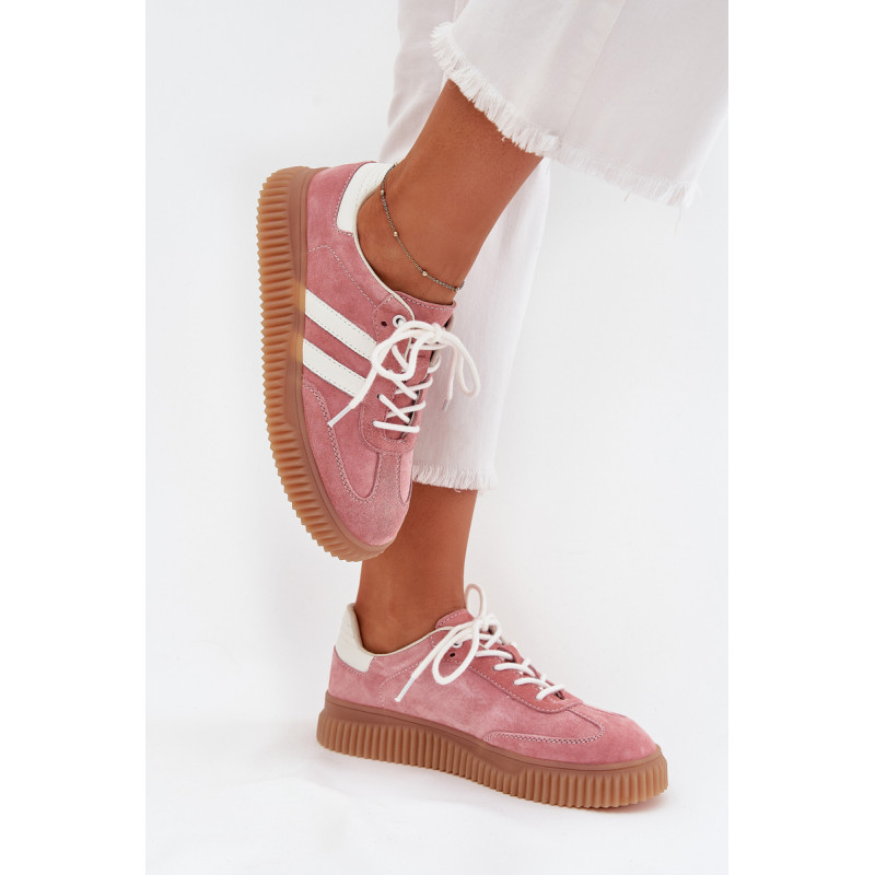 Moteriški sportbačiai iš natūralios zomšos, įmontuoti ant platformos, yra patogumo ir madingo įvaizdžio derinys. Apvalūs pirštai ir odinė vidpadis užtikrina komfortą visą dieną. Puikiai tinka kasdieniam nešiojimui, puikiai dera su džinsais, suknelėmis ar sijonais. Renkantis dydį, vadovaukitės dydžių lentele.