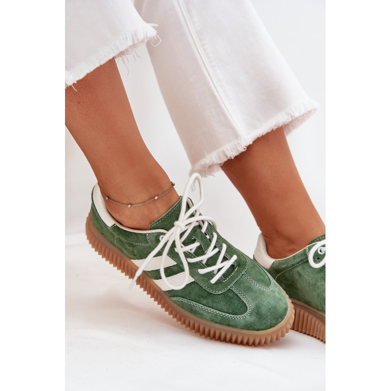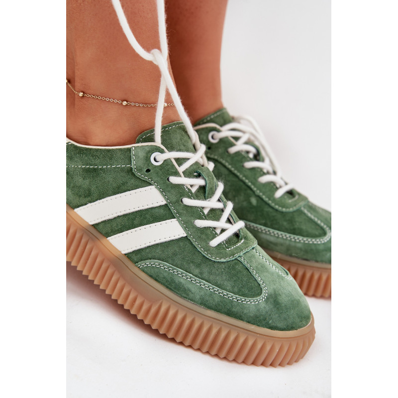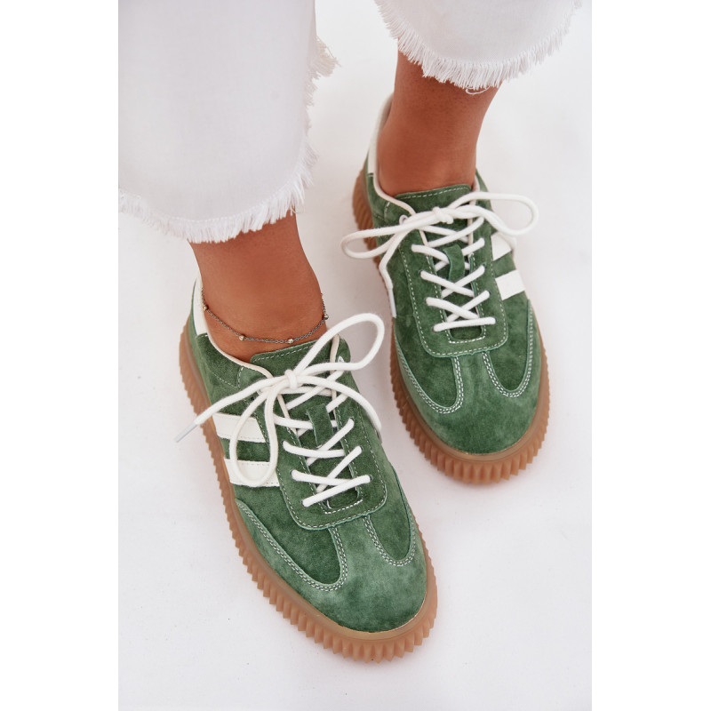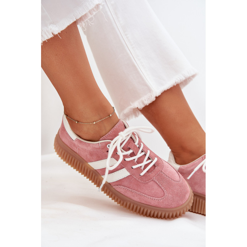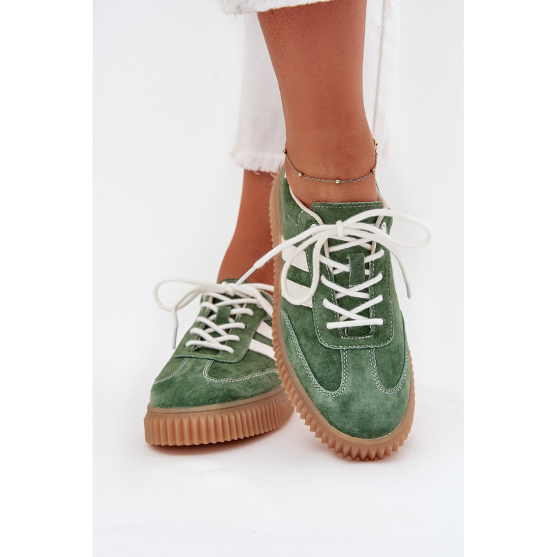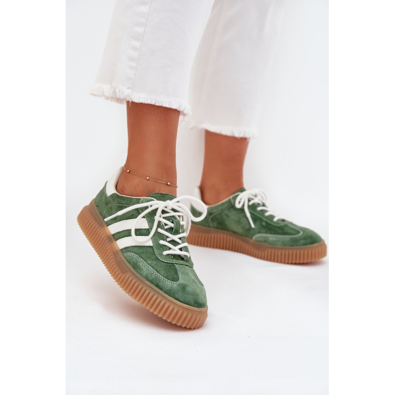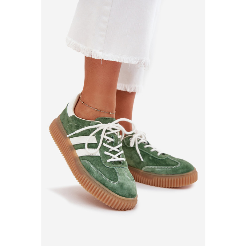 Moteriški sportbačiai iš natūralios zomšos, įmontuoti ant platformos, yra patogumo ir madingo įvaizdžio derinys. Apvalūs pirštai ir odinė vidpadis užtikrina komfortą visą dieną. Puikiai tinka kasdieniam nešiojimui, puikiai dera su džinsais, suknelėmis ar sijonais. Renkantis dydį, vadovaukitės dydžių lentele.