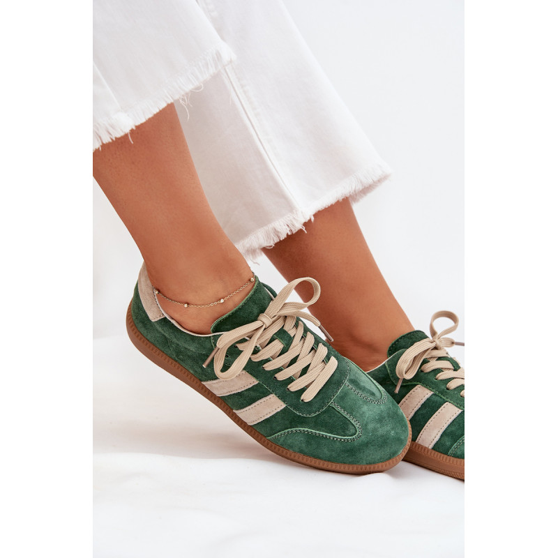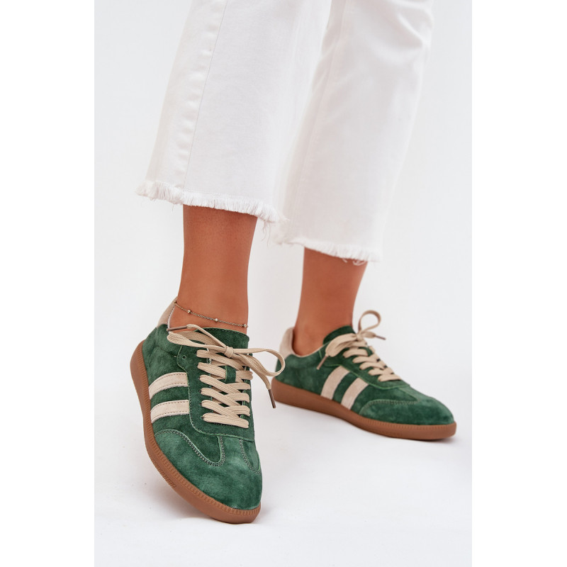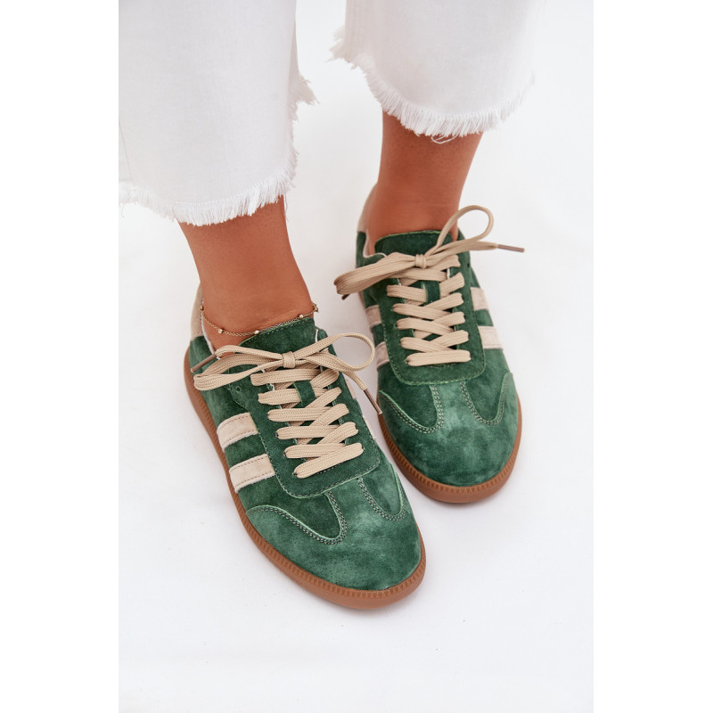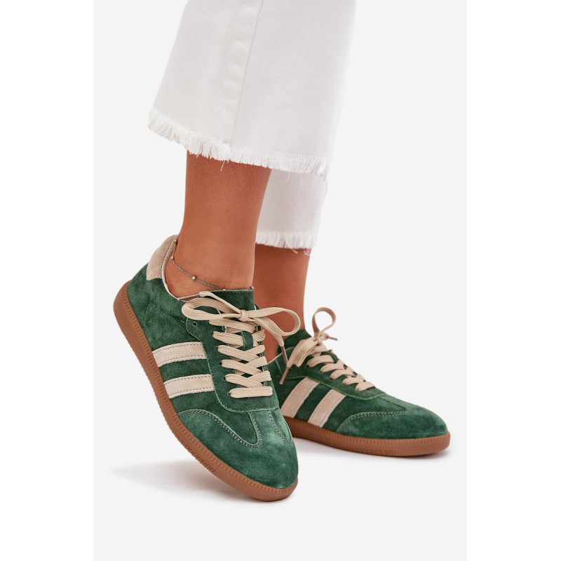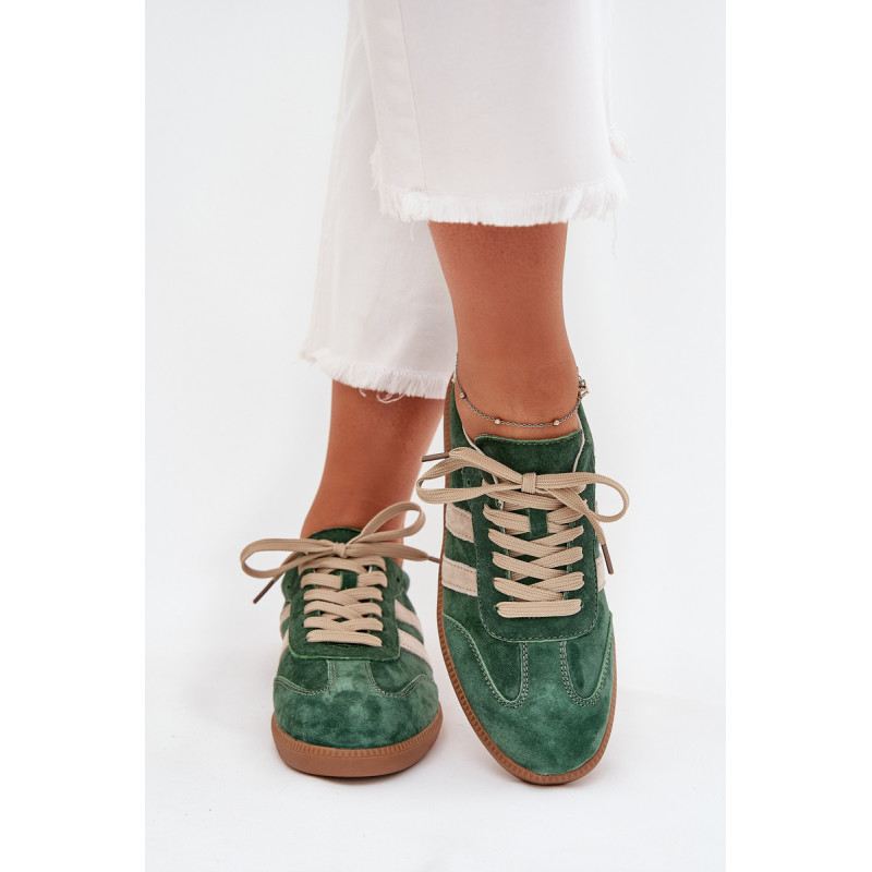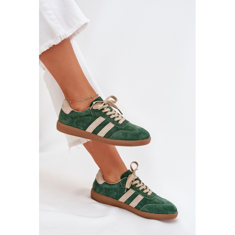 Moteriški sportbačiai, pagaminti iš natūralios zomšos, su žemu užkulniu, derina eleganciją ir komfortą. Klasikinis raištelis leidžia puikiai pritaikyti, o apvalūs pirštai suteikia batams subtilumo. Oda, minkšta pado vidinė dalis užtikrina komfortą visą dieną, o stilingas dizainas leidžia sportbačius derinti prie daugelio skirtingų stilių - nuo kasdienių iki elegantiškesnių. Idealiai tinka kasdieniam dėvėjimui. Renkantis dydį, vadovaukitės dydžių lentele.