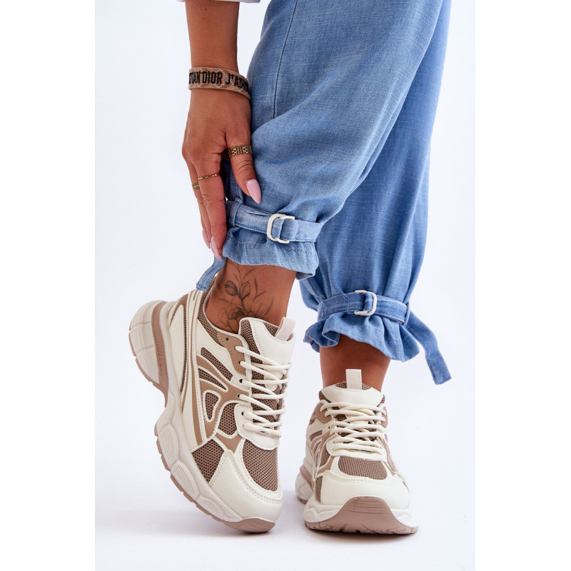 Moteriški sportiniai batai buvo pagaminti iš ekologiškos odos ir tinklinės tekstilės medžiagos derinio. Klasikinis suvarstomas modelis leis tinkamai pritaikyti batą prie kojos storio. Batai pastatyti ant masyvios platformos plokščiu kulnu ir neslystančiu padu. Medžiaginis vidpadis užtikrins patogų batų naudojimą. Šie madingi sportbačiai tikrai bus puikus daugelio drabužių priedas! Rinkdamiesi dydį, vadovaukitės dydžių lentele.