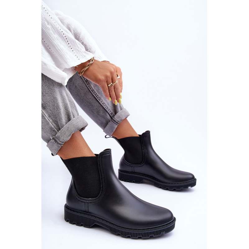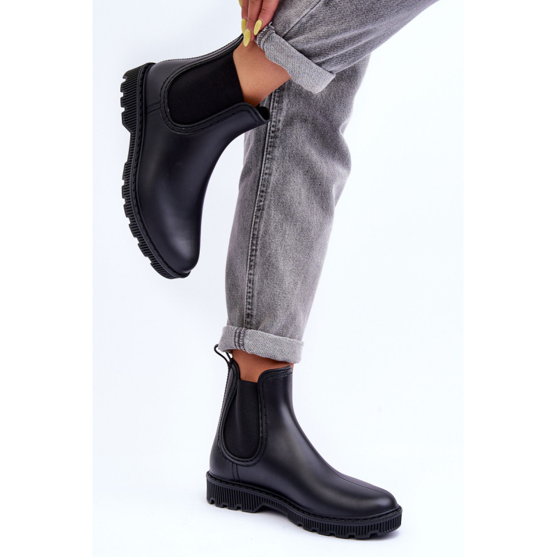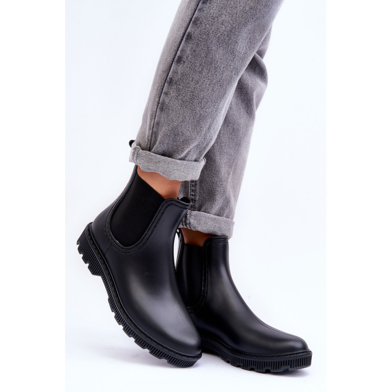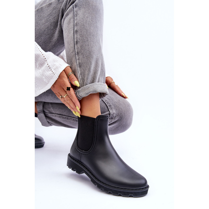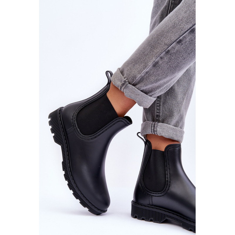 Klasikiniai, matiniai moteriški kaliošai buvo pagaminti iš guminės medžiagos. Batai buvo pastatyti ant plokščio kulno. Slip-on modelis su medžiaginiu vidpadžiu. Puikiai tinka lietingu oru! Renkantis dydį, vadovaukitės dydžių lentele.