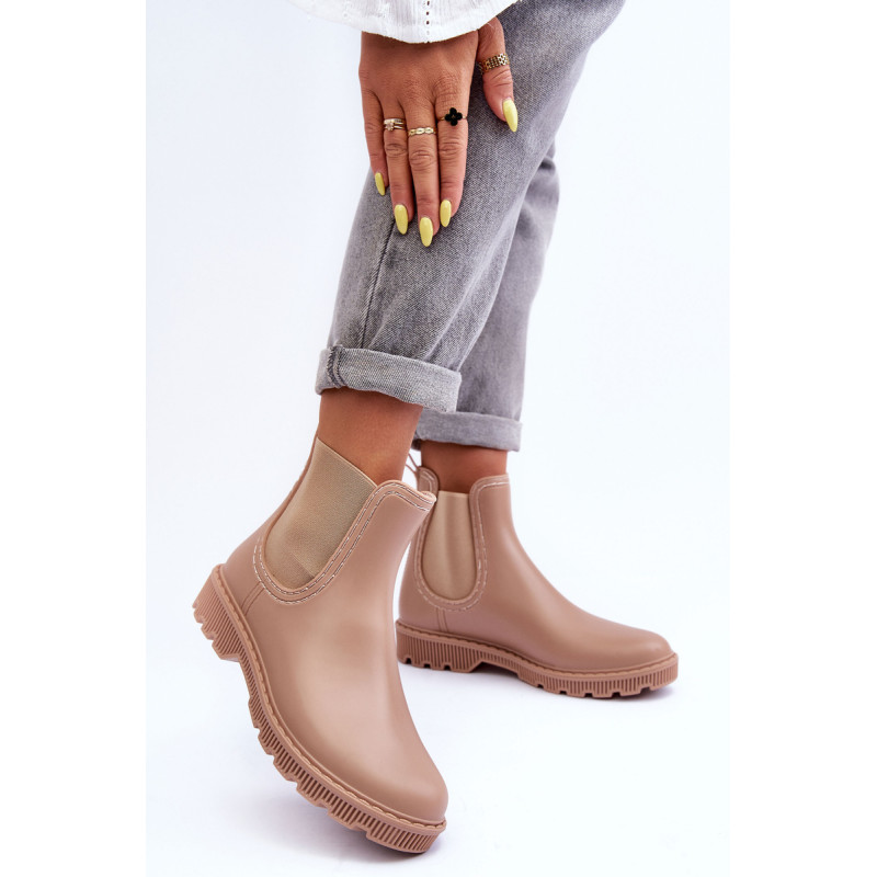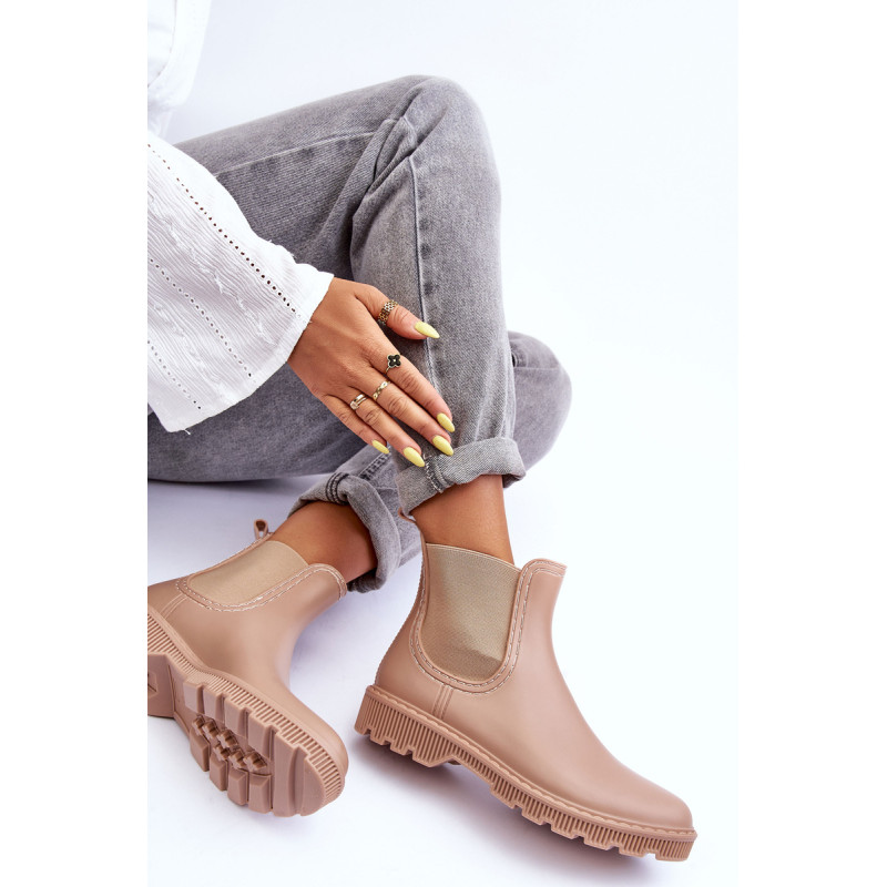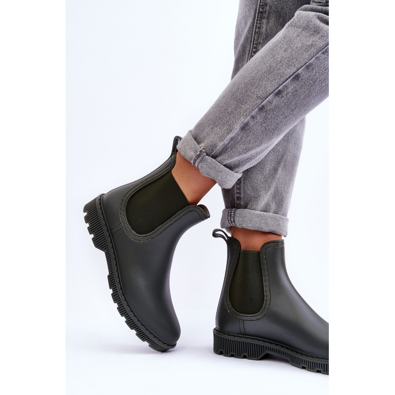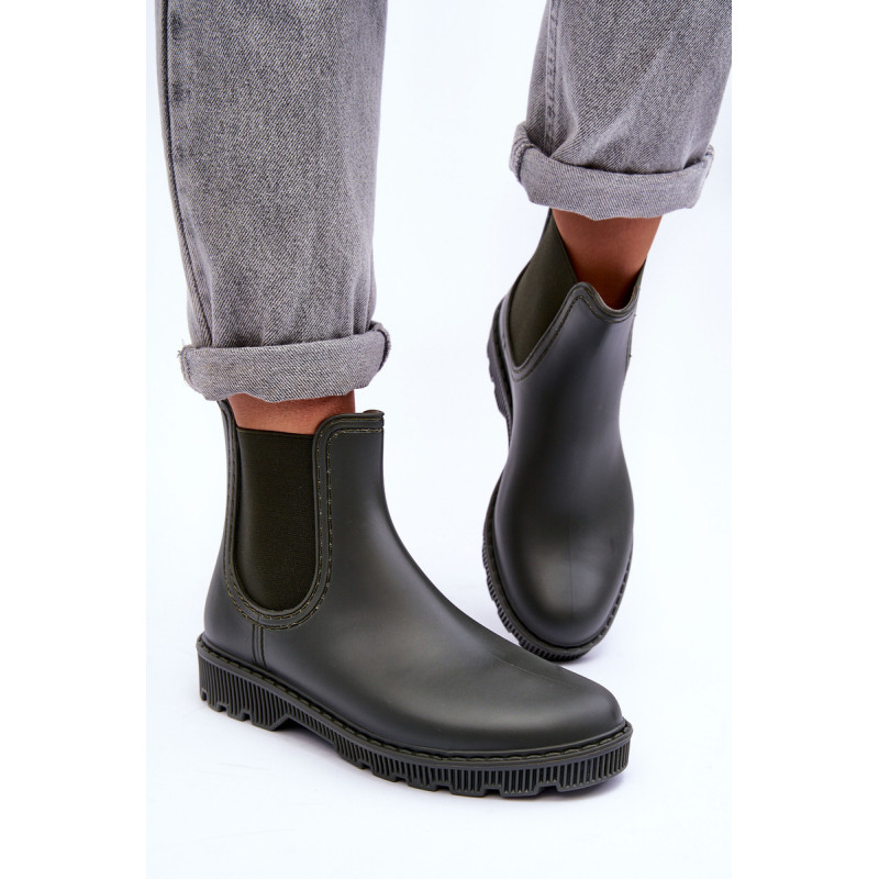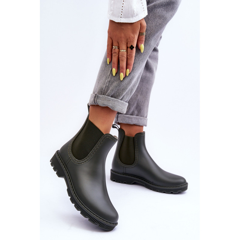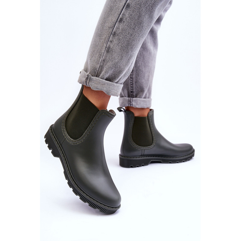 Klasikiniai, matiniai moteriški kaliošai buvo pagaminti iš guminės medžiagos. Batai buvo pastatyti ant plokščio kulno. Slip-on modelis su medžiaginiu vidpadžiu. Puikiai tinka lietingu oru! Renkantis dydį, vadovaukitės dydžių lentele.