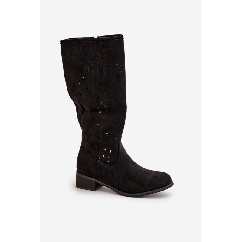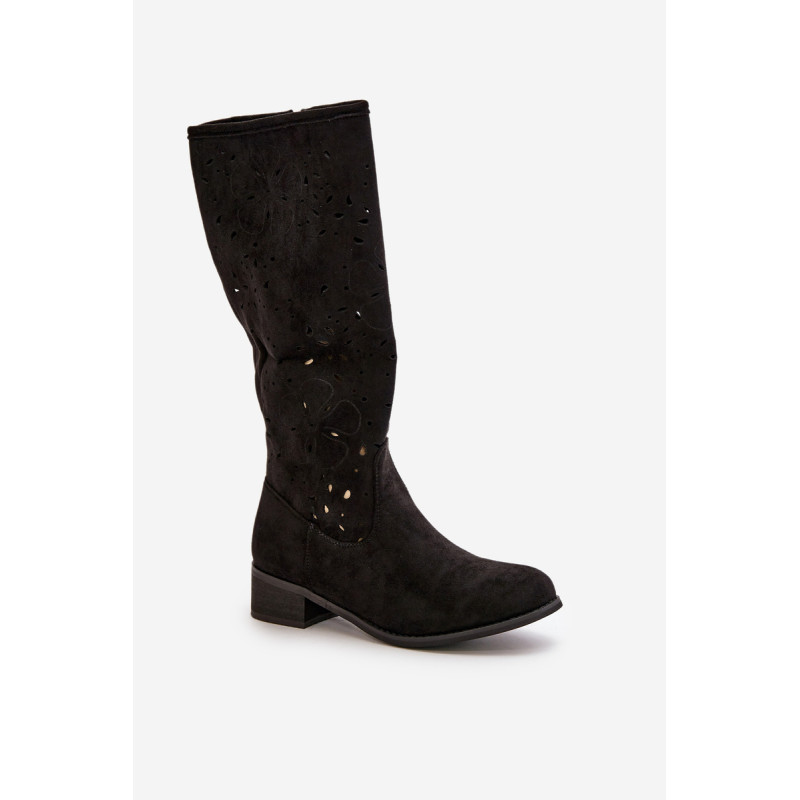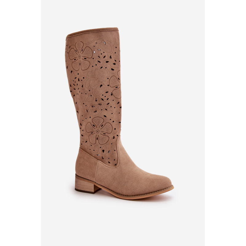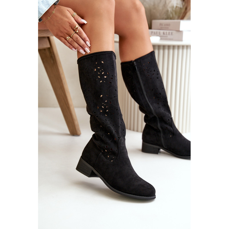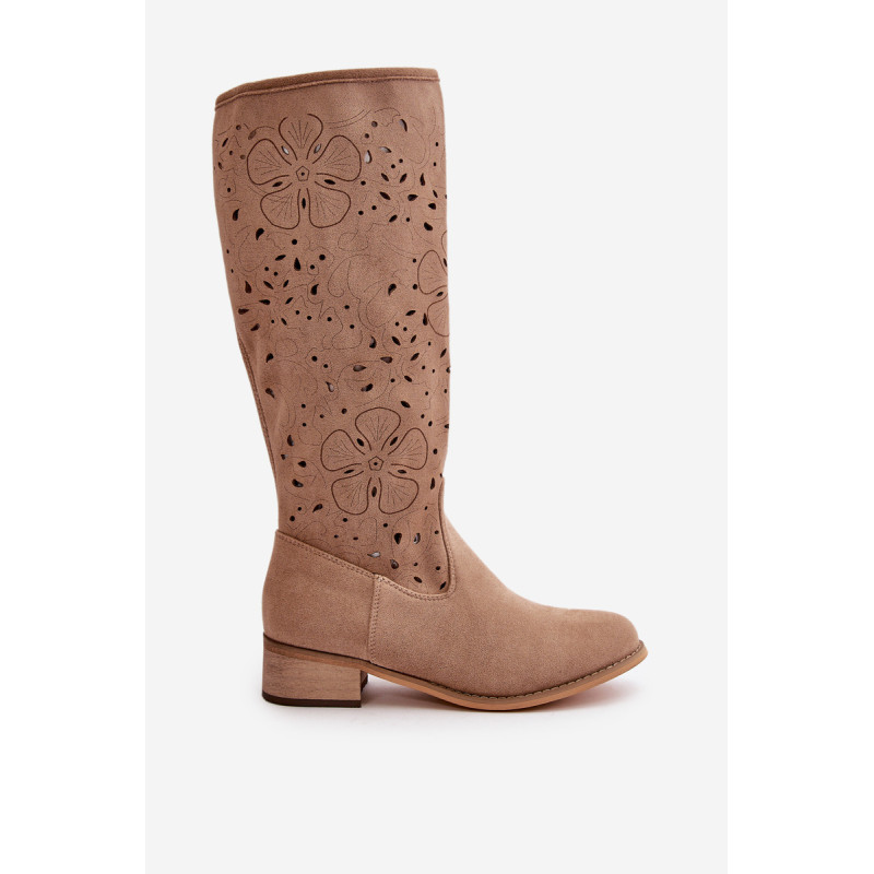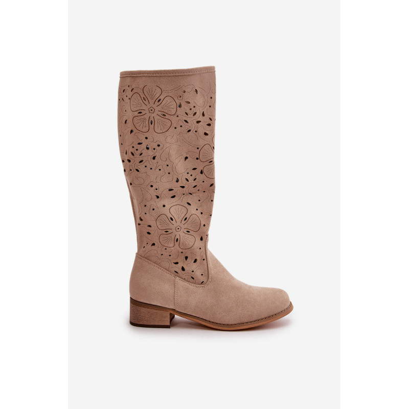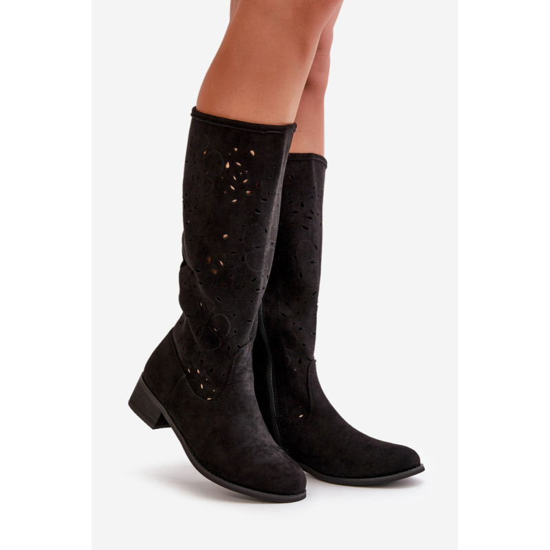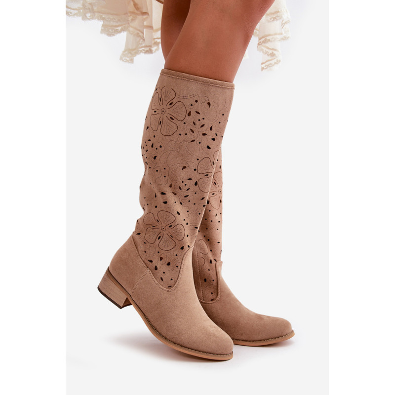 Moteriški batai, pagaminti iš aukštos kokybės ekologiškos zomšos. Viršutinė dalis siekia virš kelių, o jos įmantrus raštas suteikia batams unikalumo. Užsegamas užtrauktuku, kuris palengvina užsidėjimą ir nusiėmimą. Ant žemo kulno, kuris garantuoja komfortą visą dieną. Pirštai suapvalinti. Sustiprintas kulnas suteikia papildomos atramos ir stabilumo. Šie batai puikiai tinka tiek prie laisvalaikio, tiek prie elegantiškesnio stiliaus. Rinkdamiesi dydį, žiūrėkite dydžių lentelę.