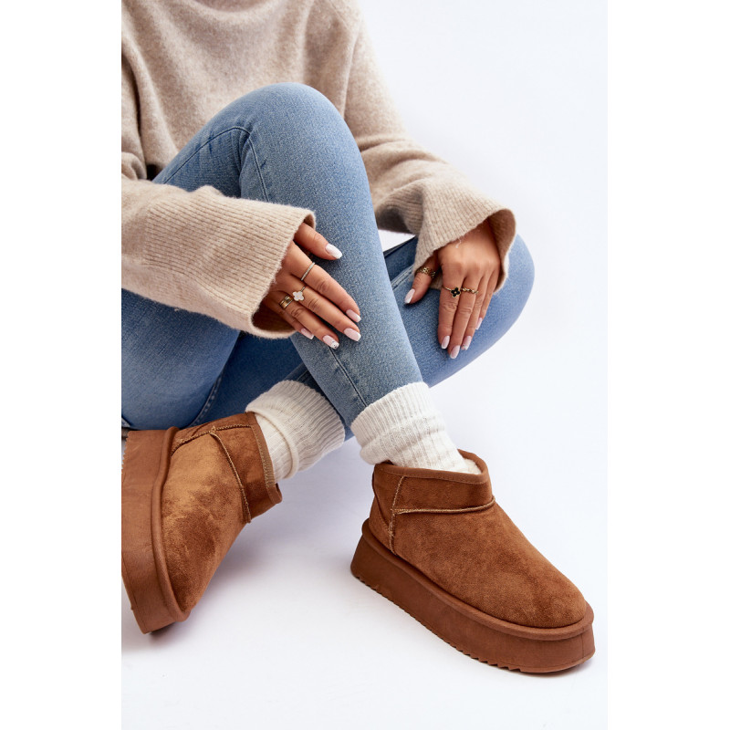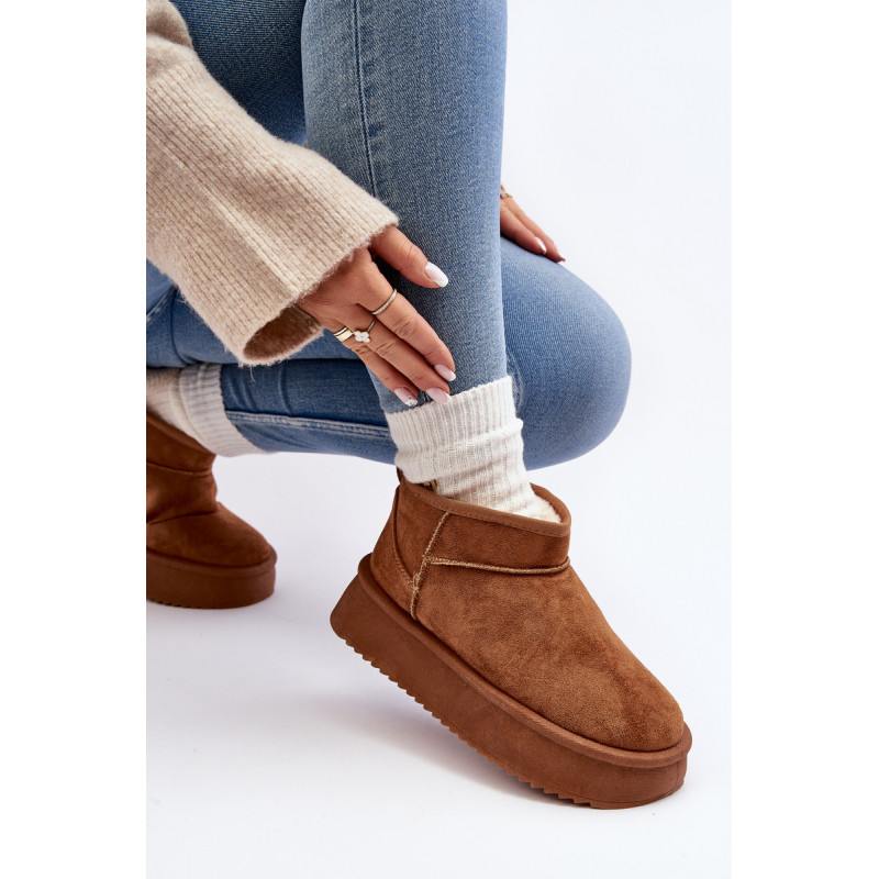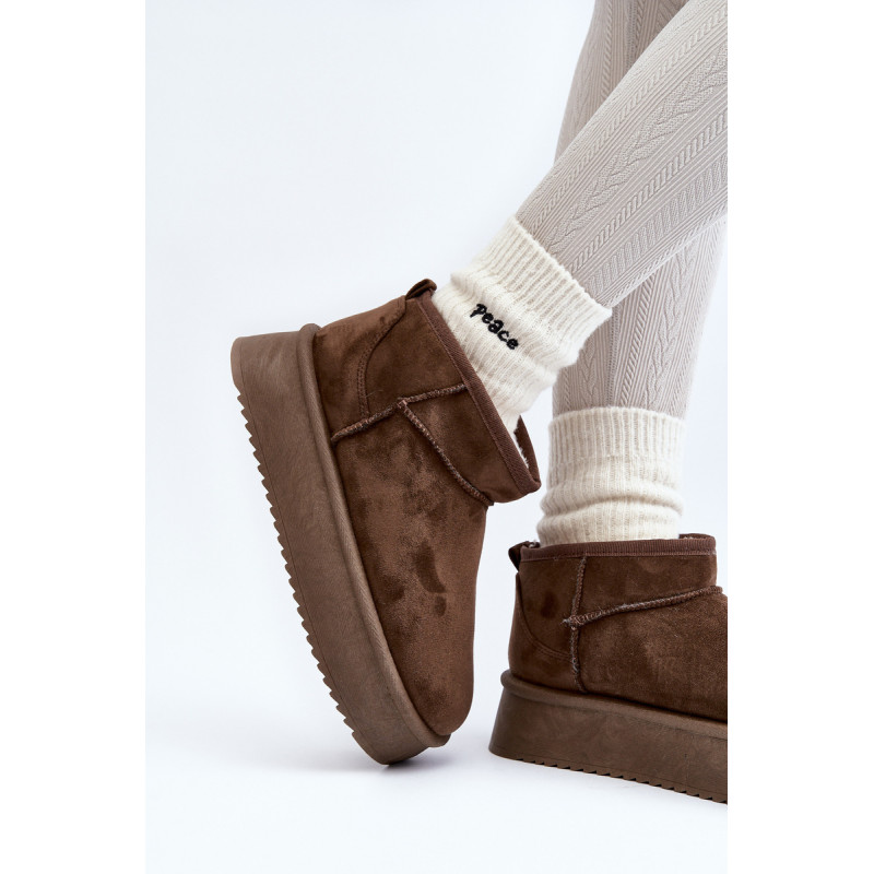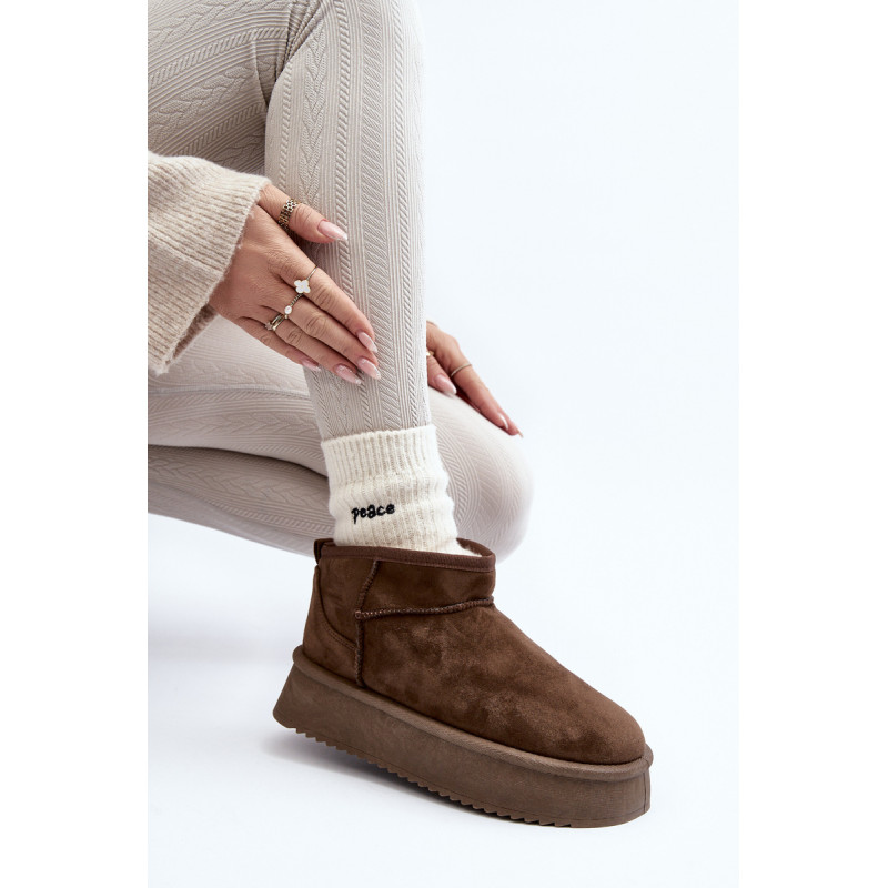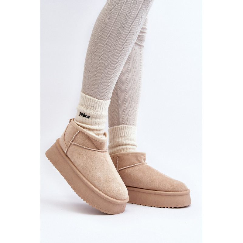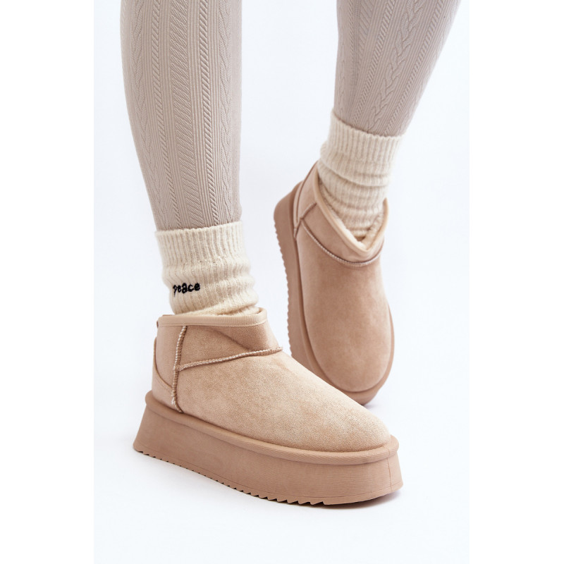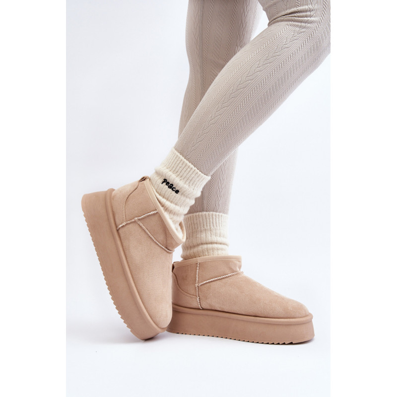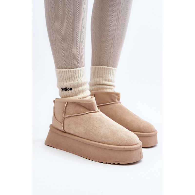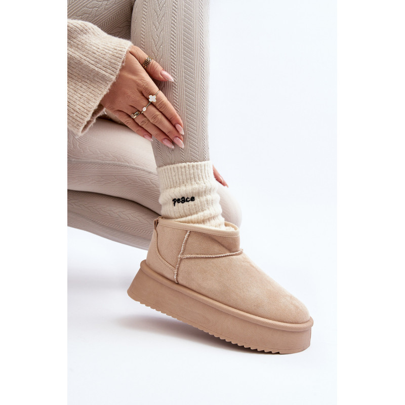 Madingi moteriški sniego batai, pagaminti iš ekologiškos zomšos. Pastatytas ant masyvios platformos, pagamintos iš guminės medžiagos. Viršutinė dalis virš kulkšnies. Vidus išklotas storu kailiu. Jūs tikrai turite juos turėti! Rinkdamiesi dydį, žiūrėkite dydžių lentelę.