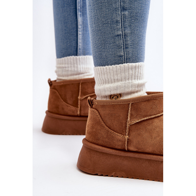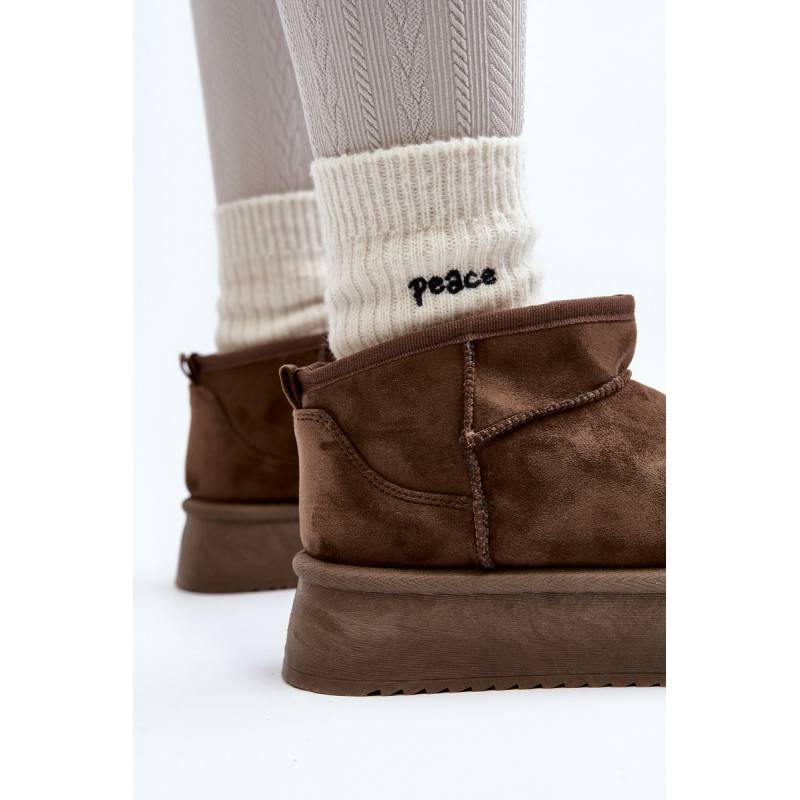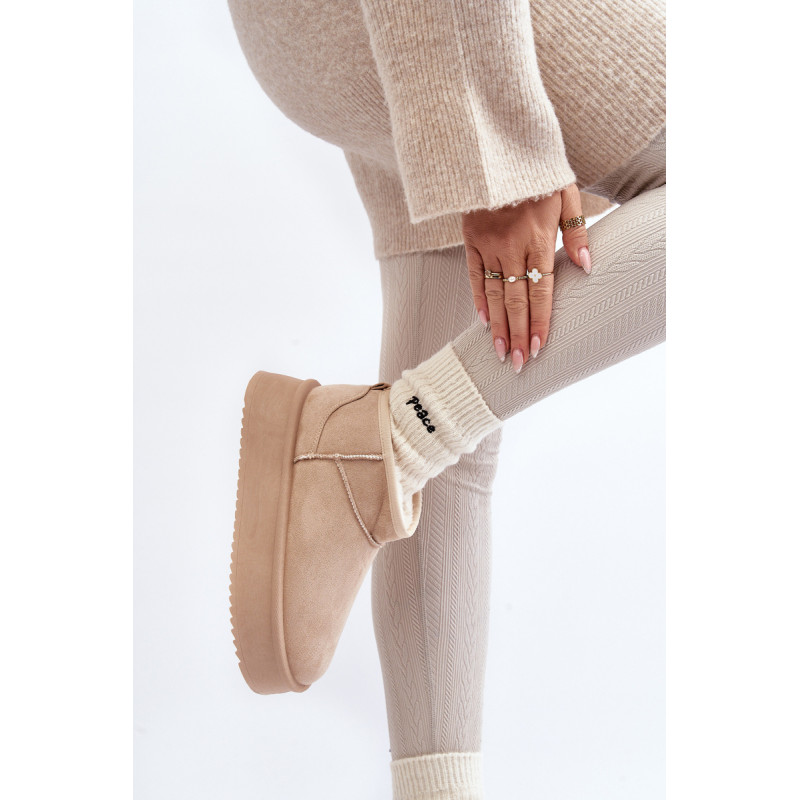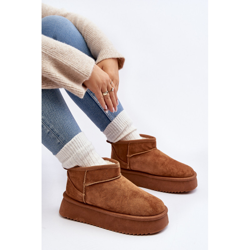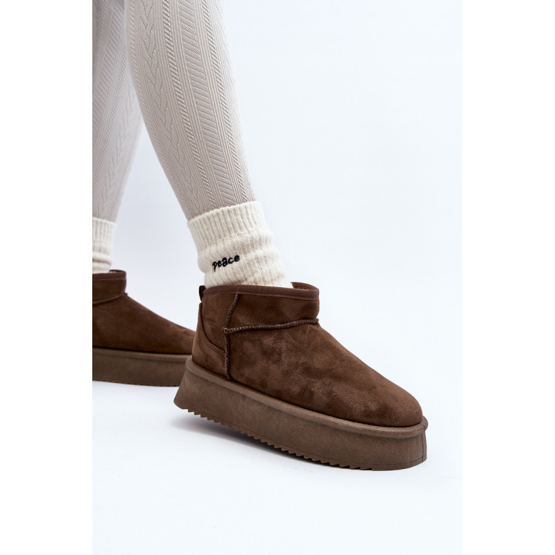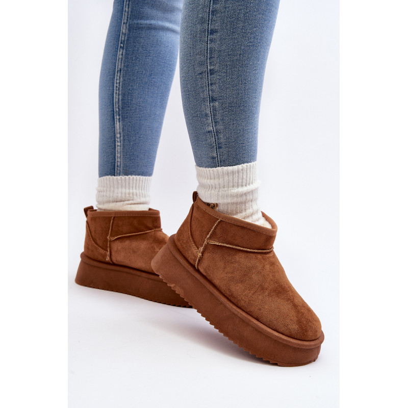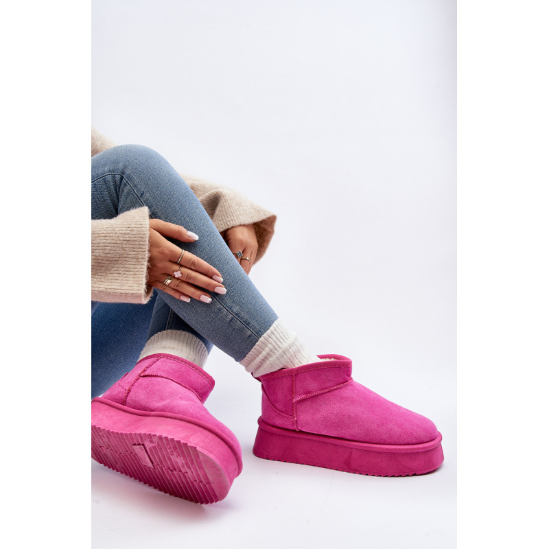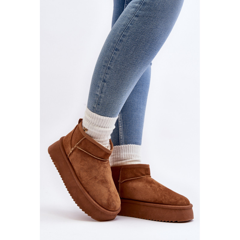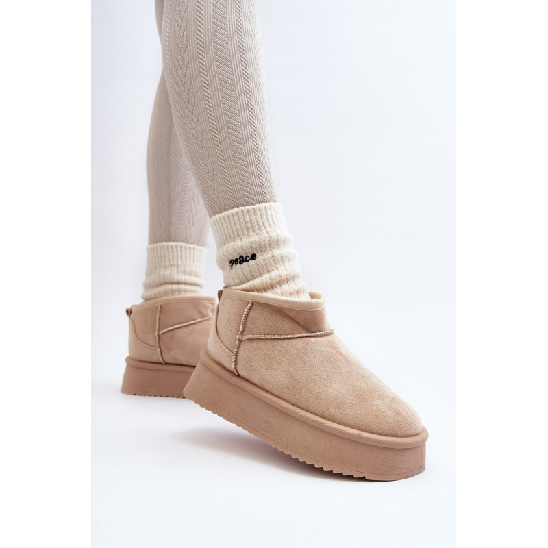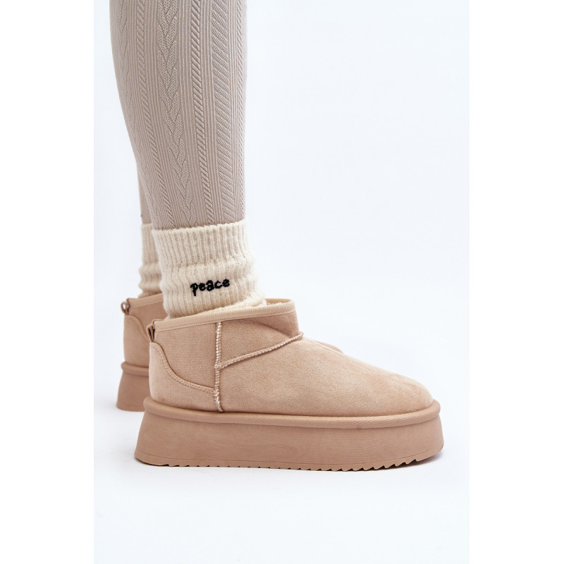 Madingi moteriški sniego batai, pagaminti iš ekologiškos zomšos. Pastatytas ant masyvios platformos, pagamintos iš guminės medžiagos. Viršutinė dalis virš kulkšnies. Vidus išklotas storu kailiu. Jūs tikrai turite juos turėti! Rinkdamiesi dydį, žiūrėkite dydžių lentelę.