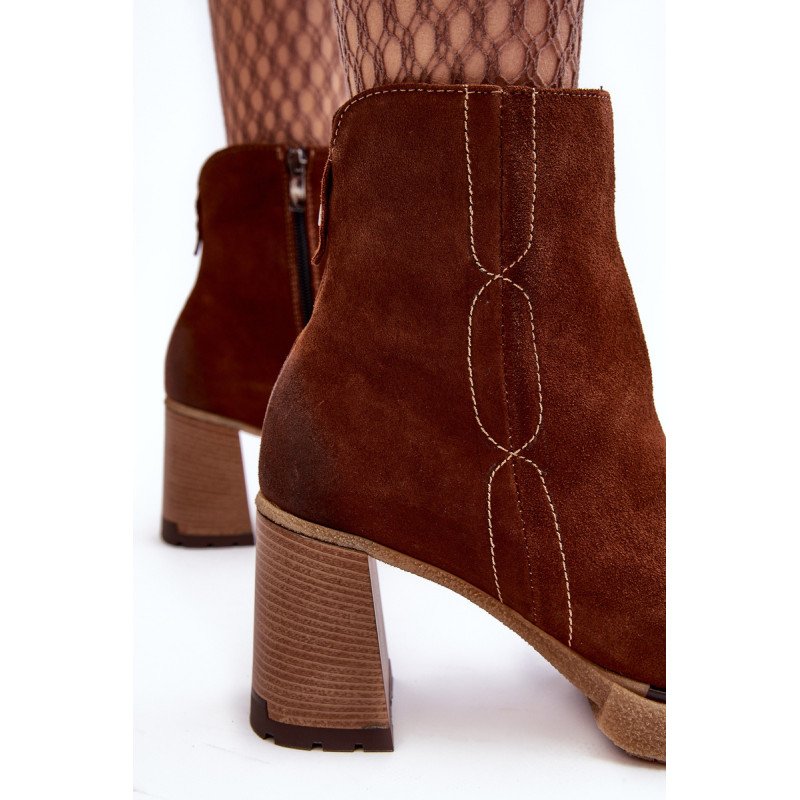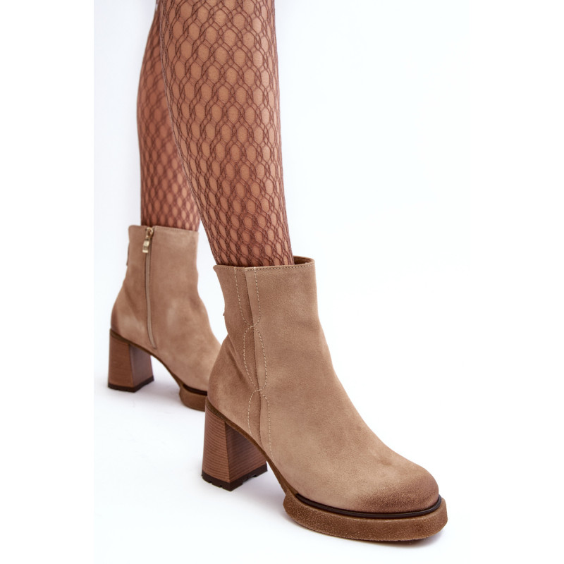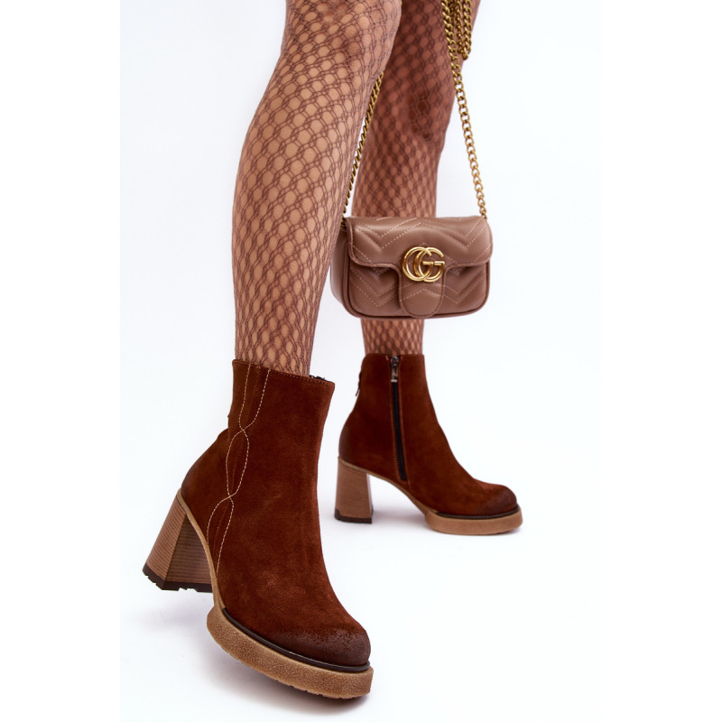 Moteriški batai iš natūralios odos. Nustatykite ant kulno stulpelio pavidalu. Vidus išklotas batų pamušalu. Šis modelis šone užsegamas užtrauktuku. Apvalūs kojų pirštai. Sutvirtintas pirštų dangtelis. Jie puikiai tiks prie rudens-žiemos aprangos. Rinkdamiesi dydį, vadovaukitės dydžių lentele.