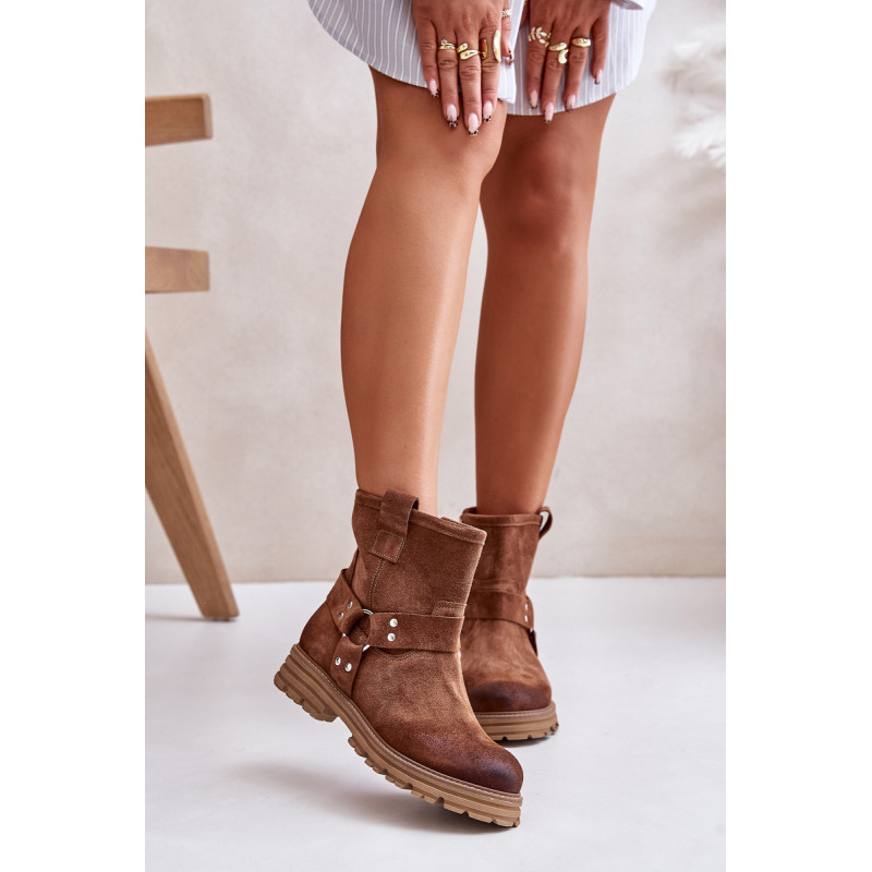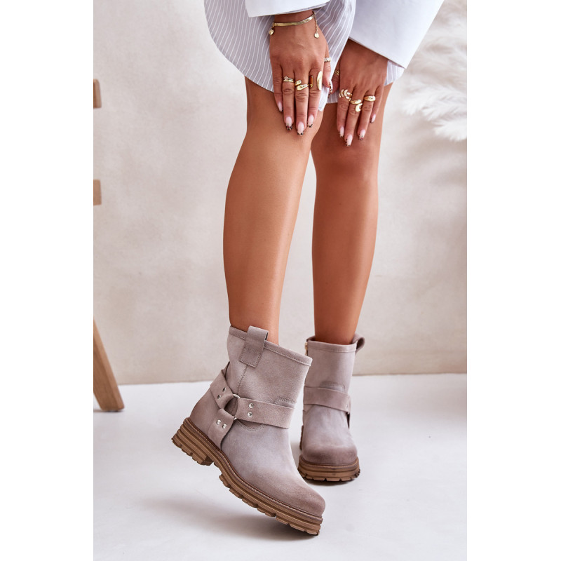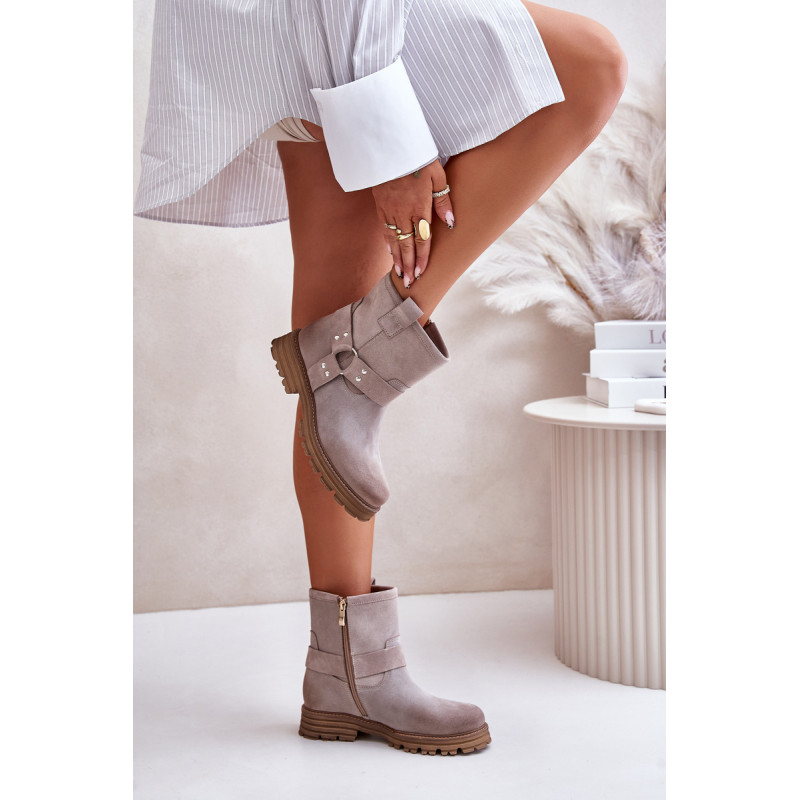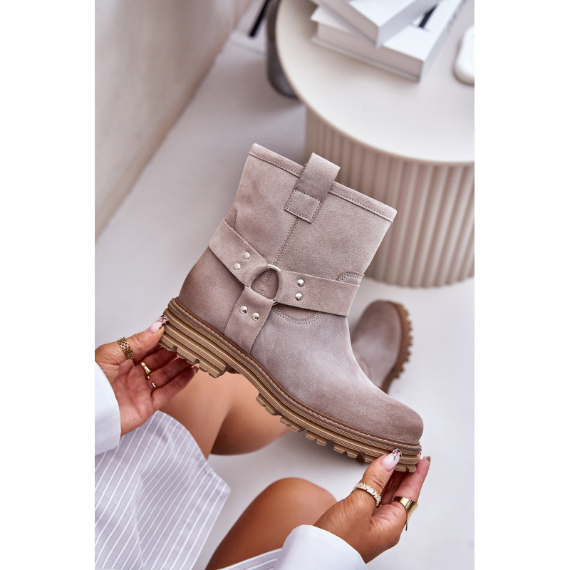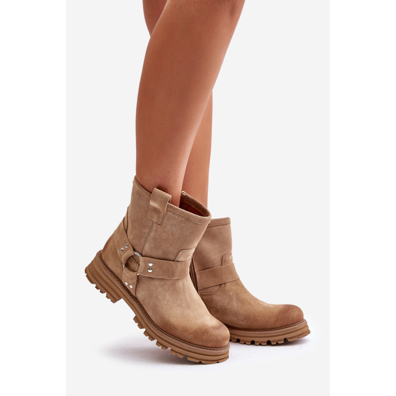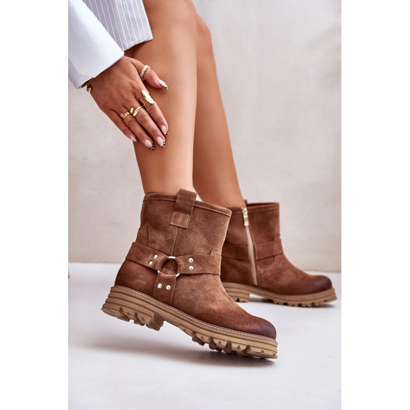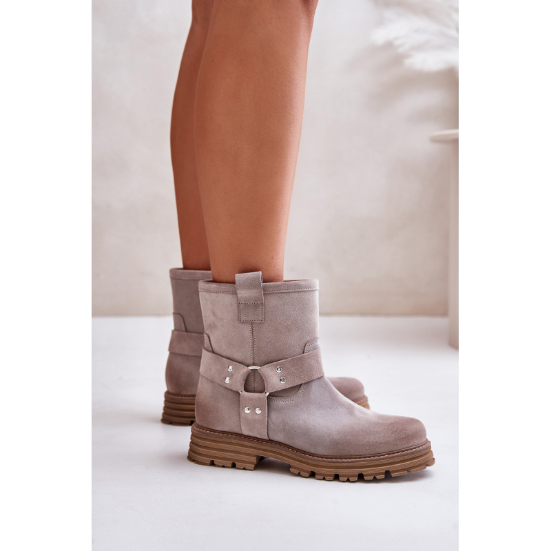 Iš natūralios zomšos pagaminti batai yra puikus pasirinkimas bet kokiai progai. Nustatyti ant plokščio kulno, suteikia komforto ir stabilumo einant. Suapvalinti kojų pirštai suteikia subtilaus charakterio. Modelis užsegamas užtrauktuku, todėl patogu užsidėti. Viršutinę dalį puošia akį traukiantis petnešėlių derinys, suteikiantis stilingo akcento. Šie batai puikiai tiks prie kasdienės aprangos, derindami eleganciją ir patogumą. Rinkdamiesi dydį, žiūrėkite dydžių lentelę.