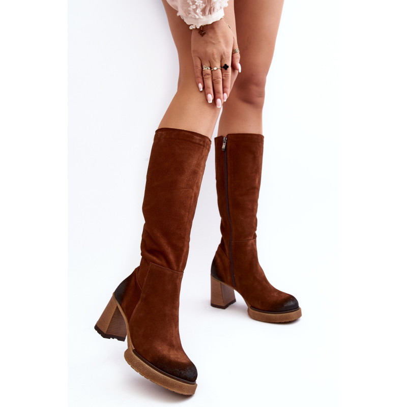 Moteriški batai buvo pagaminti iš aukštos kokybės natūralios zomšos. Nustatyti ant platformos ir stileto formos kulno. Šis modelis užsegamas užtrauktuku viršutinės dalies šone. Kojos pirštas sustingęs. Vidus apšiltintas batų pamušalu. Antgaliai suapvalinti. Šį modelį būtinai turite turėti savo drabužių spintoje! Rinkdamiesi dydį, vadovaukitės dydžių lentele.