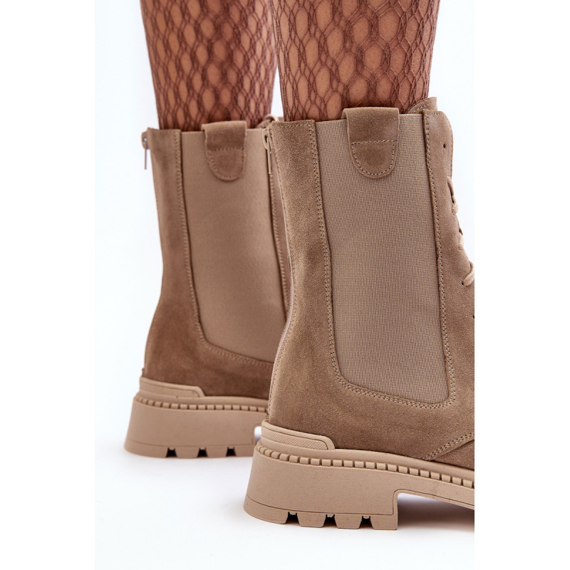 Moteriški dirbiniai iš natūralios zomšos odos. Nustatykite ant plokščio kulno ir platformos. Viršuje elastiniai įdėklai ir užtrauktukas nugaroje. Suapvalinti kojų pirštai. Odinis vidpadis leidžia patogiai dėvėti avalynę. Renkantis dydį, vadovaukitės dydžių lentele.