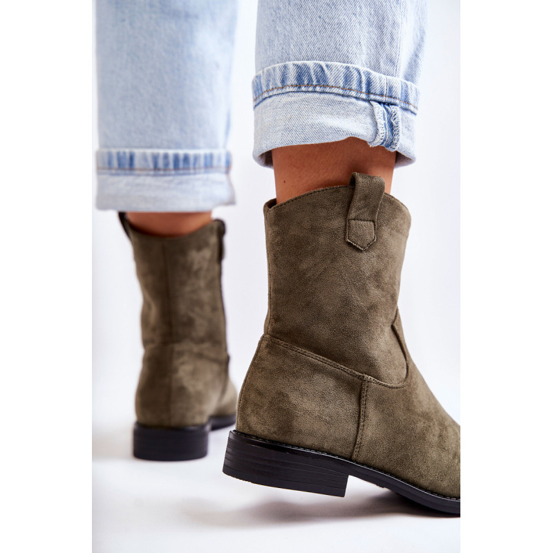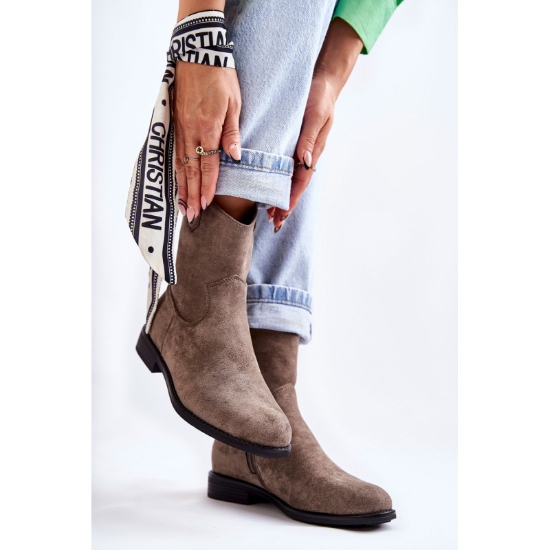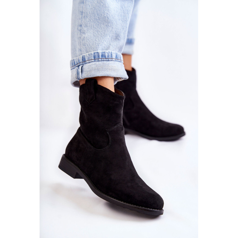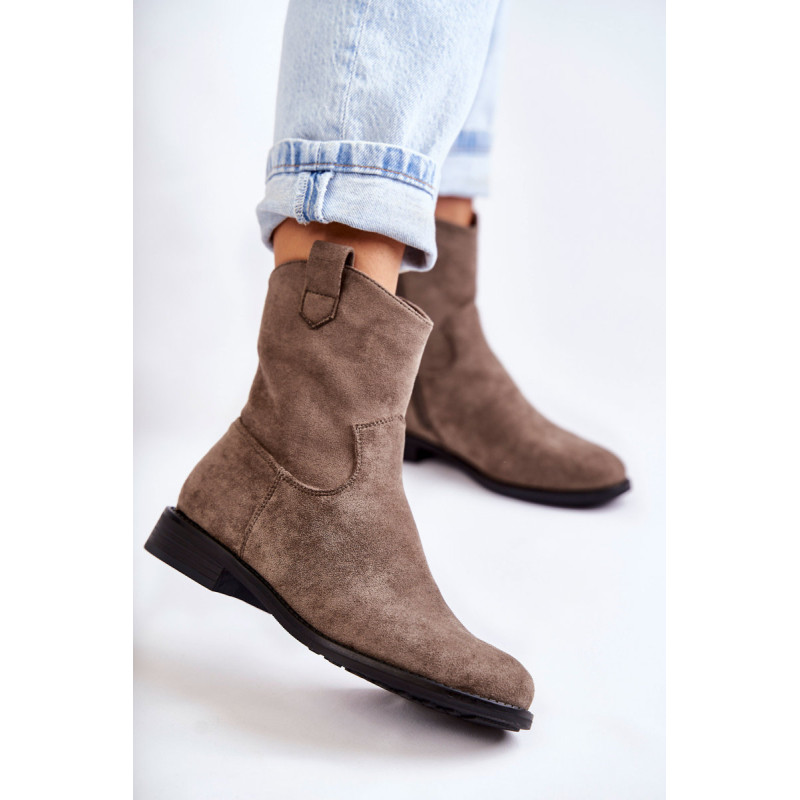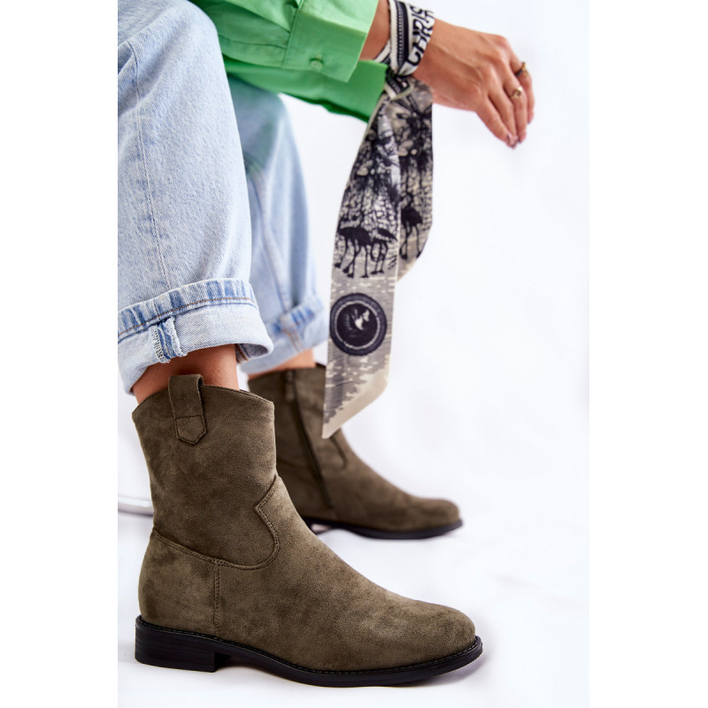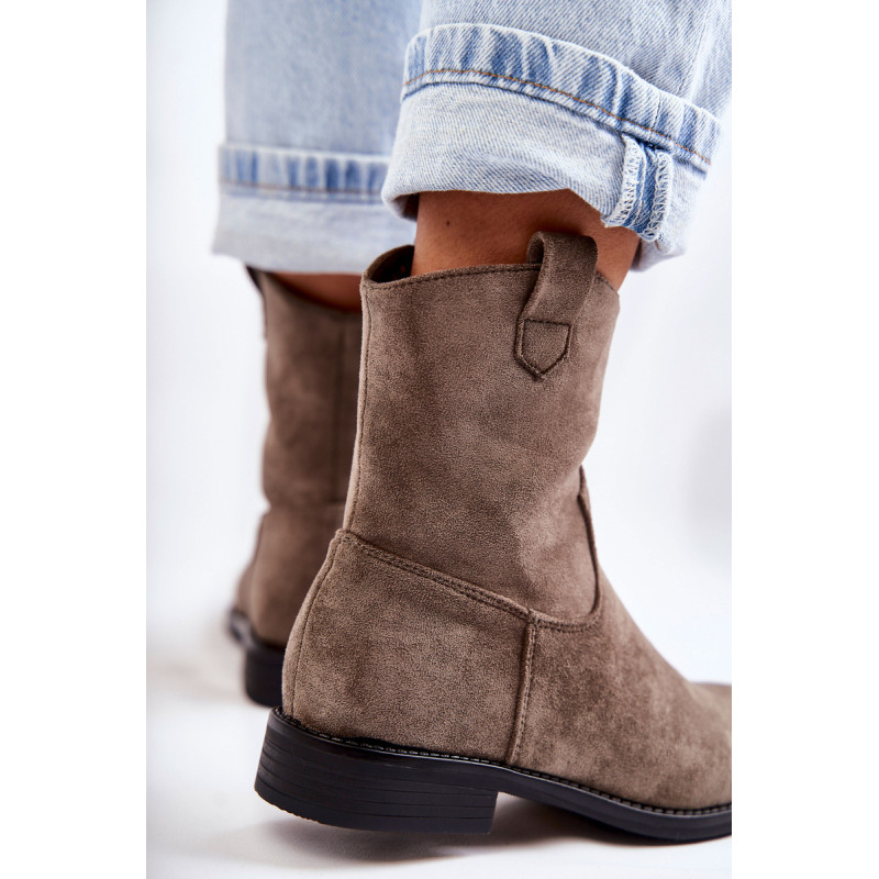 Klasikiniai moteriški batai yra pagaminti iš malonios liesti ekologiškos zomšos. Viršutinė dalis turi subtilių siūlių. Šiame modelyje yra kilpa, kuri palengvina batų avimą išorėje. Batai taip pat turi užtrauktuką. Nustatykite ant plokščio kulno. Jie turi standintą kulną ir eko odos įdėklą. Renkantis dydį, naudokite dydžių lentelę.