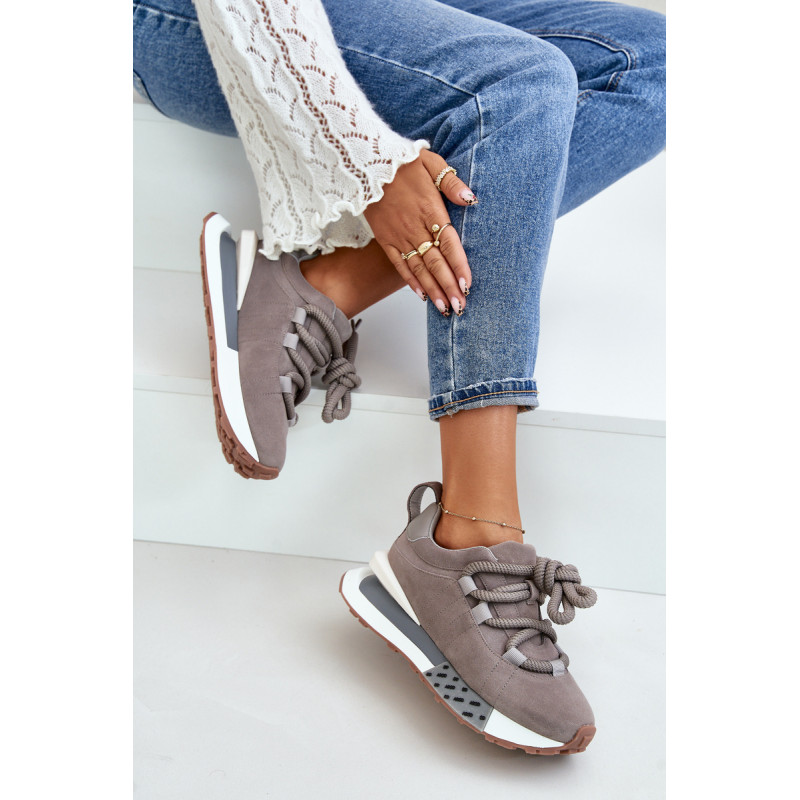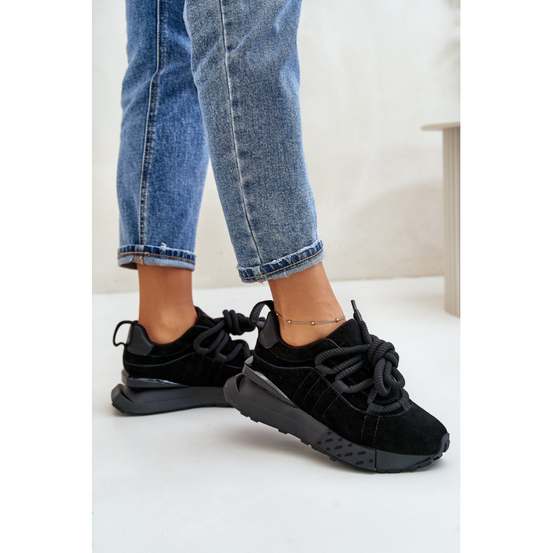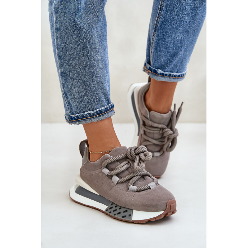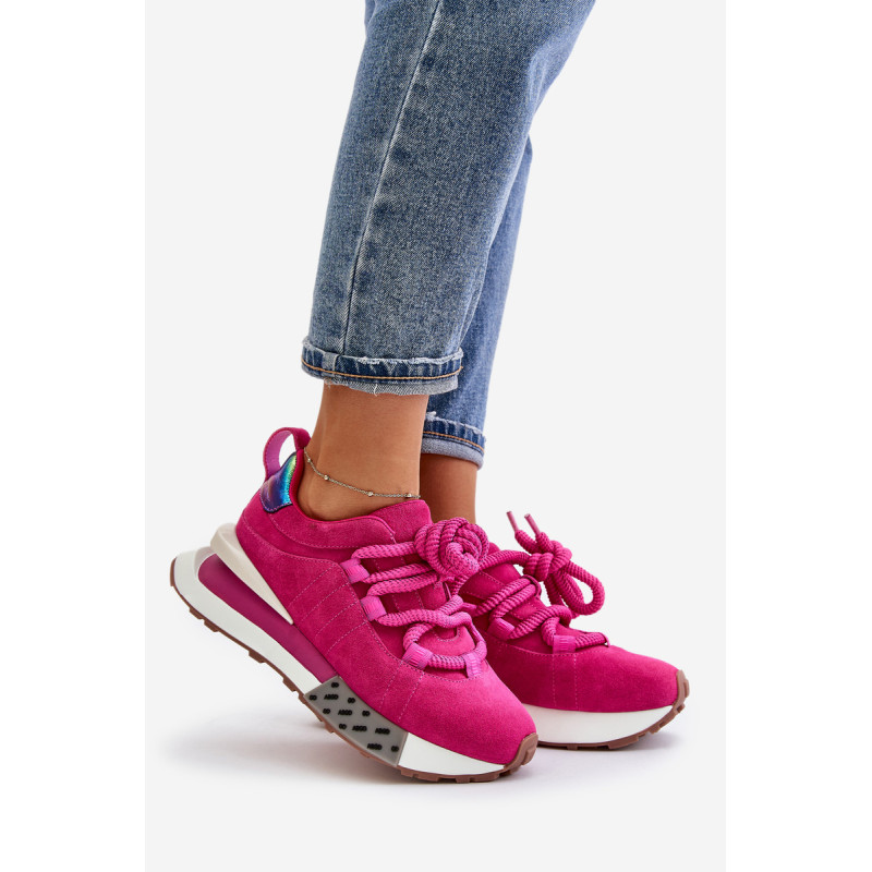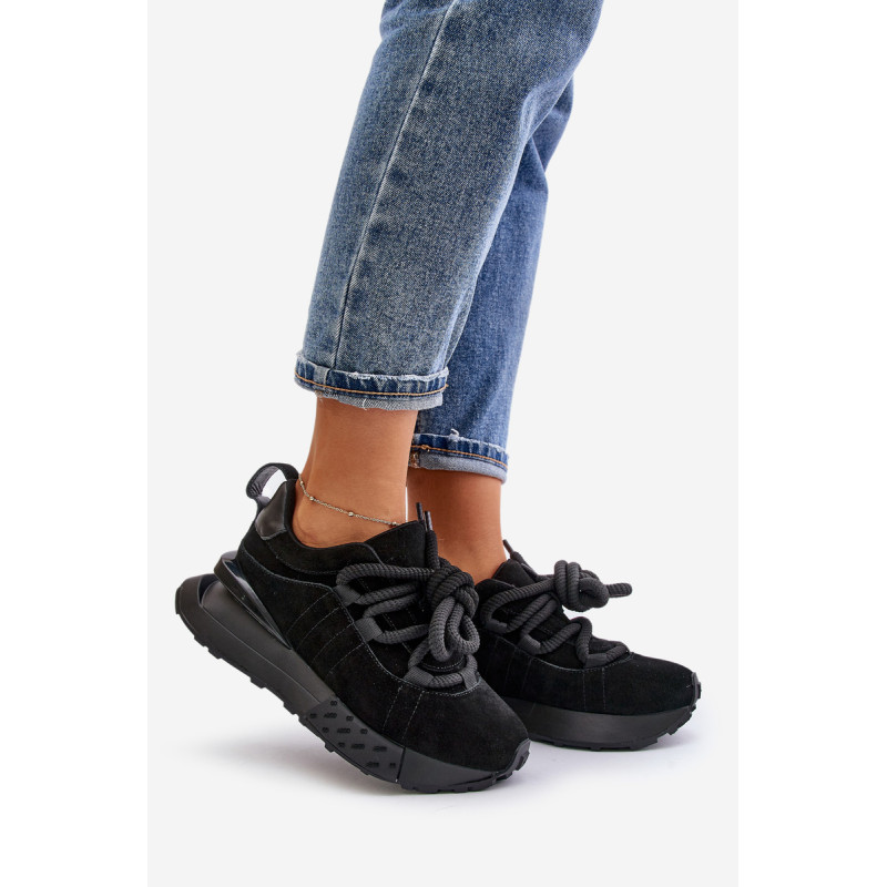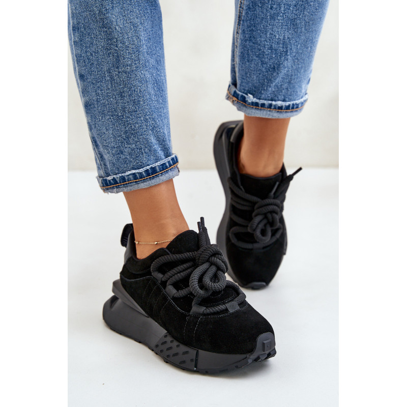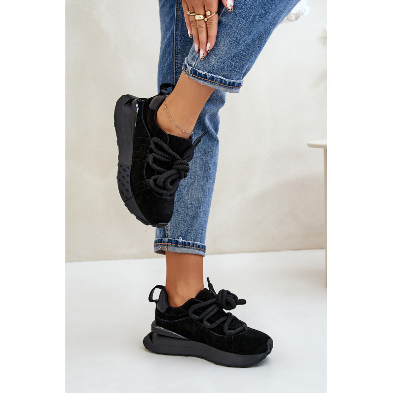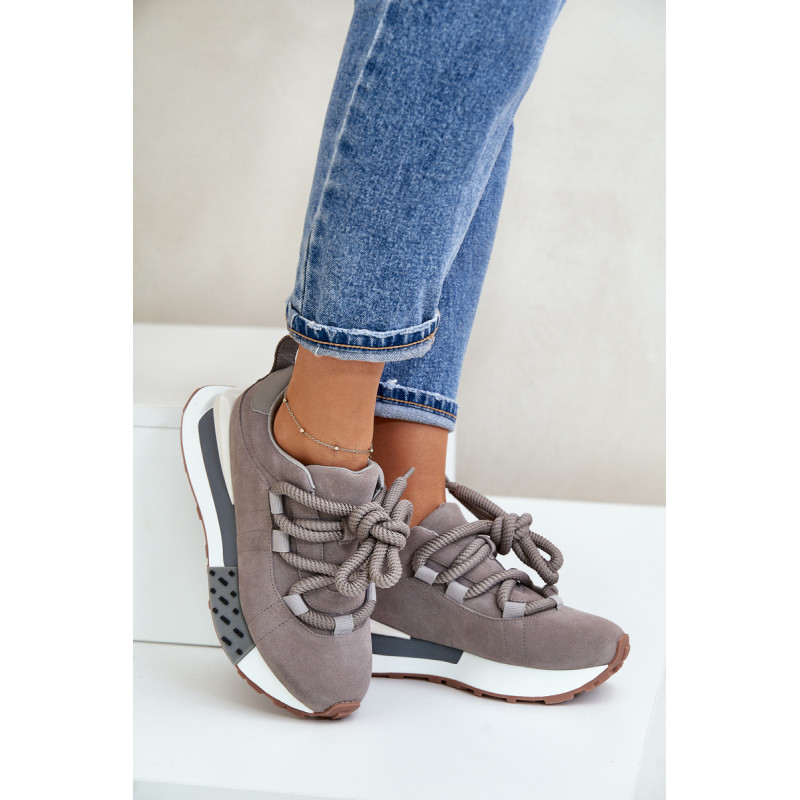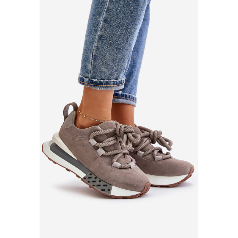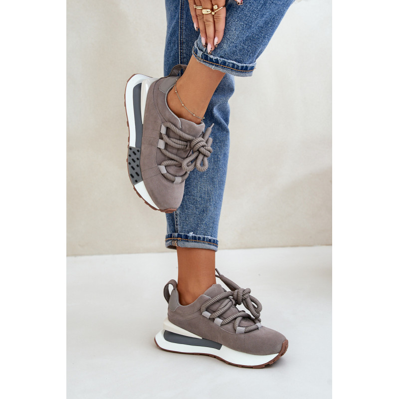 Moteriški sportbačiai iš natūralios zomšos. Nustatyti ant platformos. Šis modelis pasižymi storu raišteliu. Platforma suteikia papildomo komforto ir lengvumo einant, taip pat prideda kelių centimetrų aukščio. Puikiai tinka tiek prie kasdienės aprangos, tiek prie įprastesnių ansamblių. Pasirinkite juos, kad pabrėžtumėte savo unikalų stilių ir mėgaukitės komfortu visą dieną. Rinkdamiesi dydį, žiūrėkite dydžių lentelę.