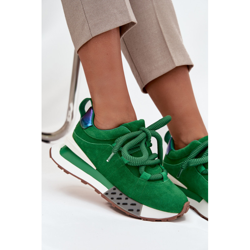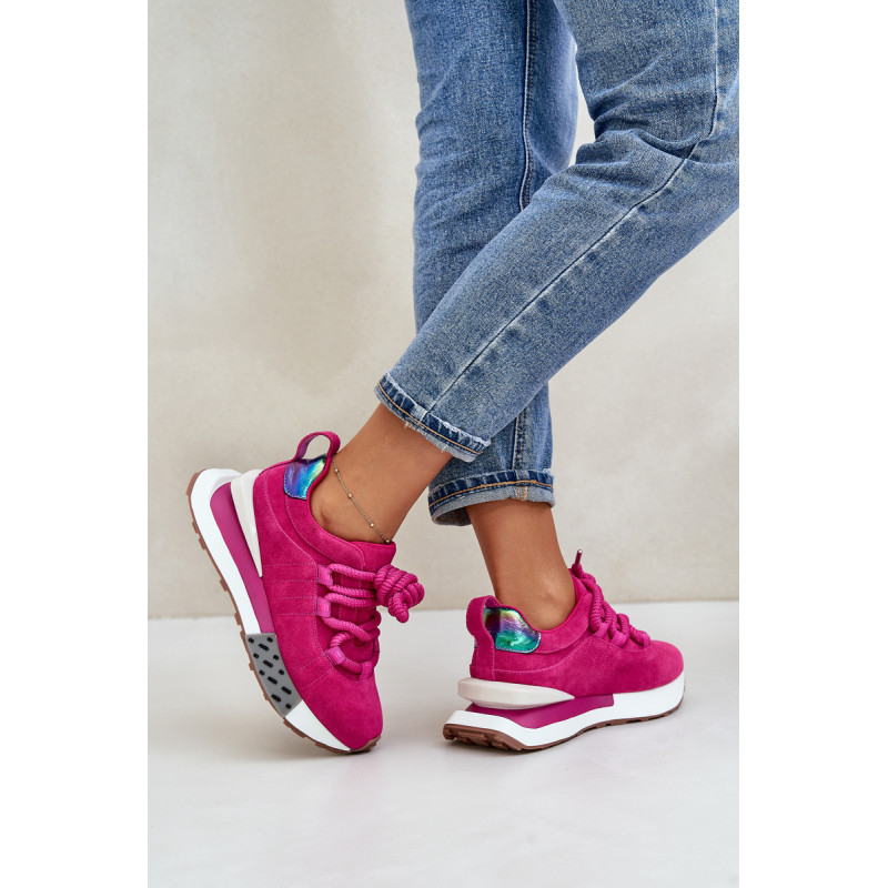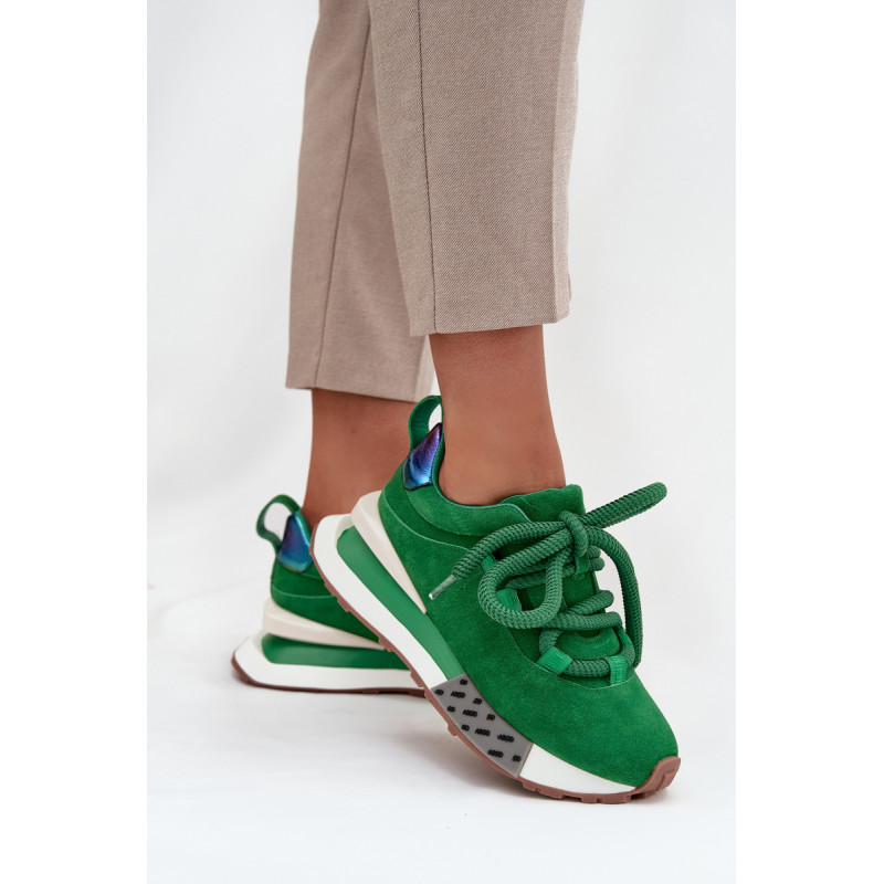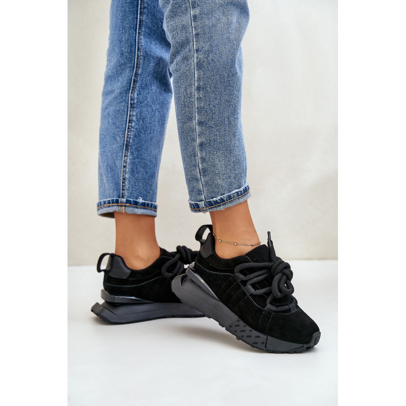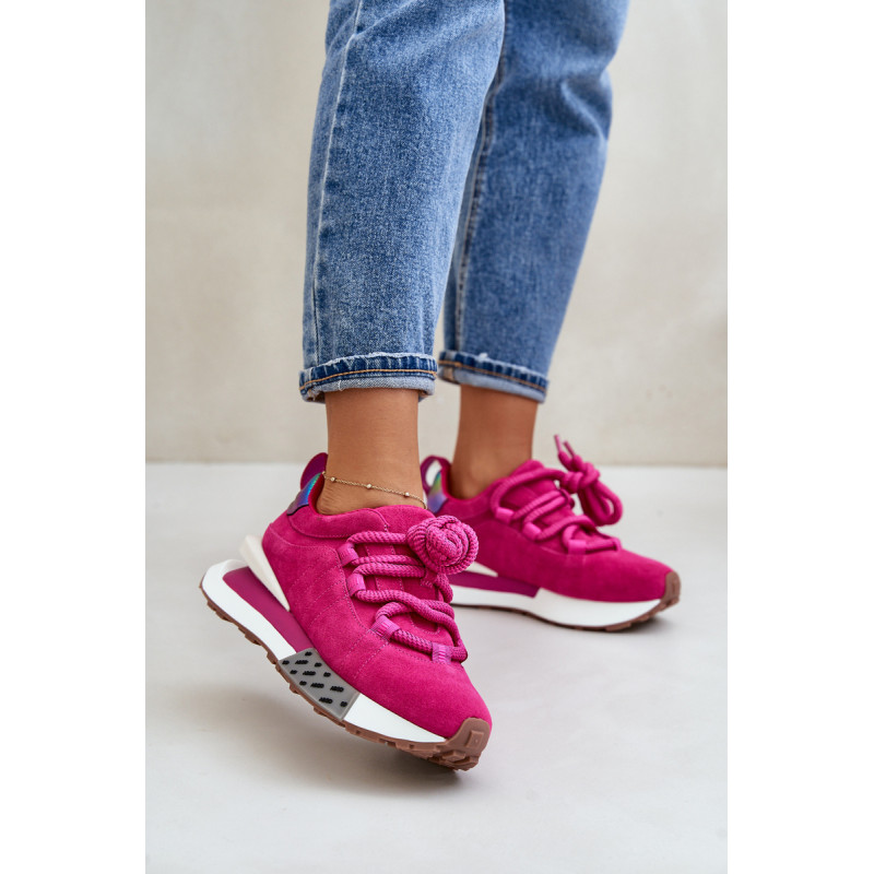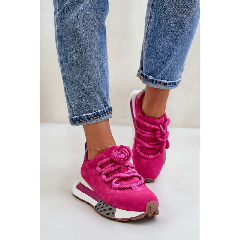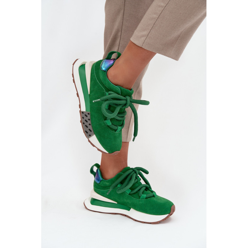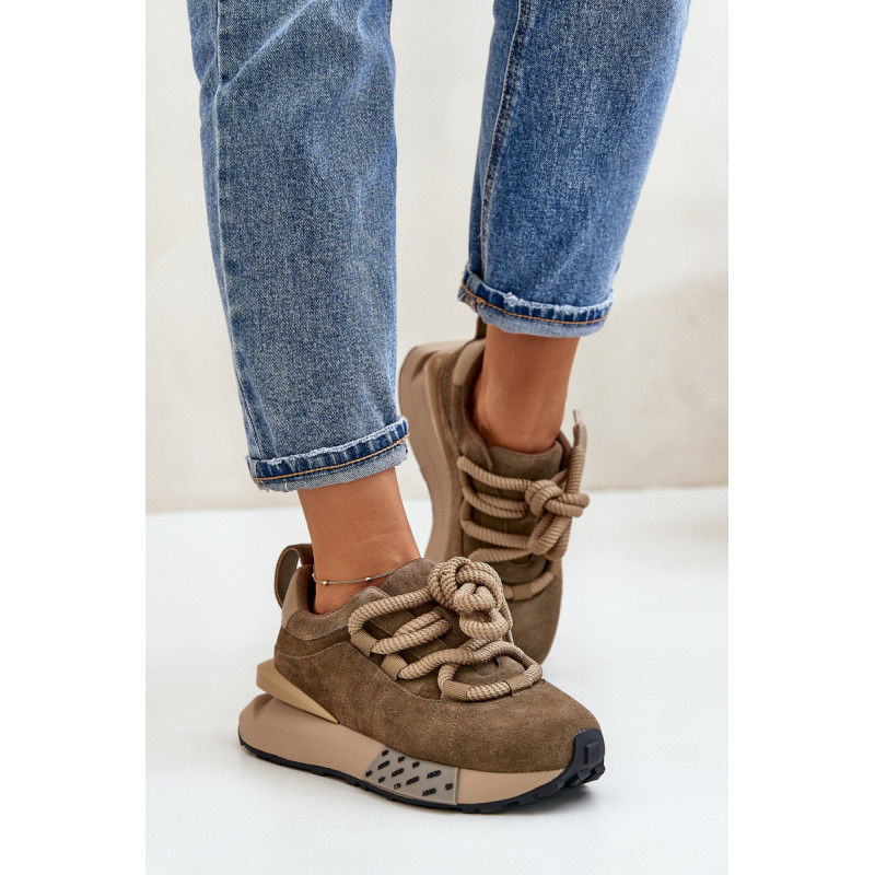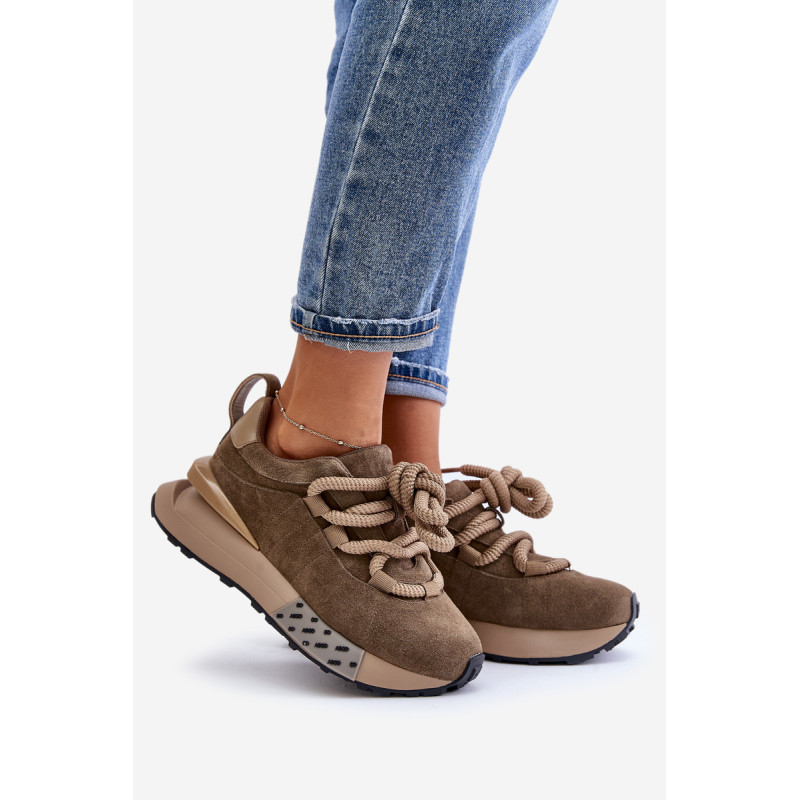 Moteriški sportbačiai iš natūralios zomšos. Nustatyti ant platformos. Šis modelis pasižymi storu raišteliu. Platforma suteikia papildomo komforto ir lengvumo einant, taip pat prideda kelių centimetrų aukščio. Puikiai tinka tiek prie kasdienės aprangos, tiek prie įprastesnių ansamblių. Pasirinkite juos, kad pabrėžtumėte savo unikalų stilių ir mėgaukitės komfortu visą dieną. Rinkdamiesi dydį, žiūrėkite dydžių lentelę.