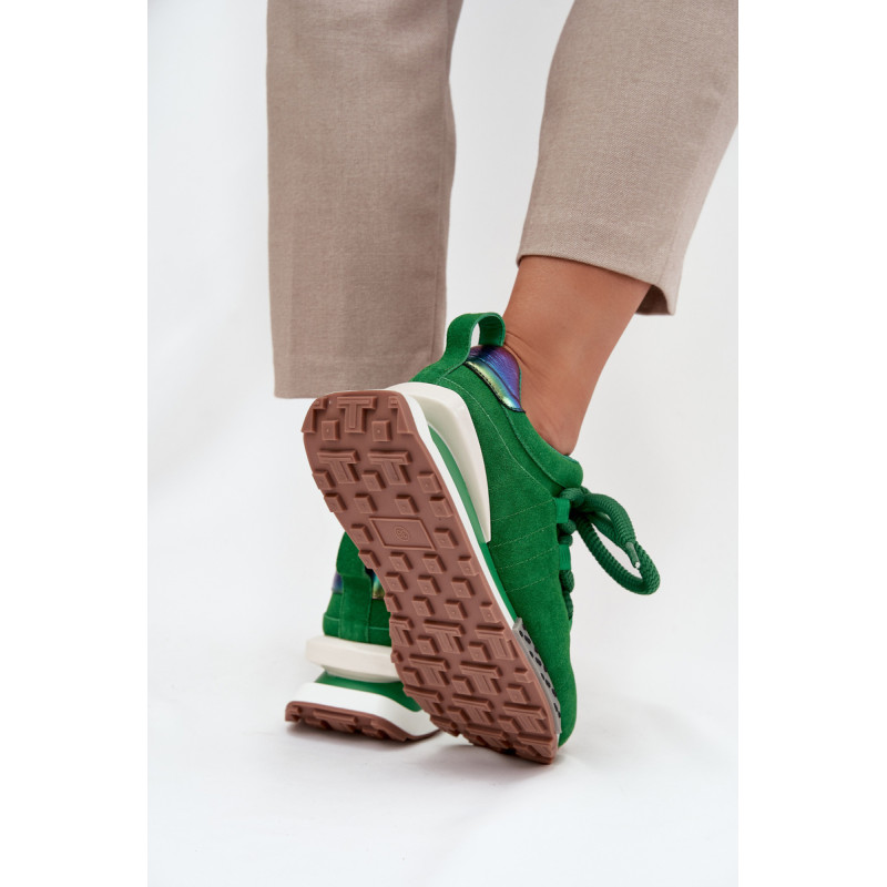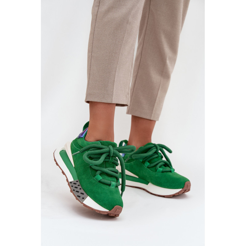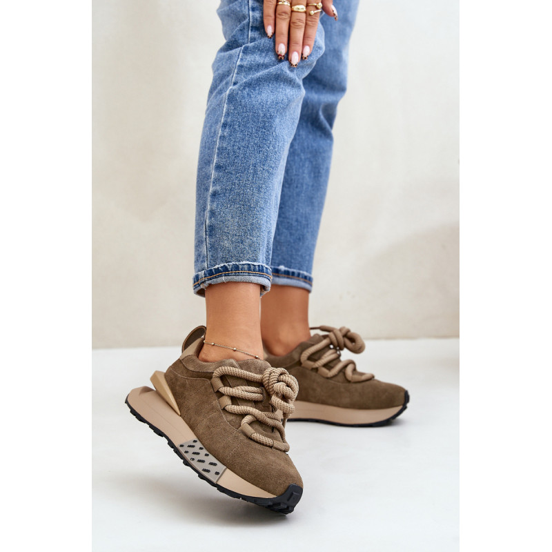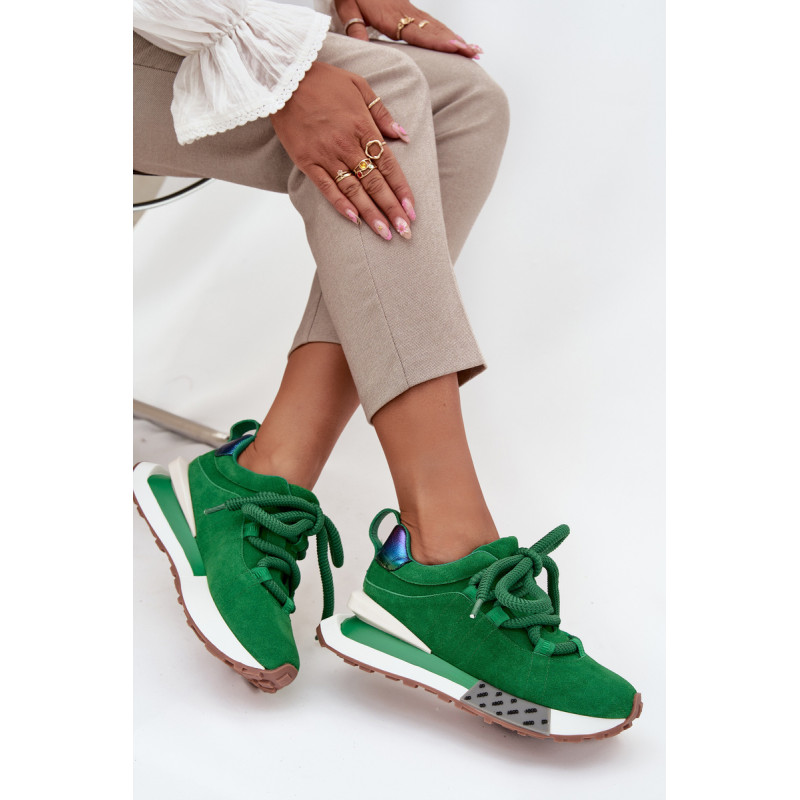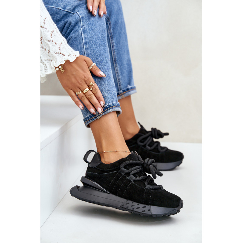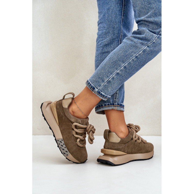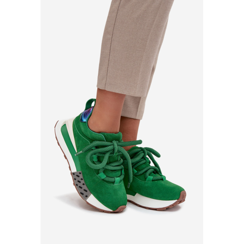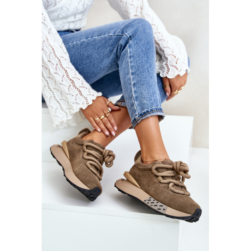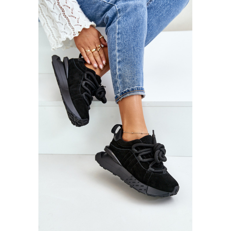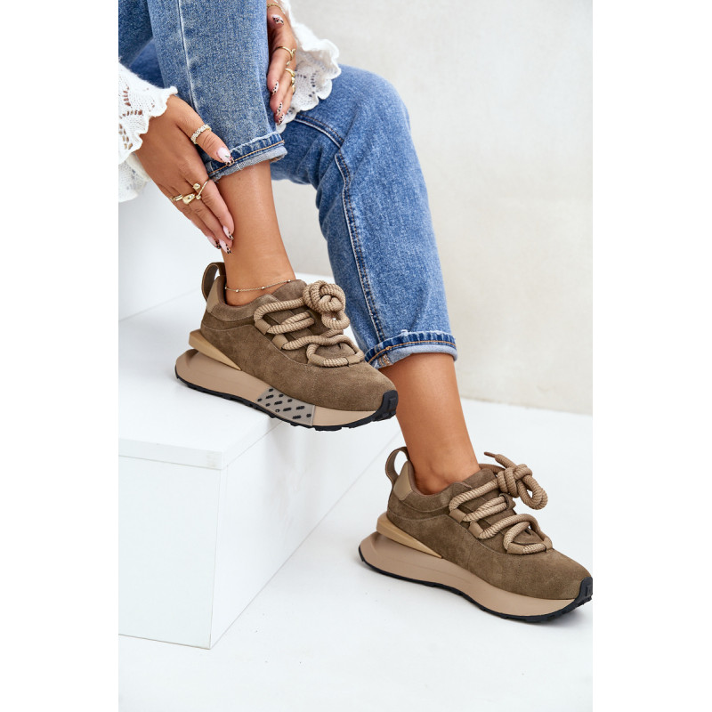 Moteriški sportbačiai iš natūralios zomšos. Nustatyti ant platformos. Šis modelis pasižymi storu raišteliu. Platforma suteikia papildomo komforto ir lengvumo einant, taip pat prideda kelių centimetrų aukščio. Puikiai tinka tiek prie kasdienės aprangos, tiek prie įprastesnių ansamblių. Pasirinkite juos, kad pabrėžtumėte savo unikalų stilių ir mėgaukitės komfortu visą dieną. Rinkdamiesi dydį, žiūrėkite dydžių lentelę.