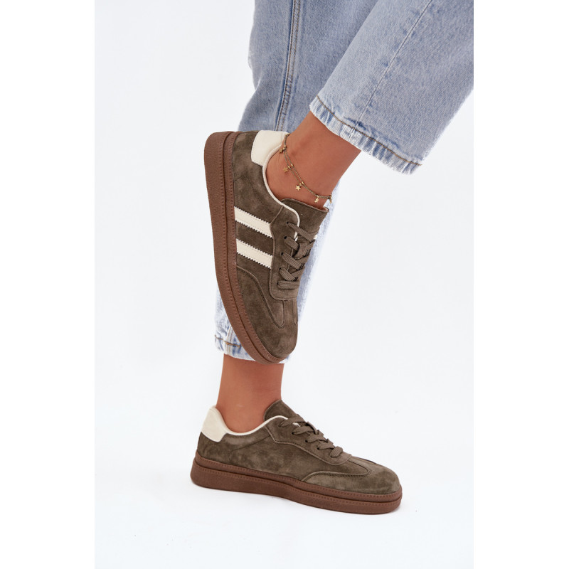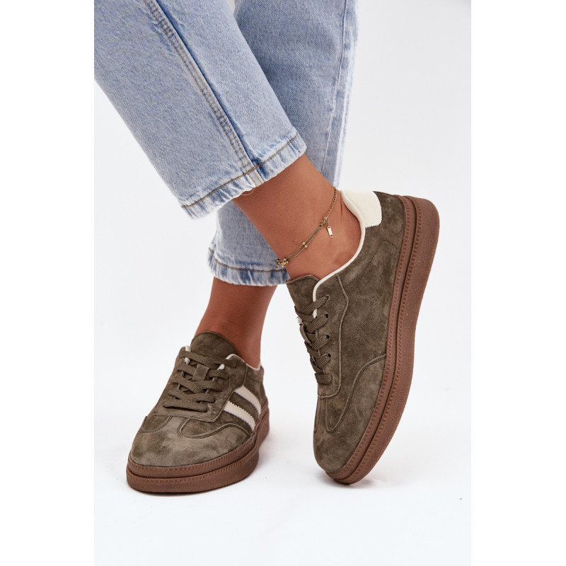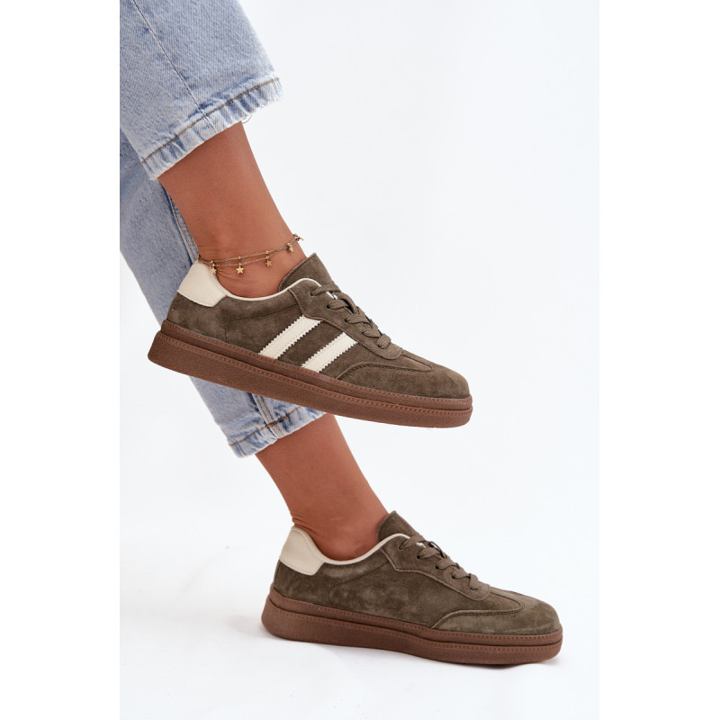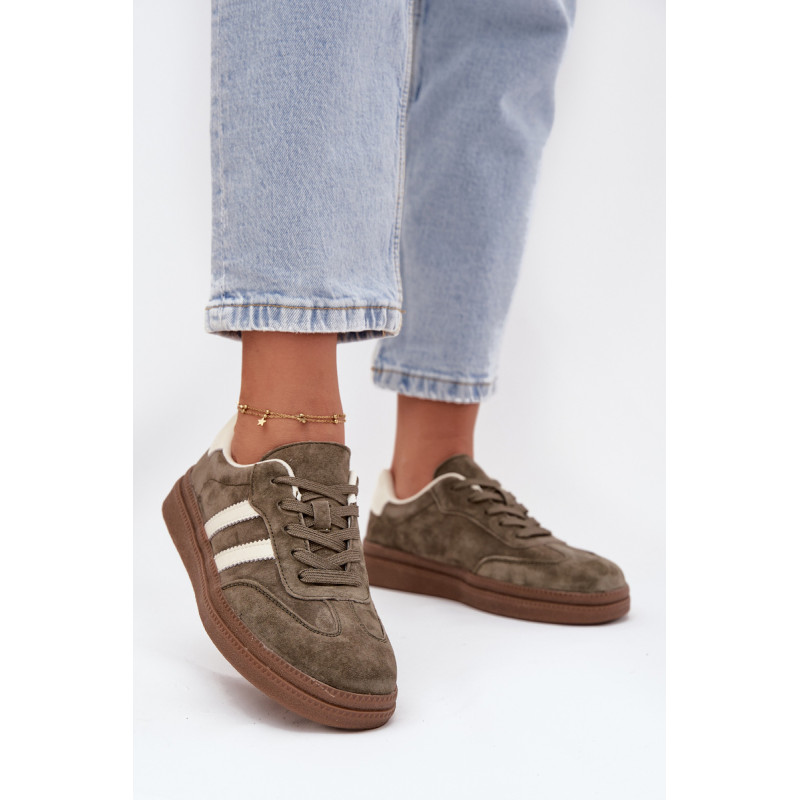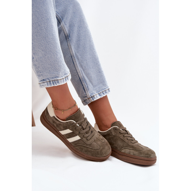 Moteriški sportbačiai iš natūralaus zomšos yra puikus pasirinkimas rudenį! Guminė platforma užtikrina saugų žingsnį ir patogumą, o apvali nosis kartu su minkšta odos įdėkliumi rūpinasi komfortu visą dieną. Madingas dizainas leidžia puikiai derinti su kasdieniais miesto drabužiais. Pasirinkdami dydį, vadovaukitės dydžių lentele. Renkantis dydį, vadovaukitės dydžių lentele.