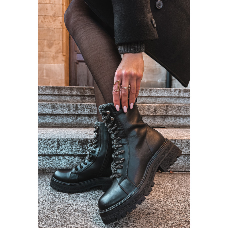 Žemos kulno batai, pagaminti iš eko-suede, yra praktiškas pasirinkimas šaltoms dienoms. Modelis išsiskiria dekoratyvine avikailio apdaila viršuje, kuri suteikia žavesio ir užtikrina papildomą apsaugą nuo šalčio. Raišteliai leidžia puikiai pritaikyti batus prie pėdos, o vidus, apšiltintas batų vilna, garantuoja šilumos komfortą. Stilingi ir patogūs, puikiai tinka žiemos pasivaikščiojimams ir kasdienėms veikloms. Renkantis dydį, vadovaukitės dydžių lentele.