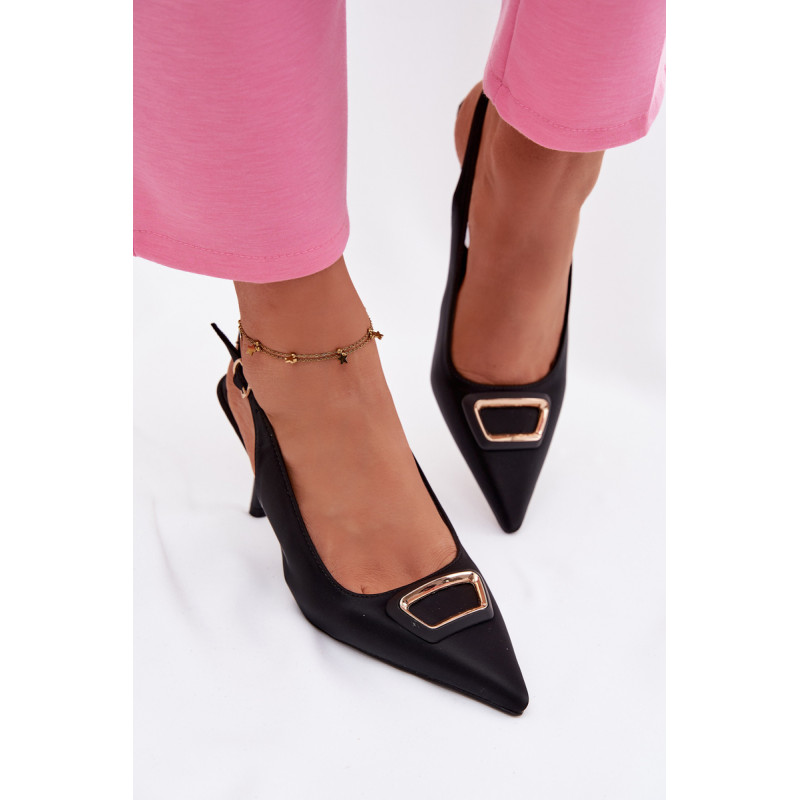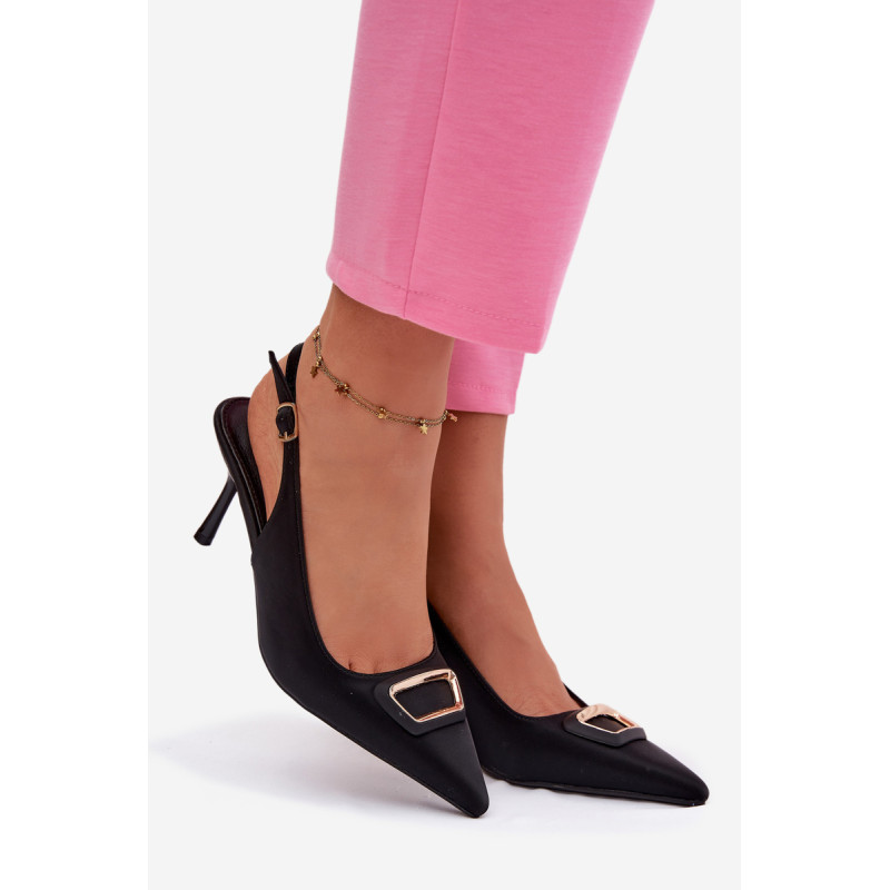 Moteriški tekstiliniai sandalai yra stilingas pasirinkimas moterims, norinčioms pabrėžti savo įvaizdžio eleganciją. Smailus priekis suteikia lengvumo ir vizualiai ilginą kojas, o efektingas detalė priekyje yra mados akcentas. Plonas stileto kulnas gražiai formuoja siluetą, o reguliuojama dirželio su sagtimi leidžia patogiai pritaikyti batą prie pėdos. Idealiai tinka išskirtinėms progoms, vakarėliams ir vakarinėms išvykoms. Renkantis dydį, vadovaukitės dydžių lentele.