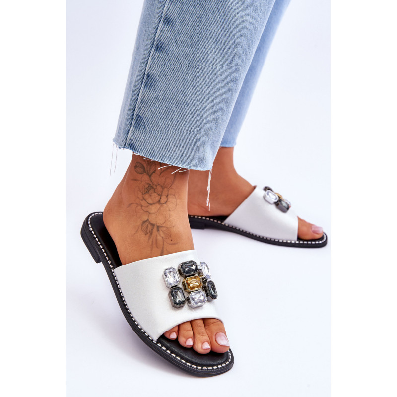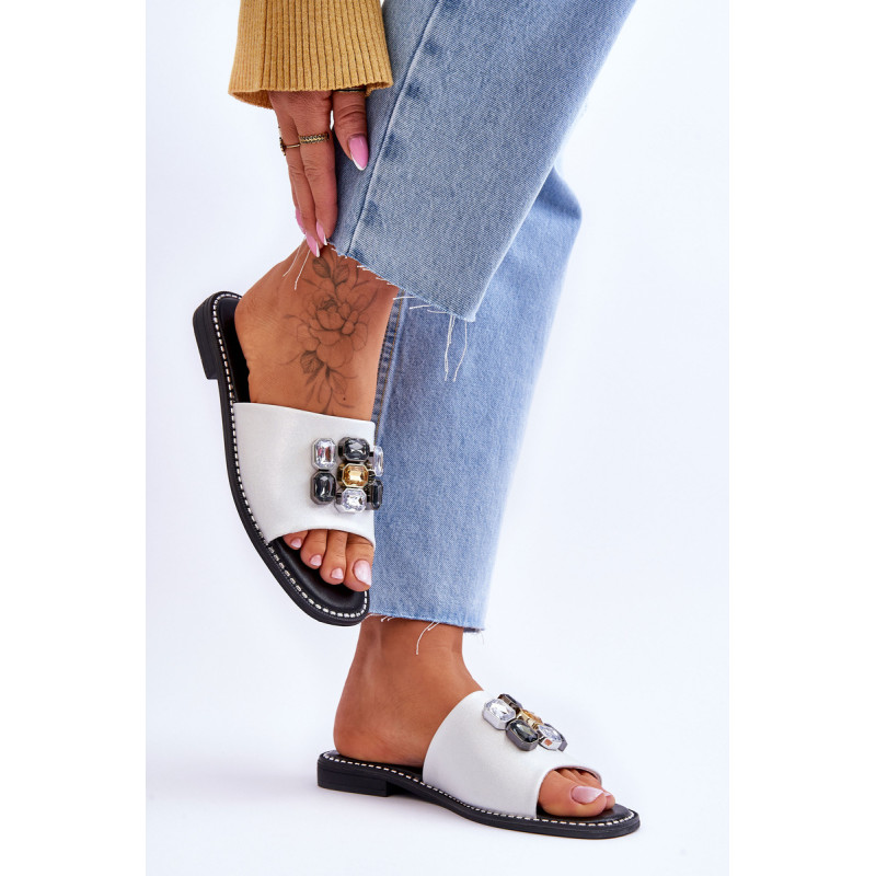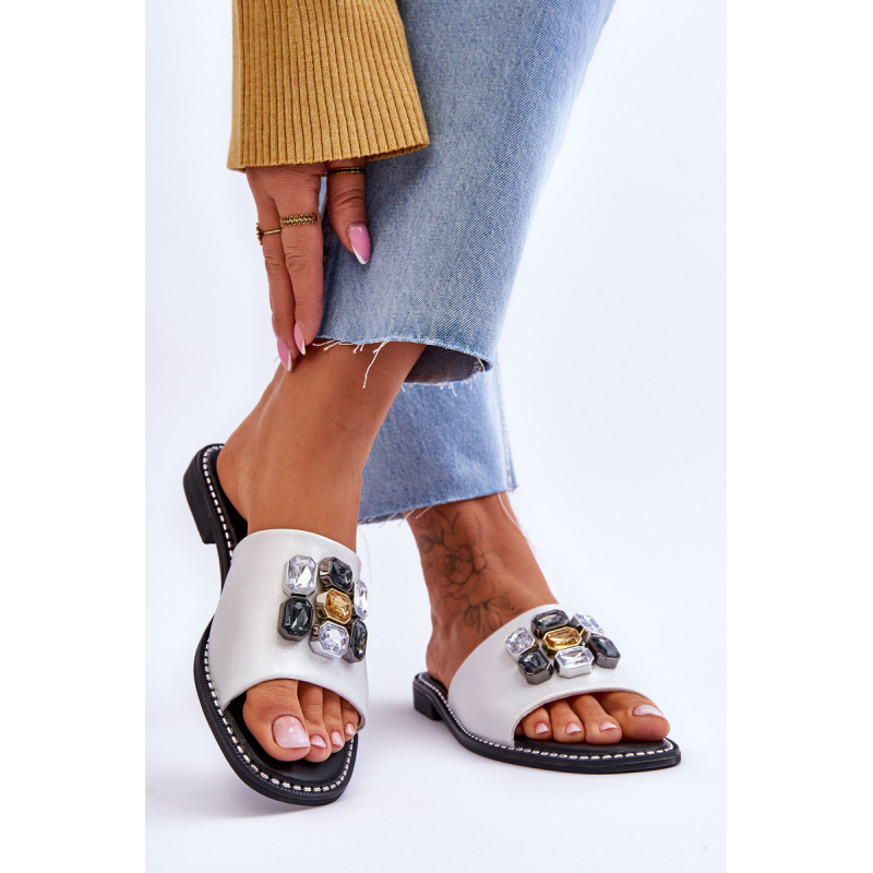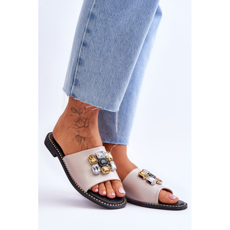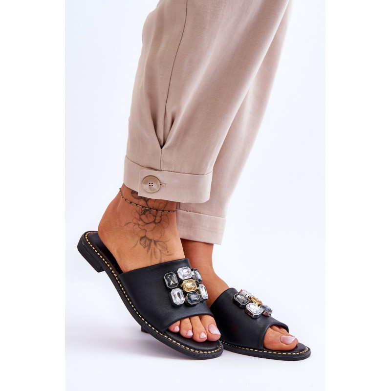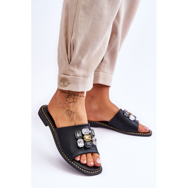 Moteriškos šlepetės pagamintos iš aukštos kokybės eko odos. Šis modelis papildomai papuoštas akmenimis. Šių batų vidpadis itin patogus ir pagamintas iš eko odos. Šlepetės buvo pastatytos ant plokščio kulno, kurio padas dekoruotas smeigėmis. Taip pat būtinai peržiūrėkite kitus mūsų svetainėje esančius „flip flop“ modelius! Renkantis dydį, vadovaukitės dydžių lentele.