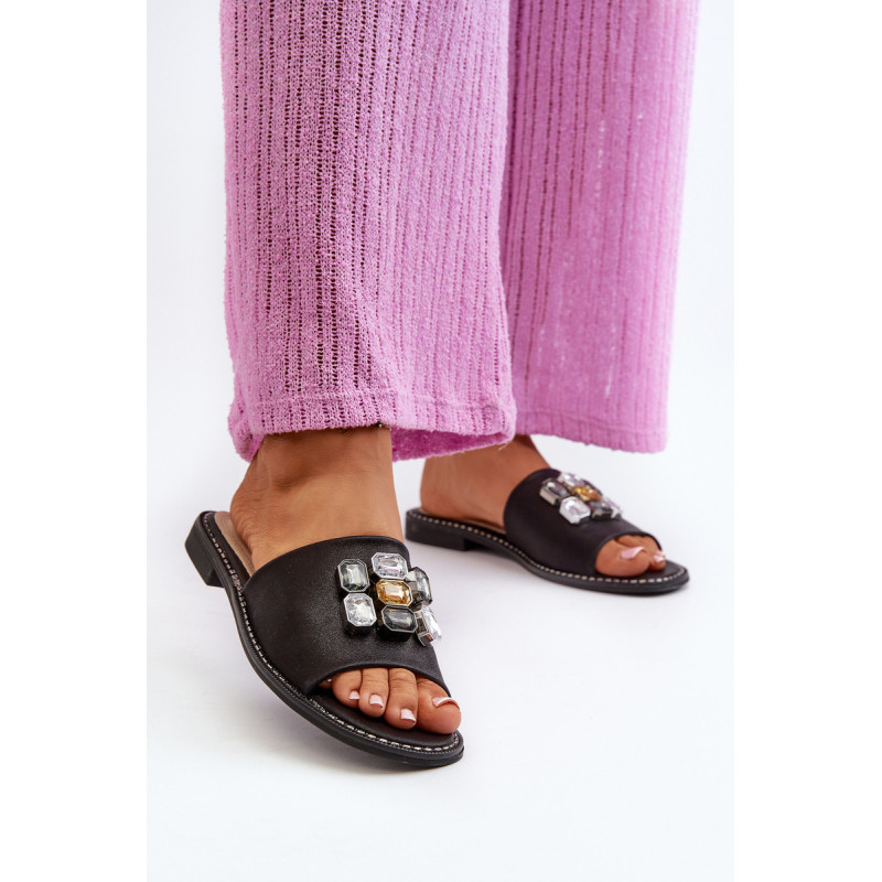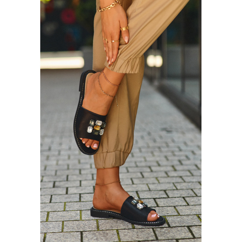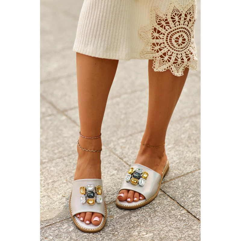 Moteriškos plokščiakulnės basutės su dekoracijomis. Pagaminta iš aukštos kokybės medžiagų. Minkštas, odinis vidpadis suteikia komforto nešioti visą dieną. Dėl elegantiško dizaino jie yra puikus pasirinkimas įvairioms progoms. Rinkdamiesi dydį, žiūrėkite dydžių lentelę.