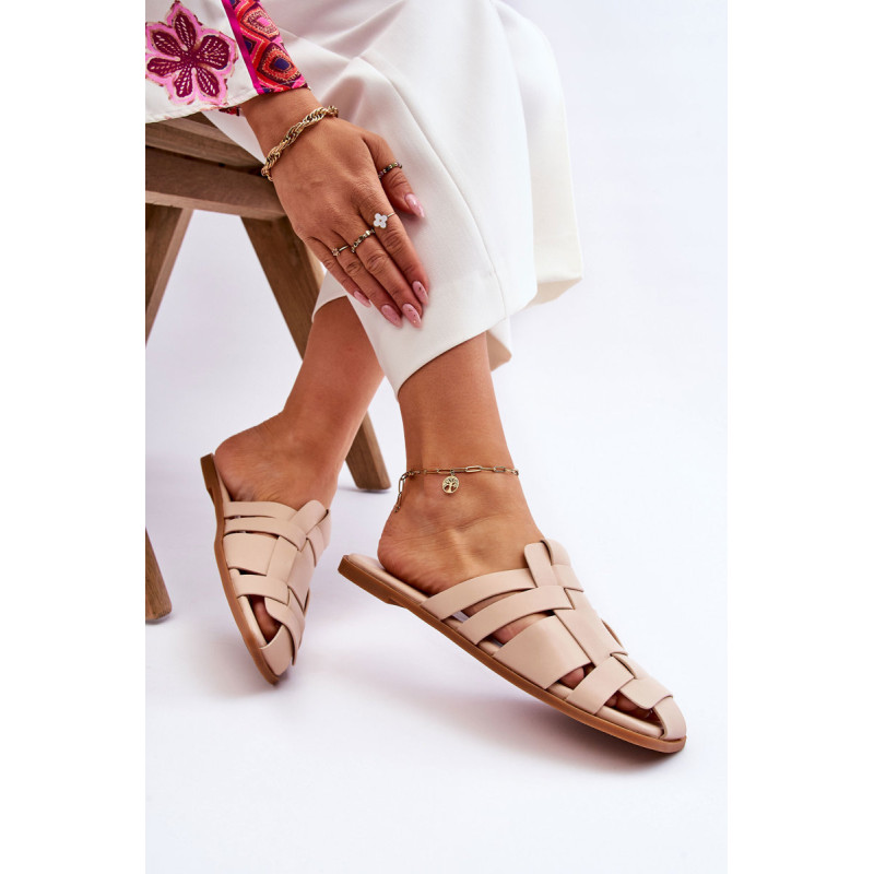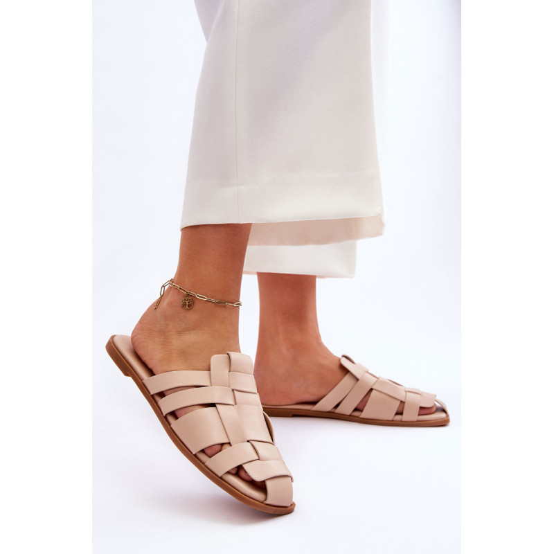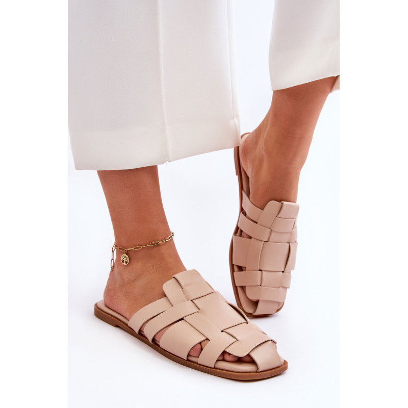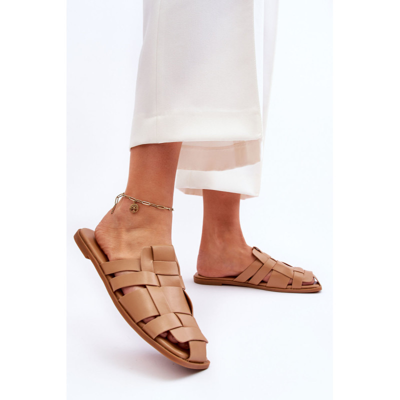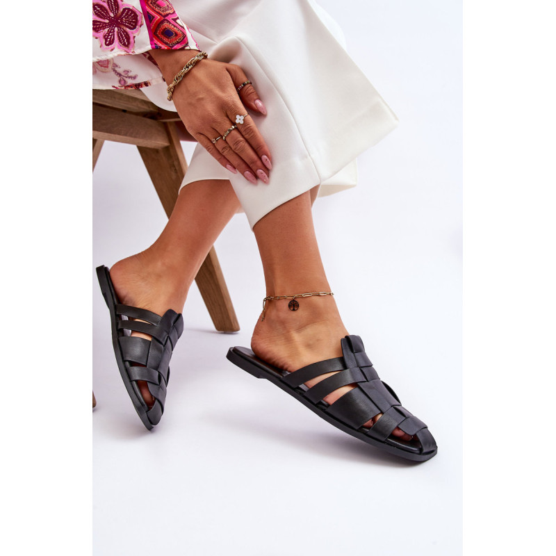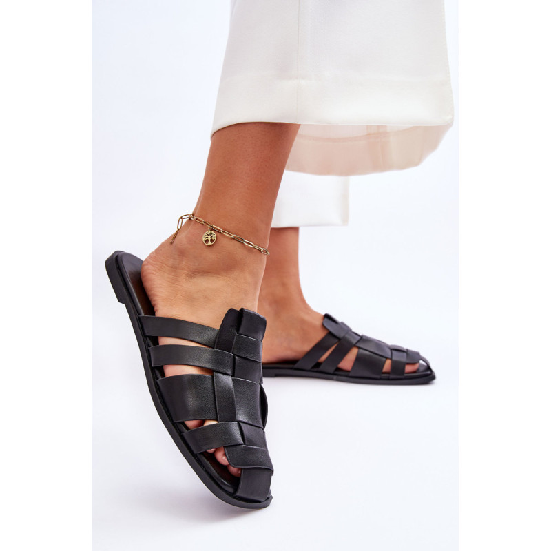 Klasikinės moteriškos šlepetės pagamintos iš eko odos. Šis modelis yra slystantis su iš dalies uždengta nosimi. Komplektukas ant plokščio kulno ir guminio, neslystančio pado. Minkštas vidpadis taip pat pagamintas iš eko odos. Šis modelis puikiai tinka karštoms dienoms! Jų tikrai turėtumėte turėti! Renkantis dydį, naudokite dydžių lentelę.