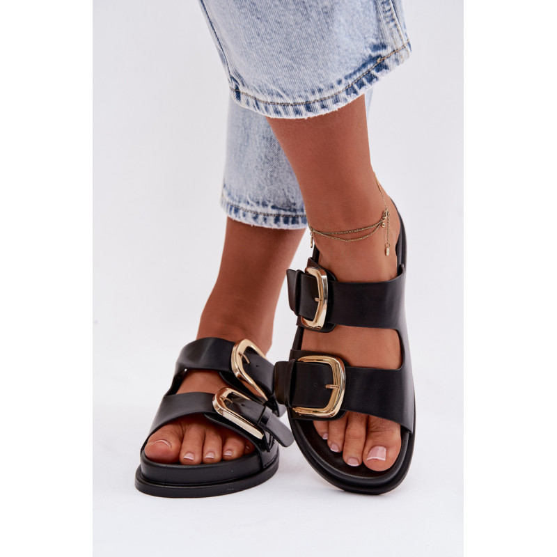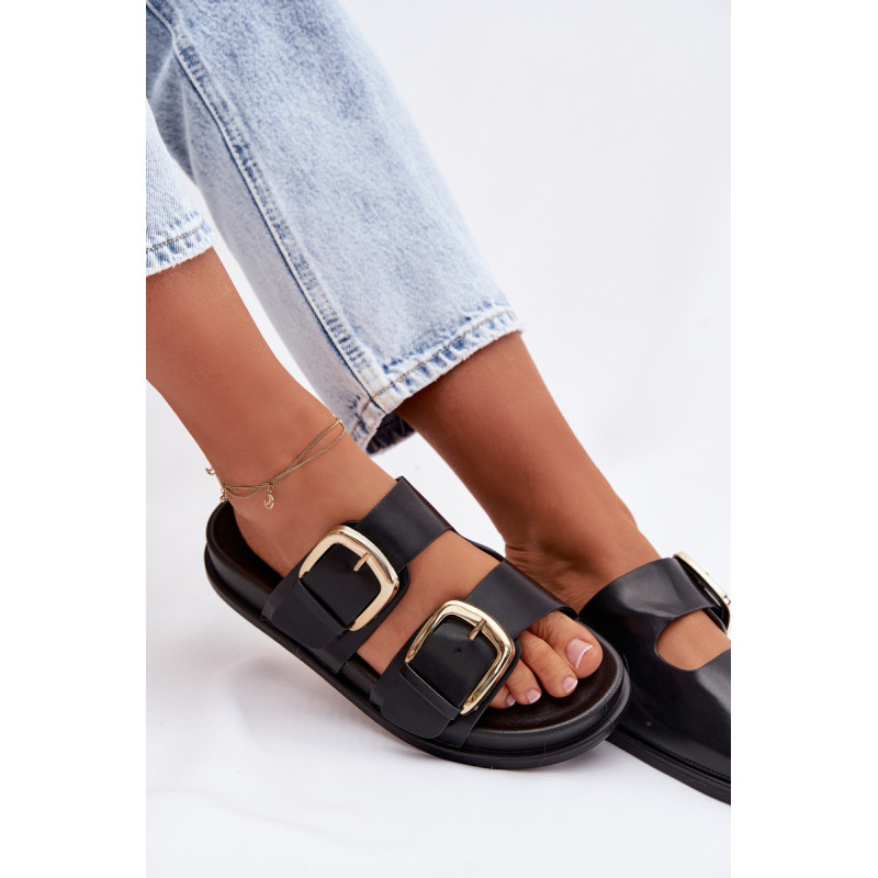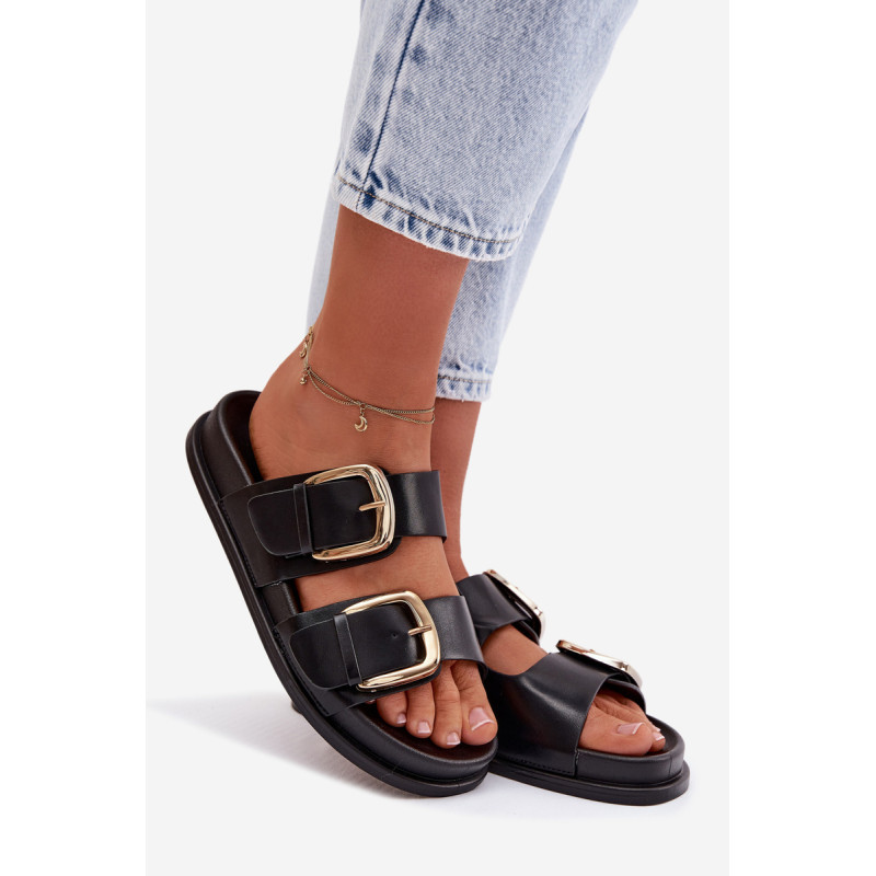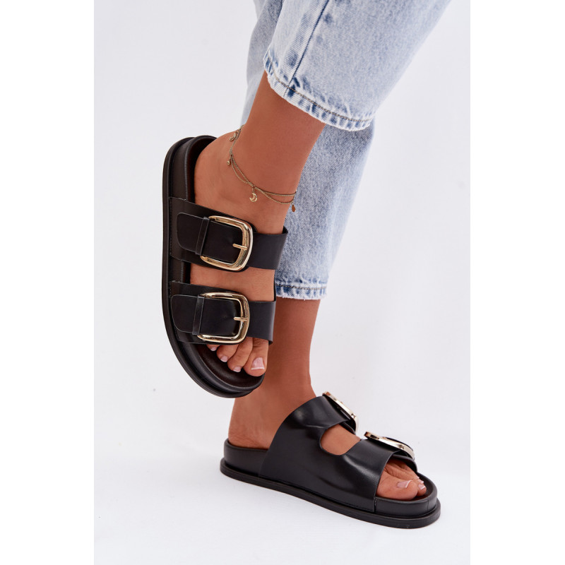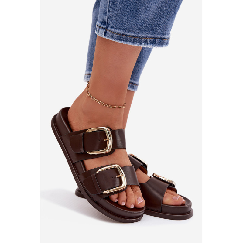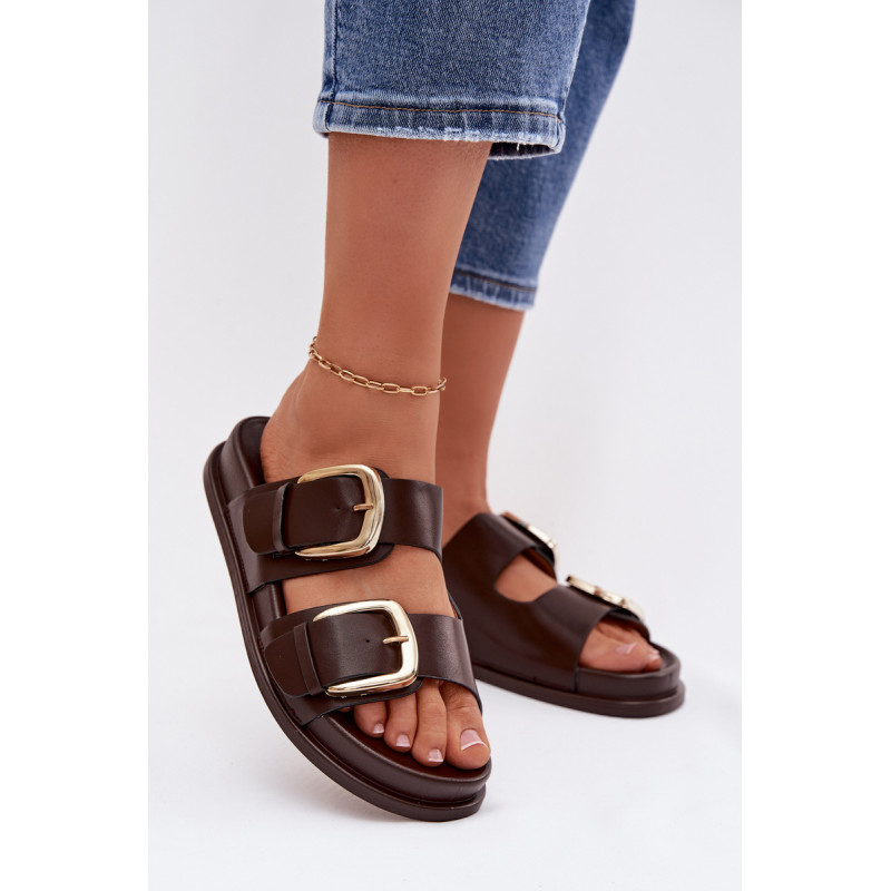 Stilingos moteriški papuošalai iš ekologiškos odos patogūs ir madingi pasirinkimai šiltomis dienomis. Modelis turi du diržus su didelėmis auksinėmis sagtimis, kurios sudaro ryškų, elegantišką akcentą. Švelni platforma subtiliai pakelia siluetą, išlaikydama komfortą, o profiliuota įdėklas užtikrina gerą pritaikymą ir patogumą vaikščiojant. Šios basutės puikiai tinka kasdieniams vasaros įvaizdžiams. Renkantis dydį, vadovaukitės dydžių lentele.