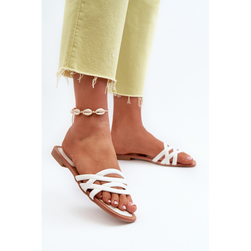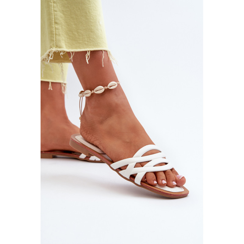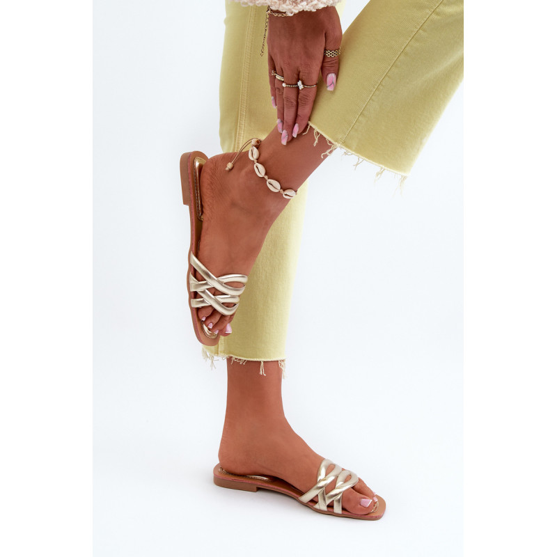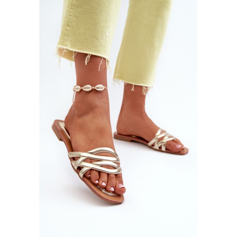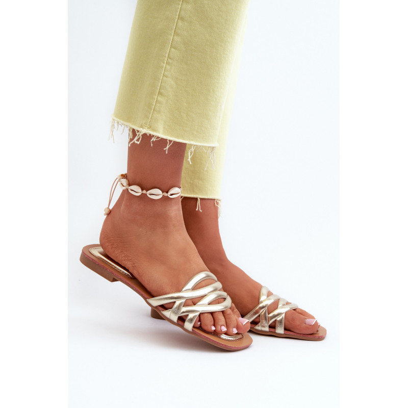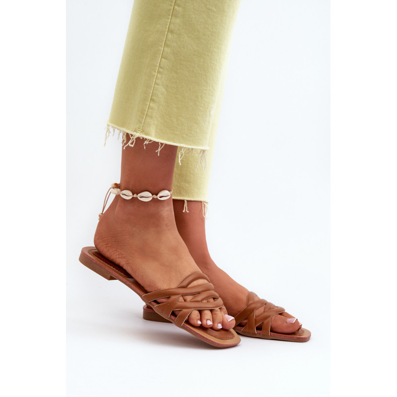 Moteriškos šlepetės, pagamintos iš ekologiškos odos. Dėl plokščio kulno jie itin patogūs ilgiems pasivaikščiojimams ar vasaros išvykoms. Madingas dizainas leidžia jas lengvai derinti tiek su suknelėmis, tiek su kelnėmis, suteikiant vasariškam stiliui nepakartojamo žavesio. Šis modelis tiks siaurai pėdai. Rinkdamiesi dydį žiūrėkite dydžių lentelę.