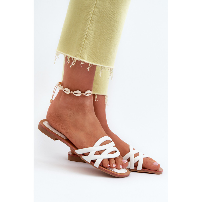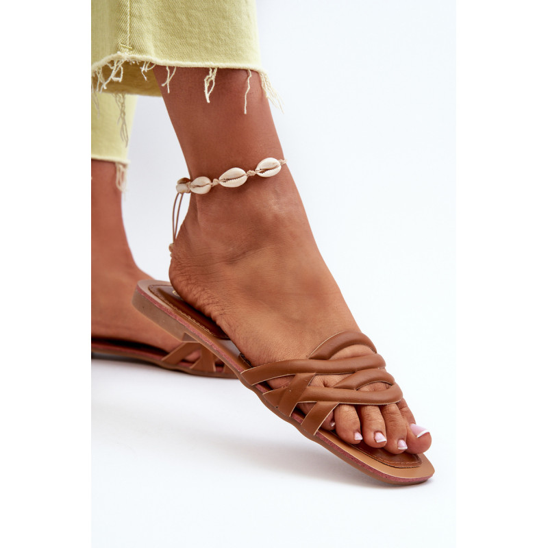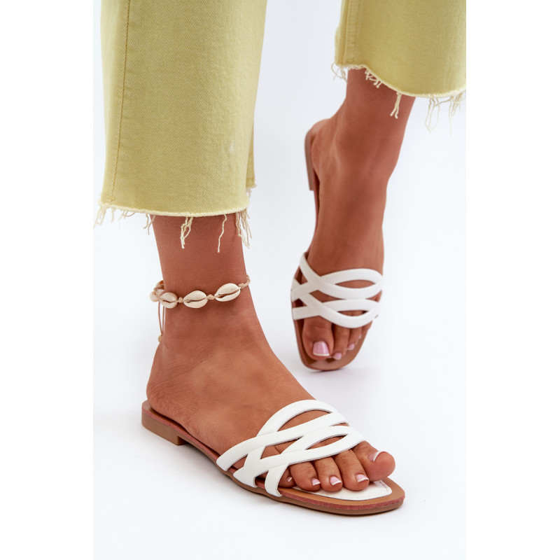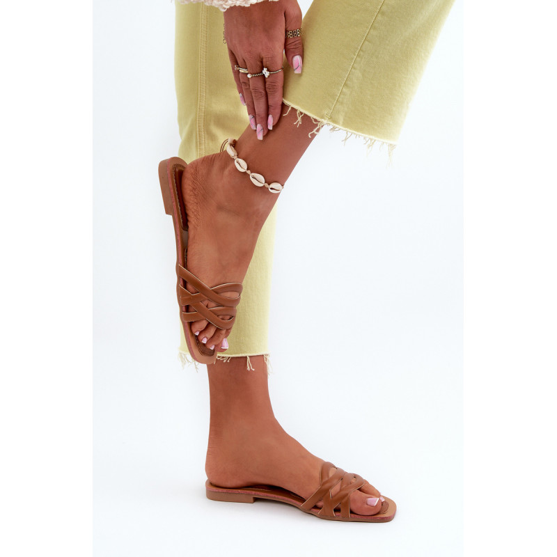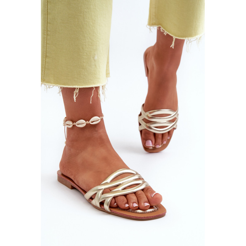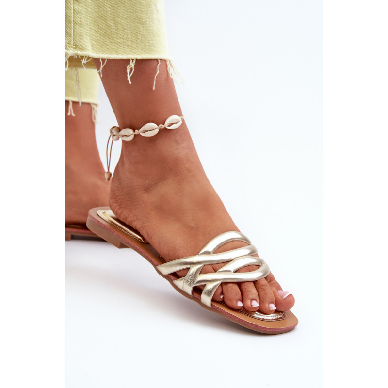 Moteriškos šlepetės, pagamintos iš ekologiškos odos. Dėl plokščio kulno jie itin patogūs ilgiems pasivaikščiojimams ar vasaros išvykoms. Madingas dizainas leidžia jas lengvai derinti tiek su suknelėmis, tiek su kelnėmis, suteikiant vasariškam stiliui nepakartojamo žavesio. Šis modelis tiks siaurai pėdai. Rinkdamiesi dydį žiūrėkite dydžių lentelę.